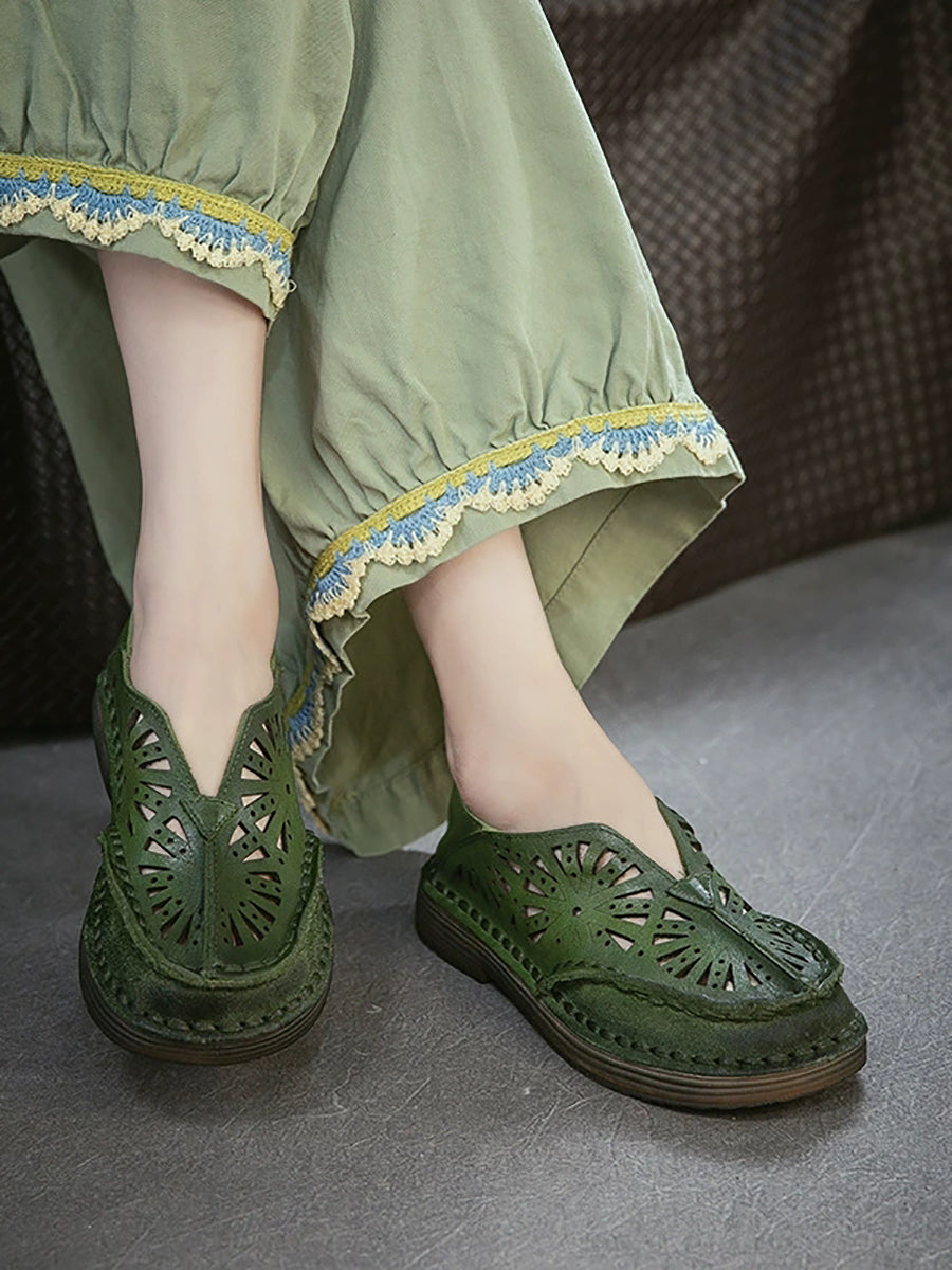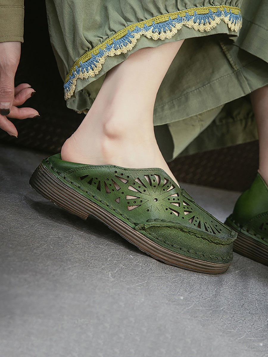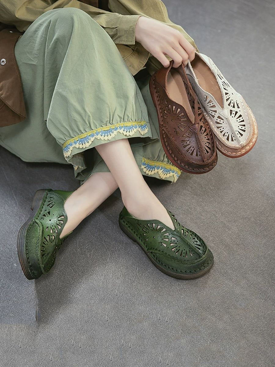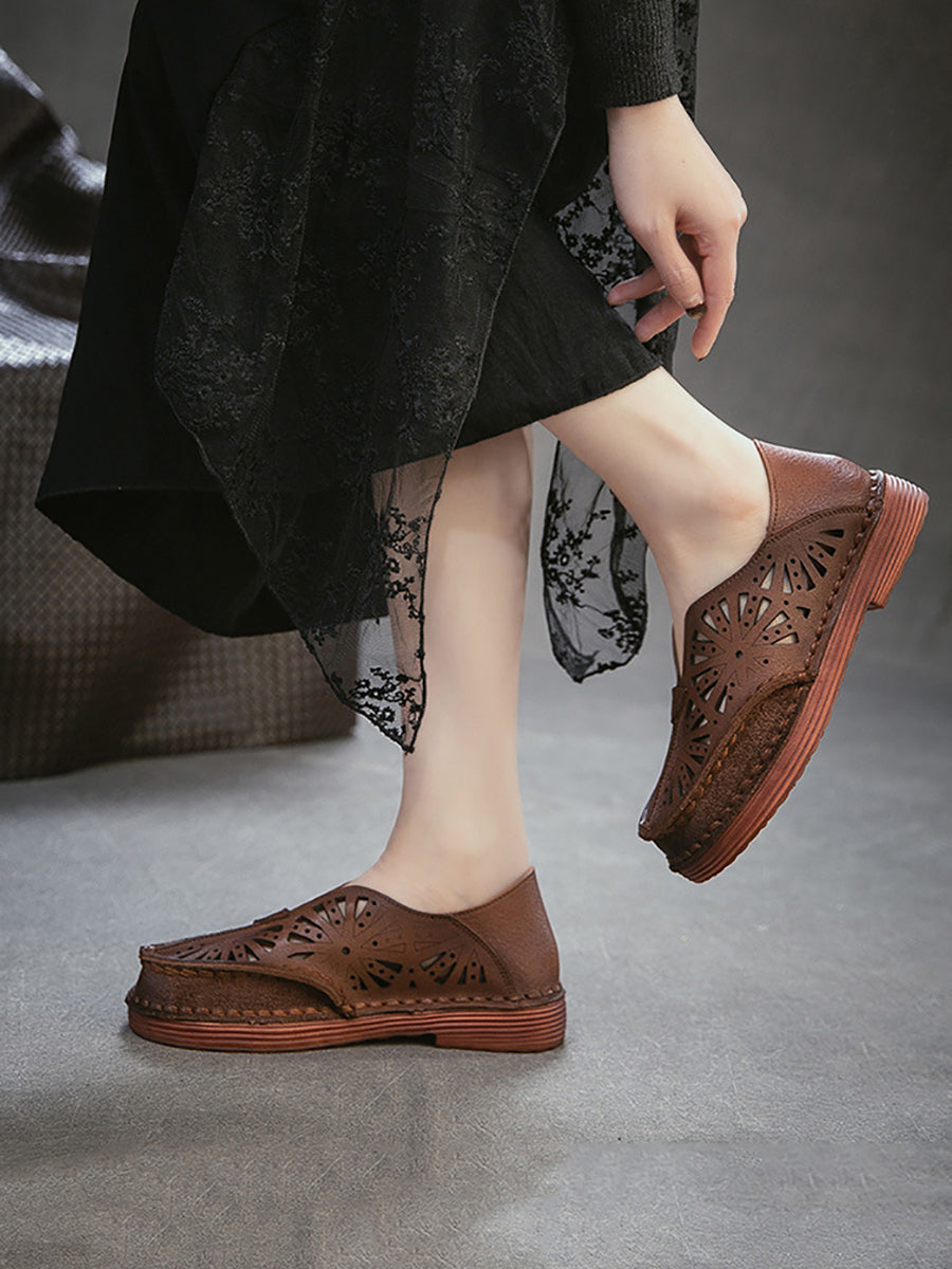 Sandálias femininas de couro vazado estilo vintage para o verão.