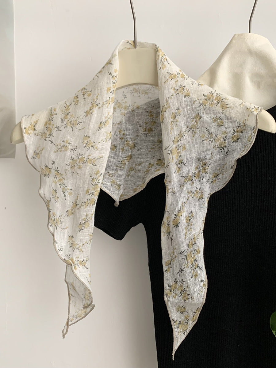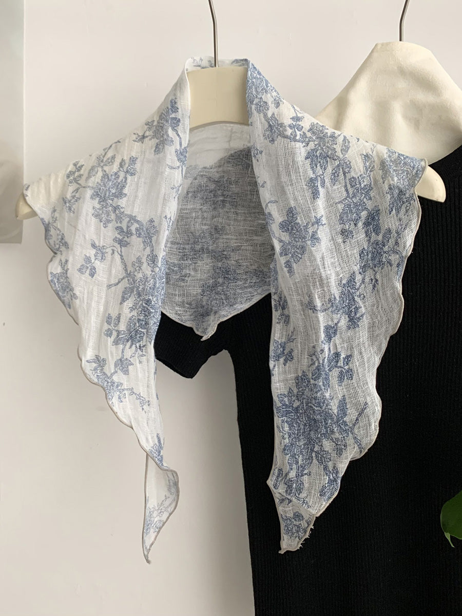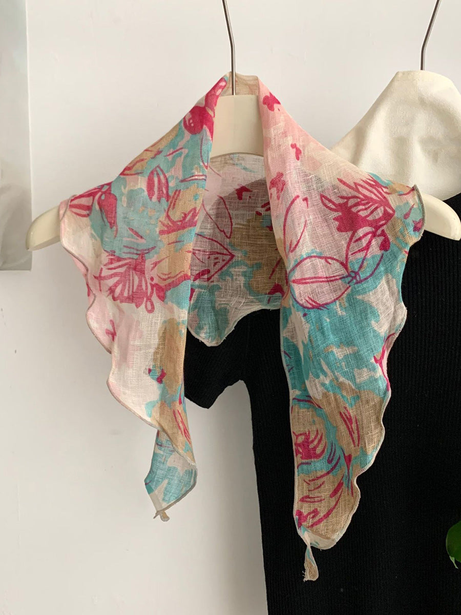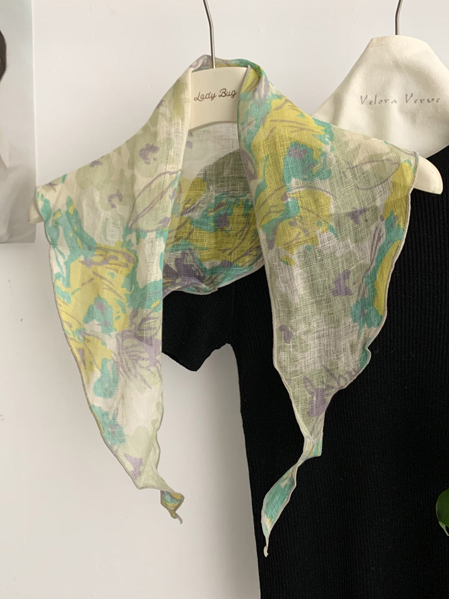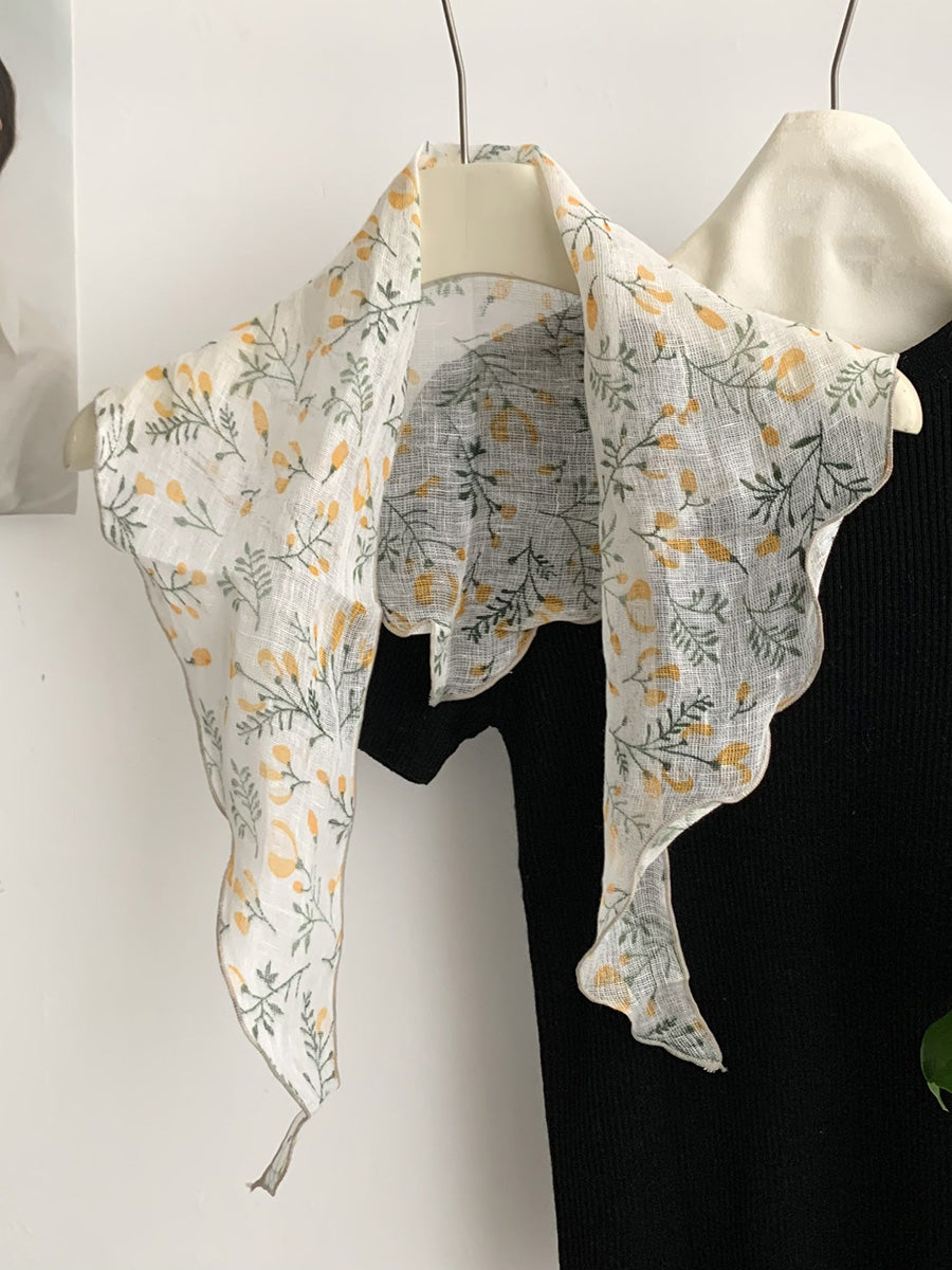 Lenço triangular feminino vintage de linho para o verão