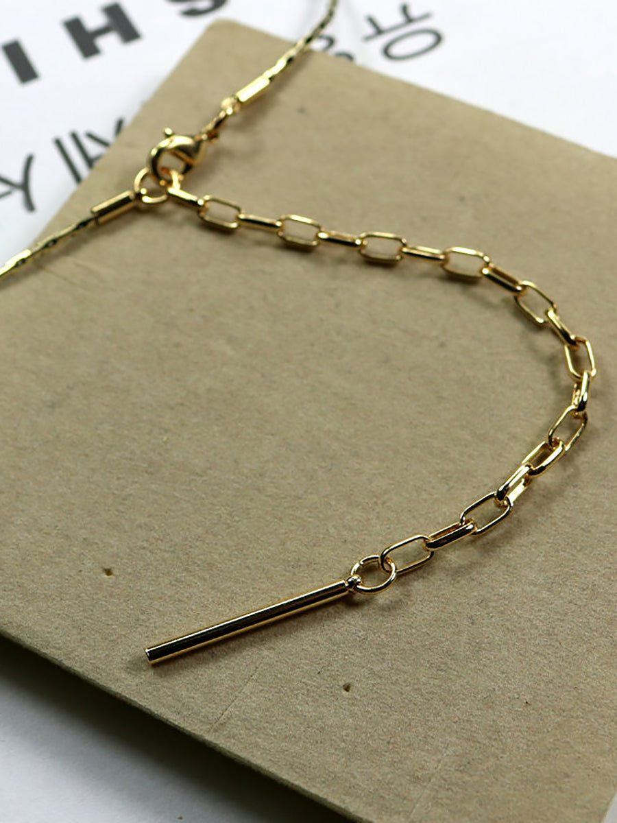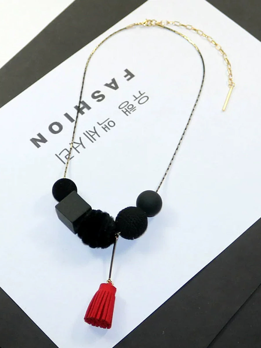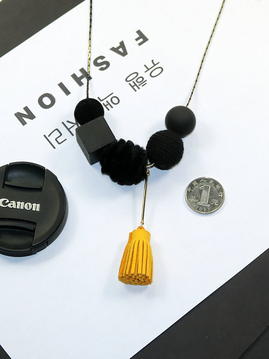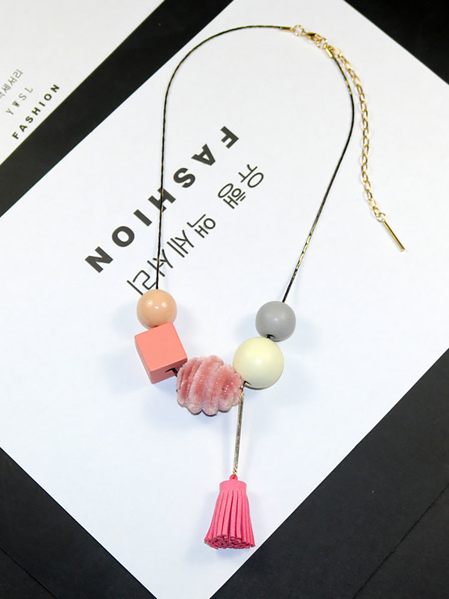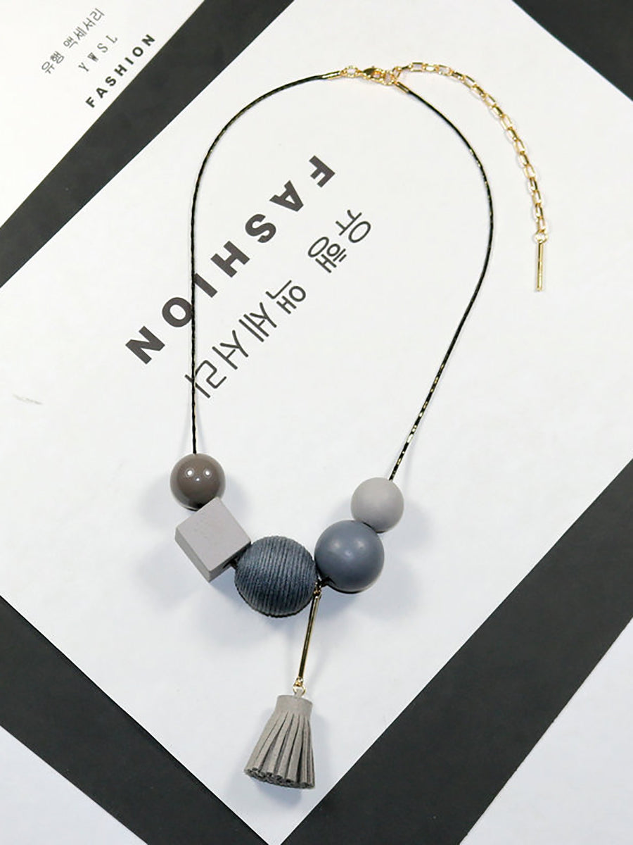 Colar feminino vintage com pingente de bola em liga metálica e madeira.