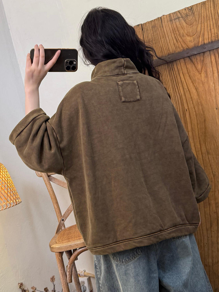 Blusa feminina vintage de outono com gola alta e forro de lã.