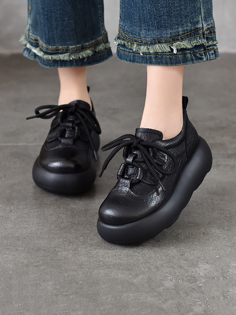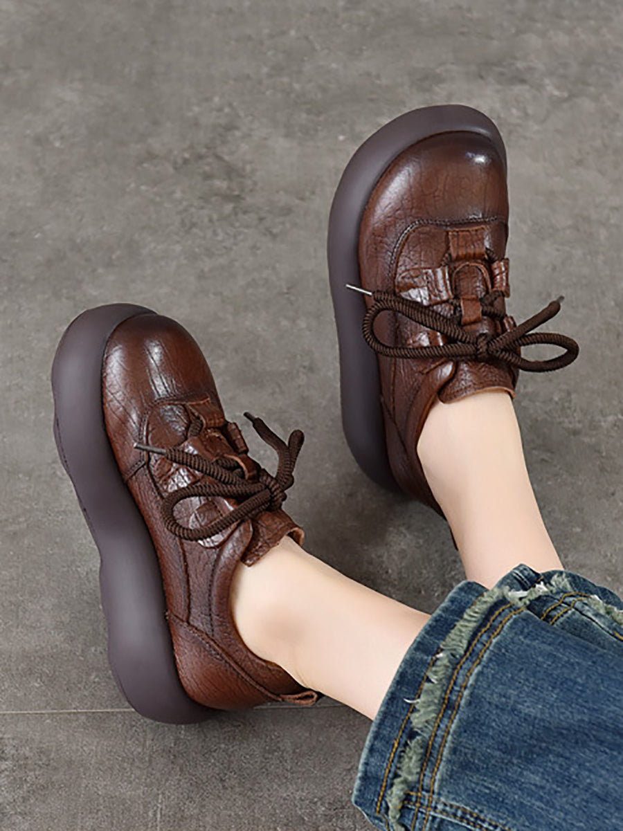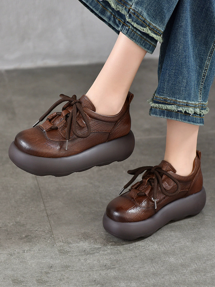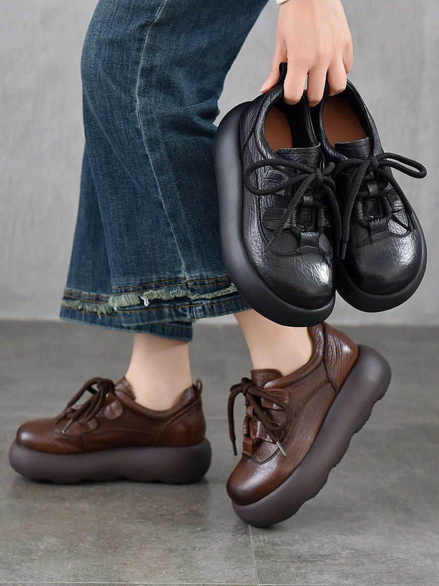 Sapatos plataforma femininos vintage em couro genuíno