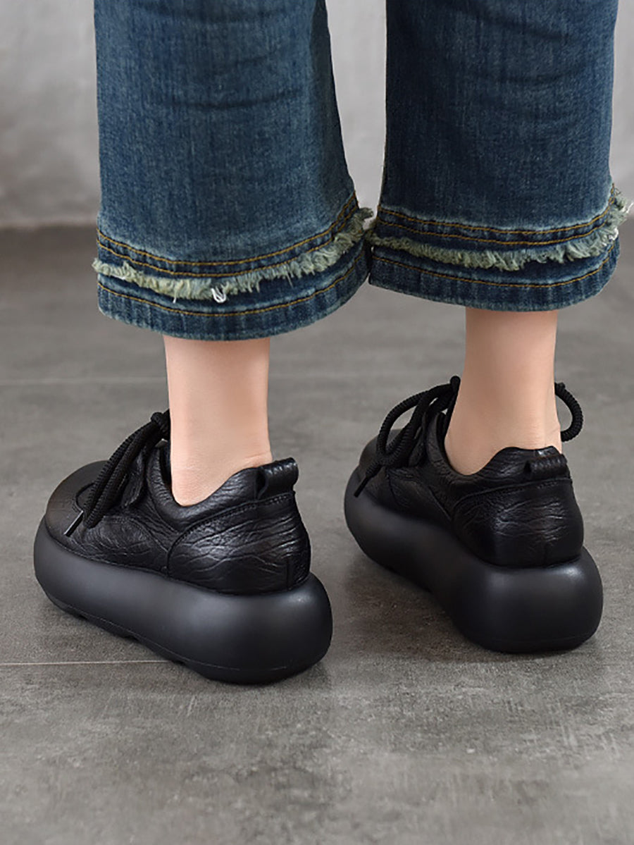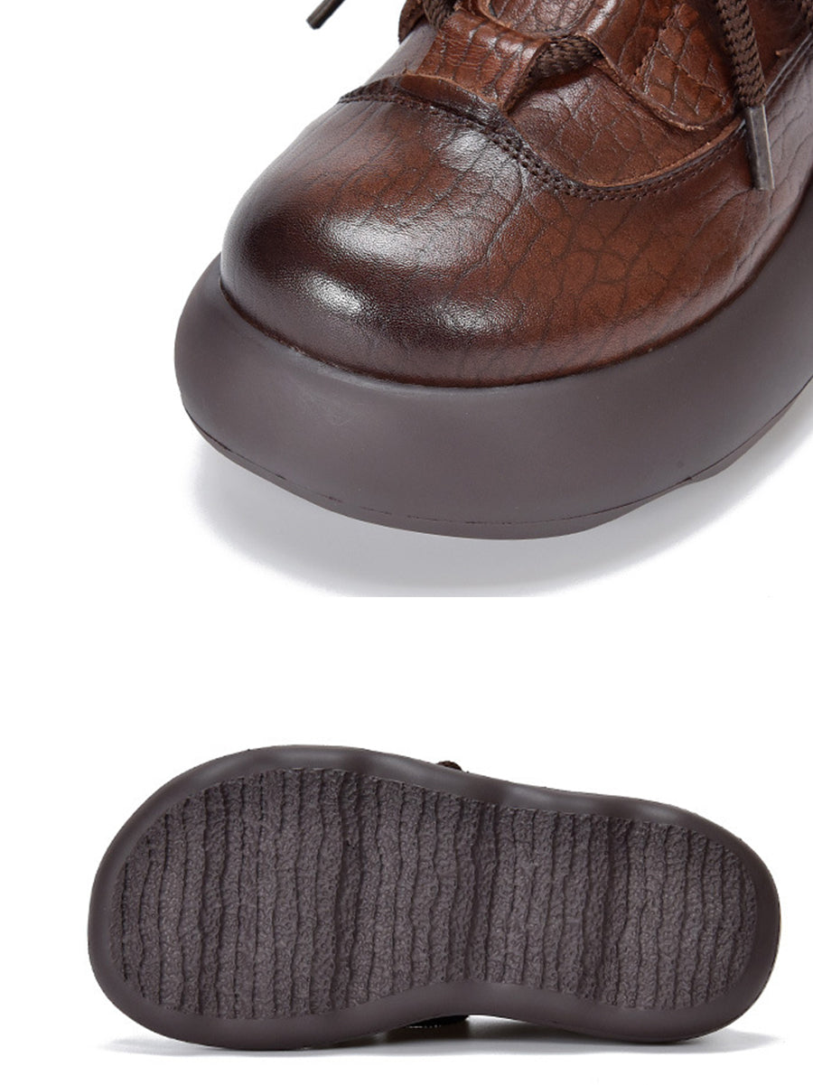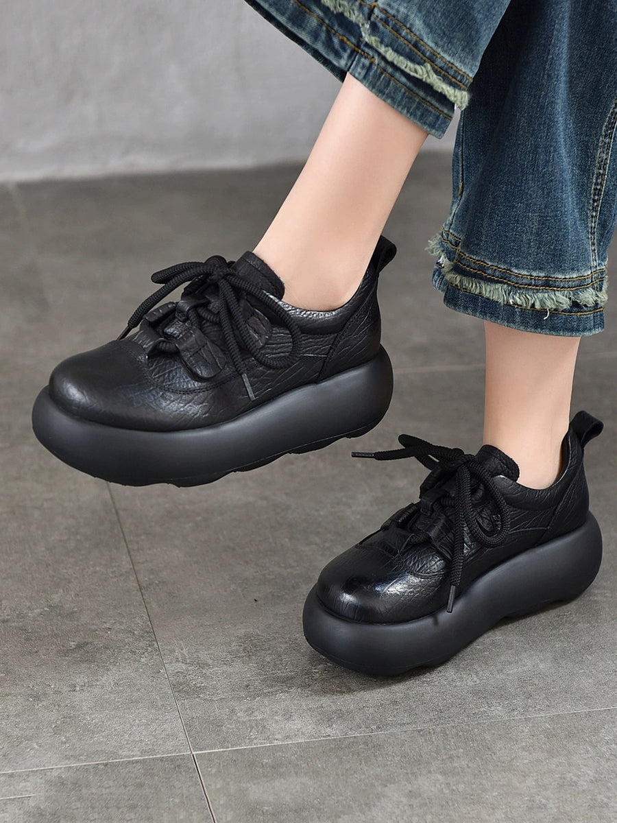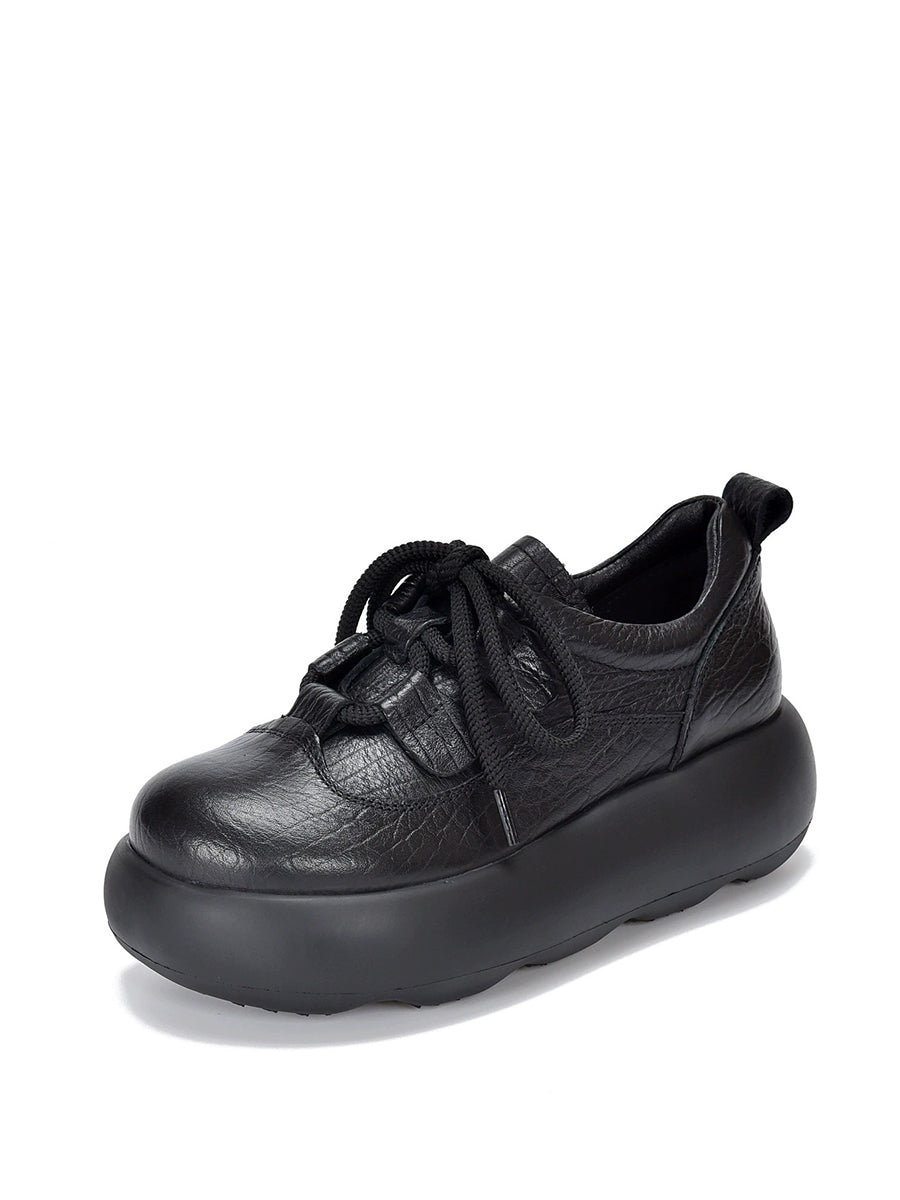 Sapatos plataforma femininos vintage em couro genuíno