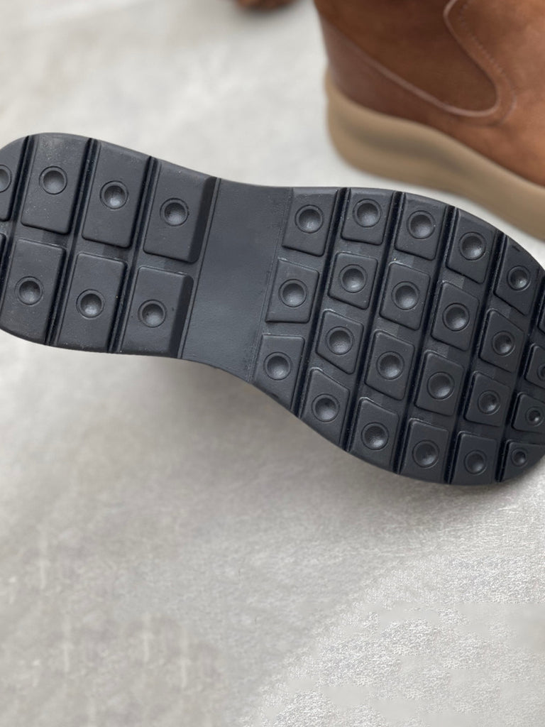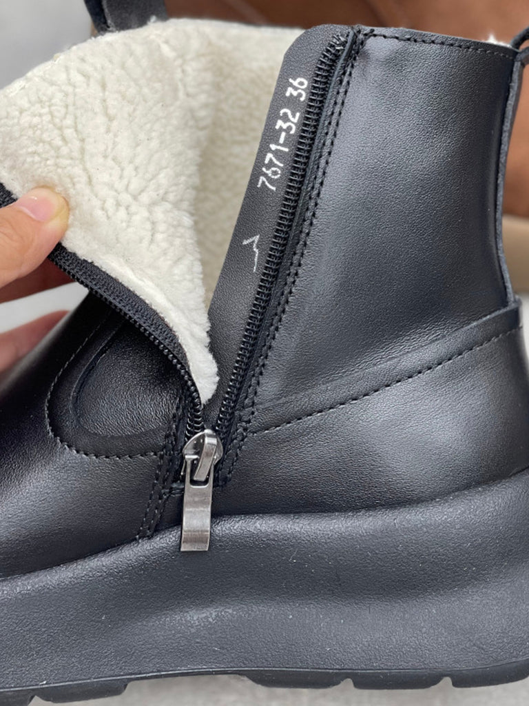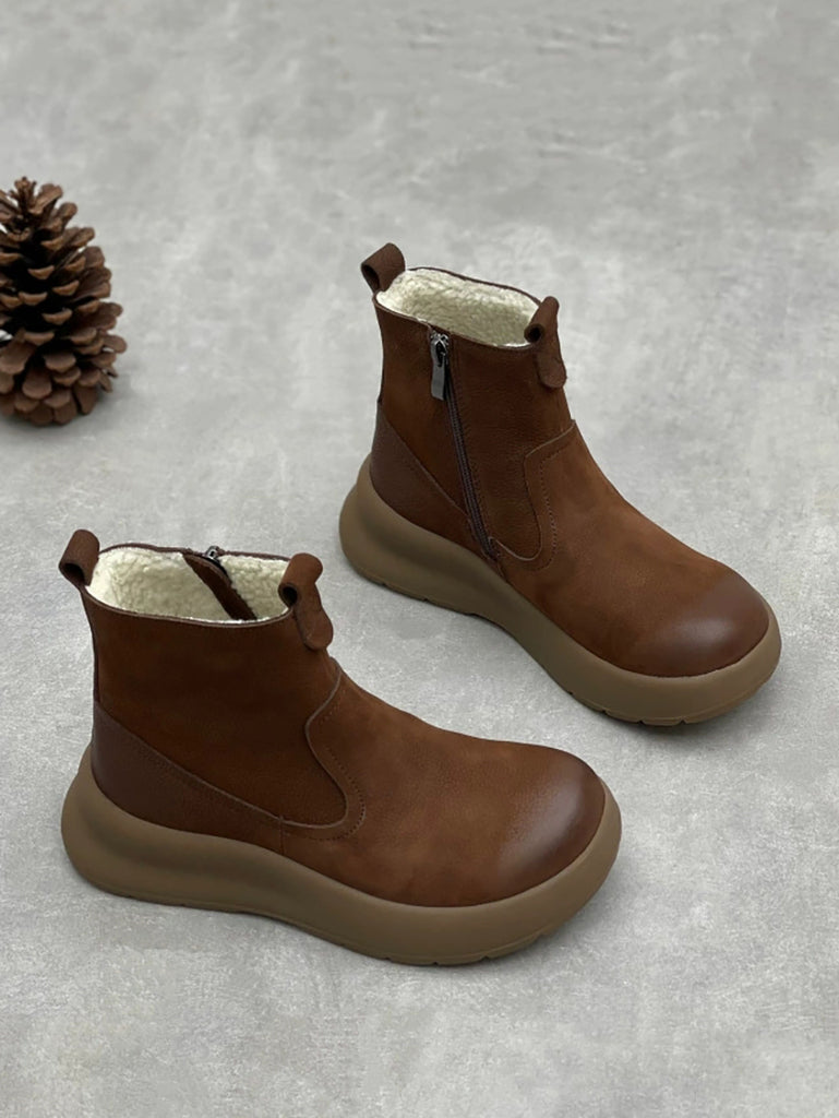 Botas femininas vintage de couro legítimo com plataforma forrada de lã