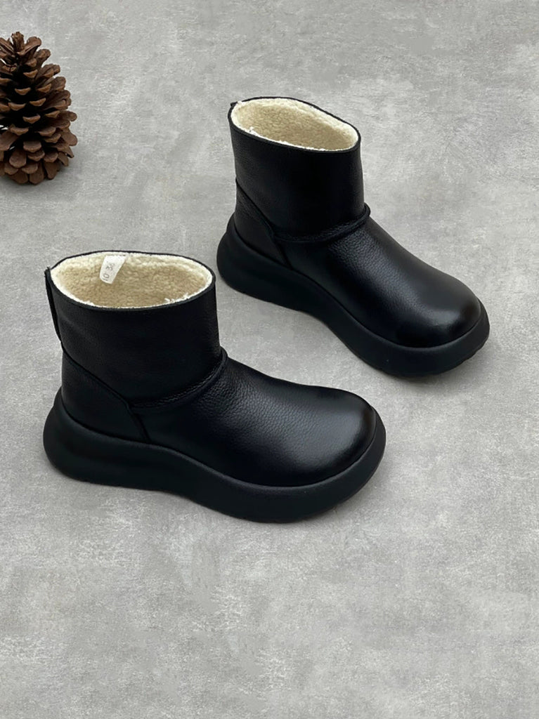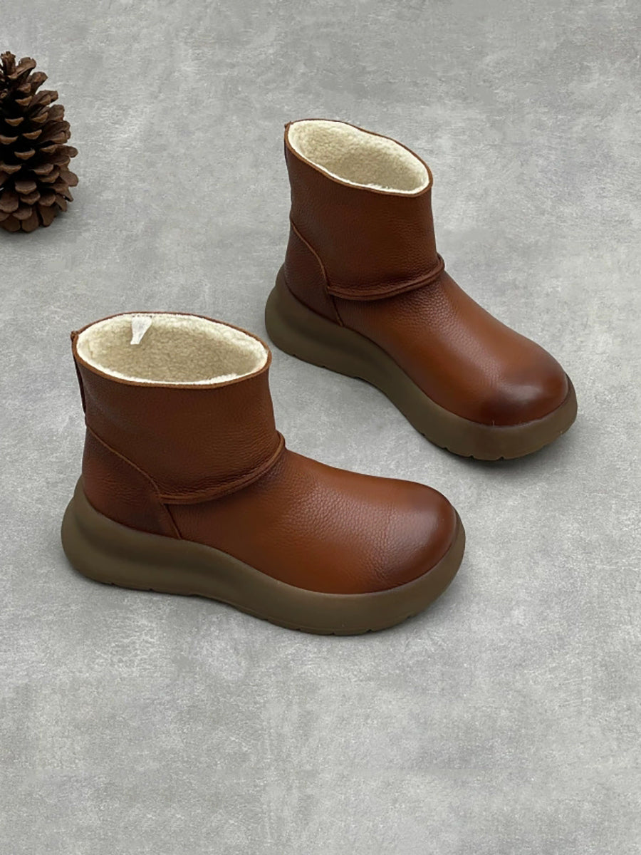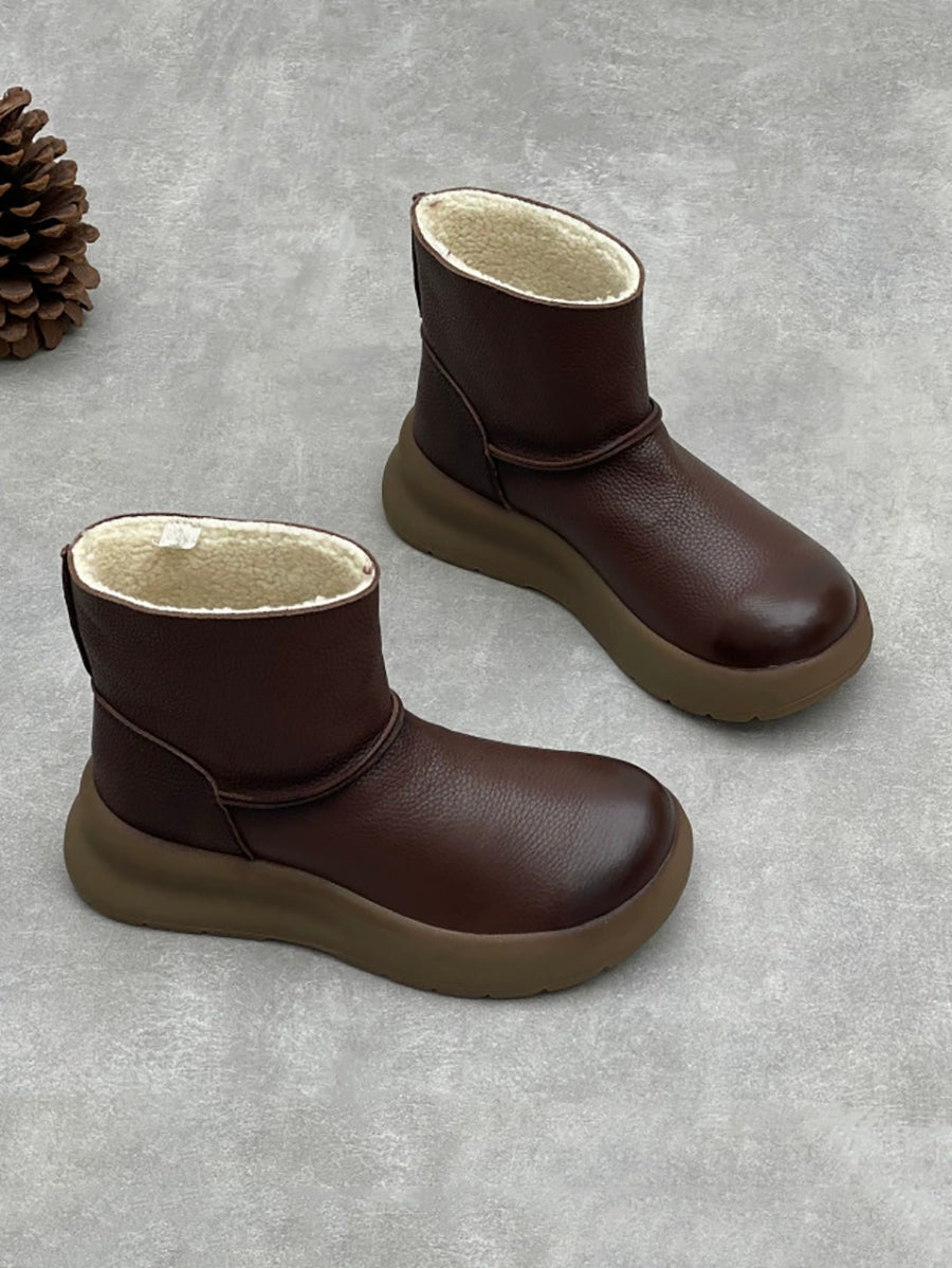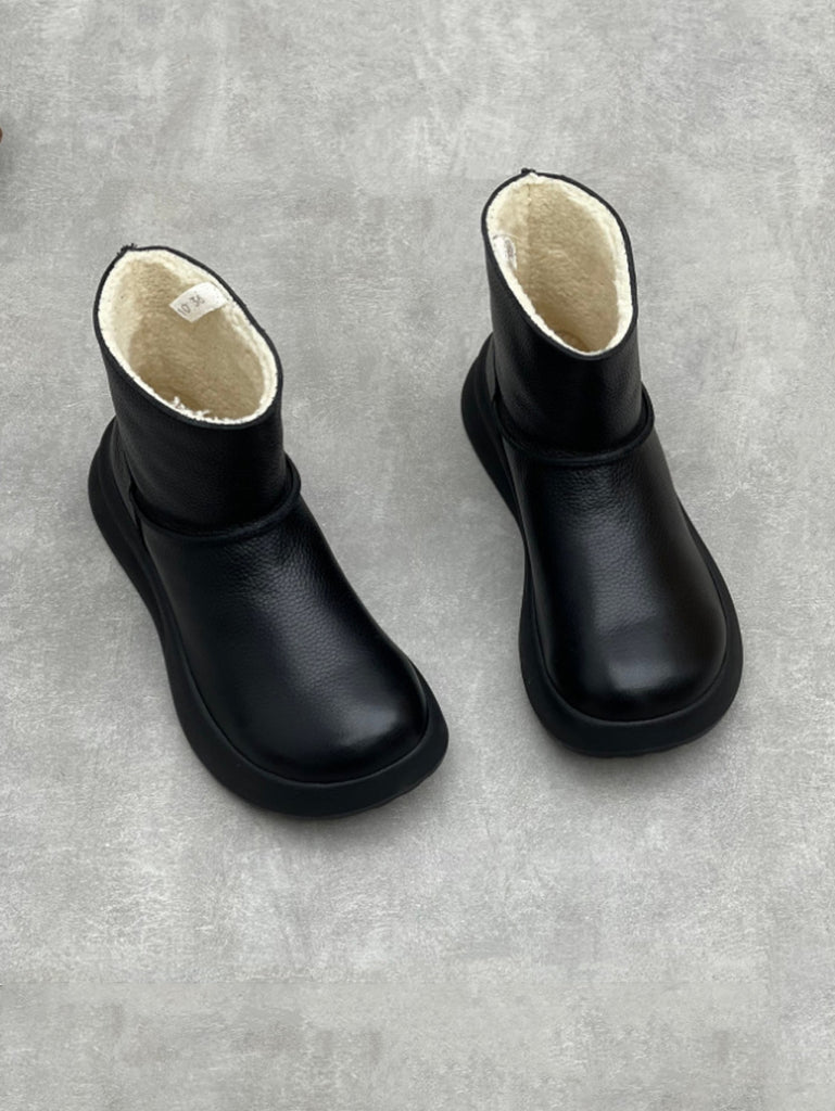Botas de plataforma femininas vintage em couro genuíno com forro de lã