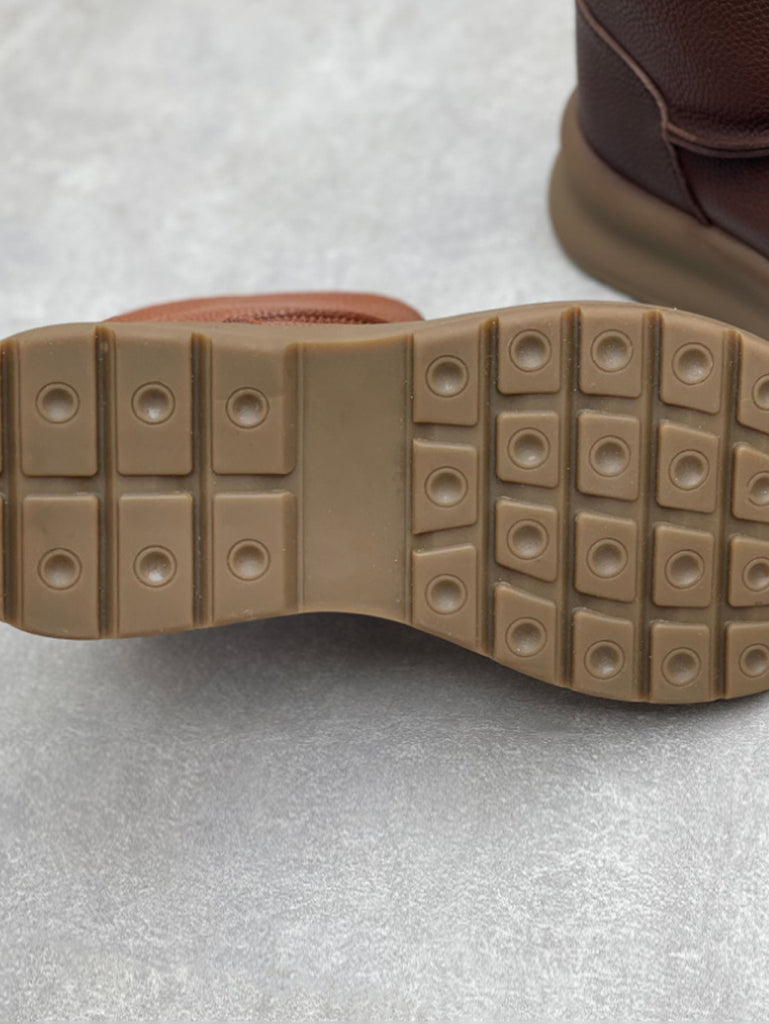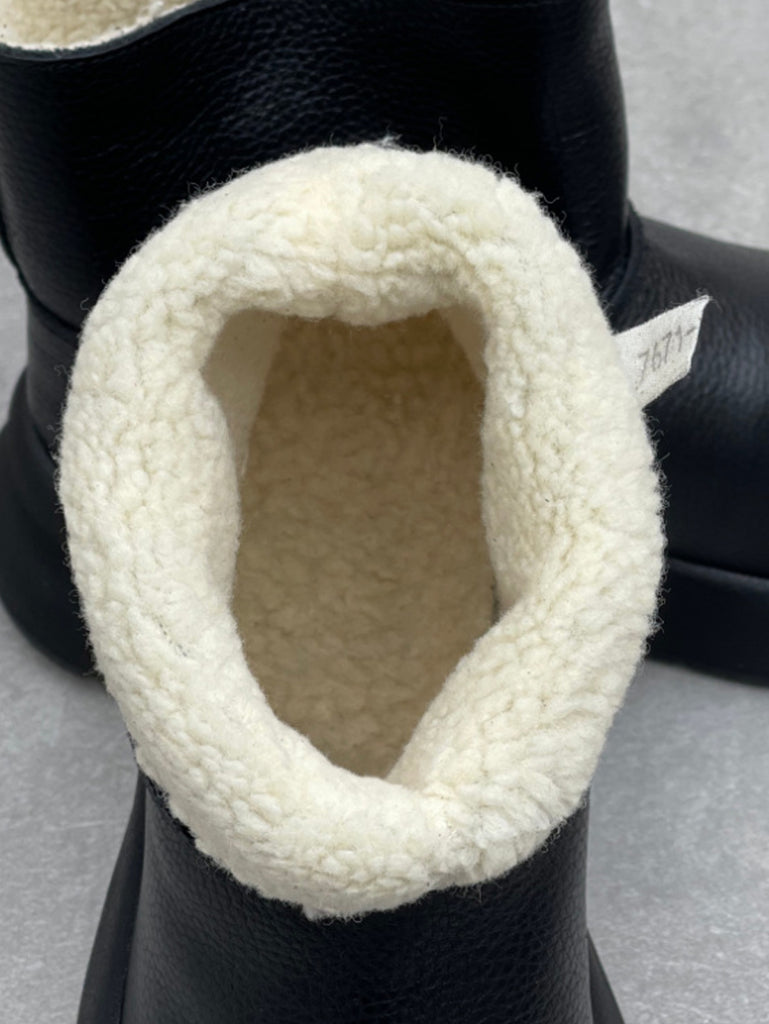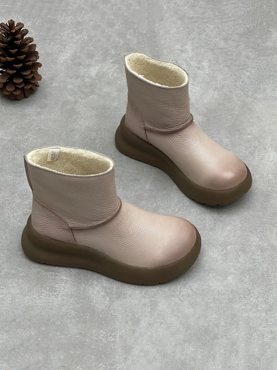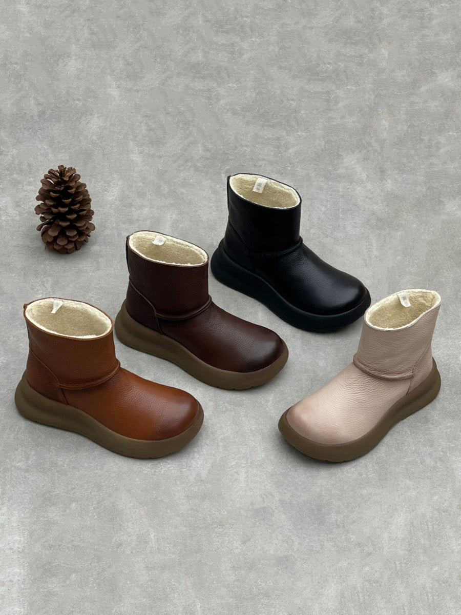 Botas de plataforma femininas vintage em couro genuíno com forro de lã