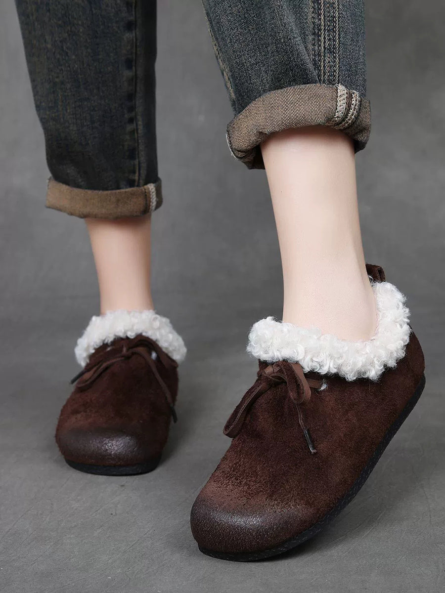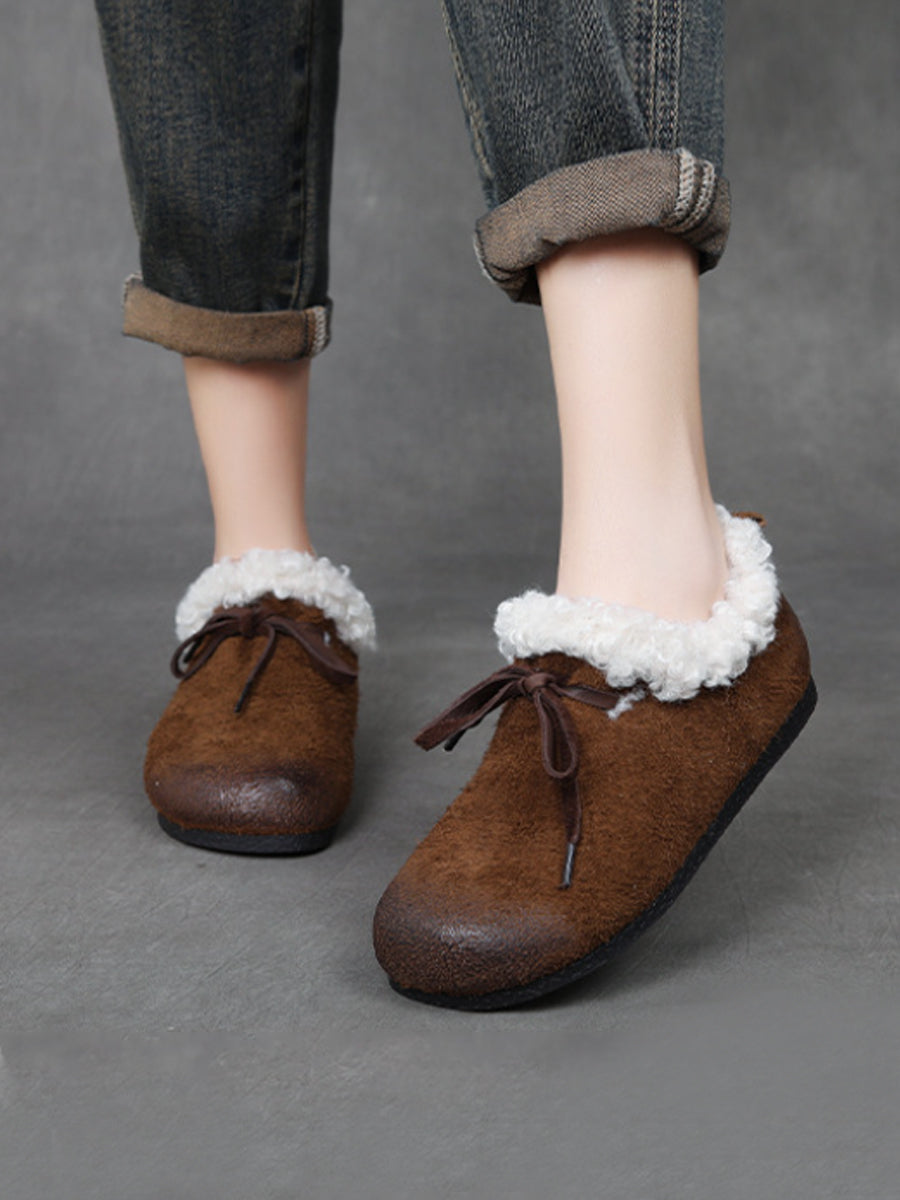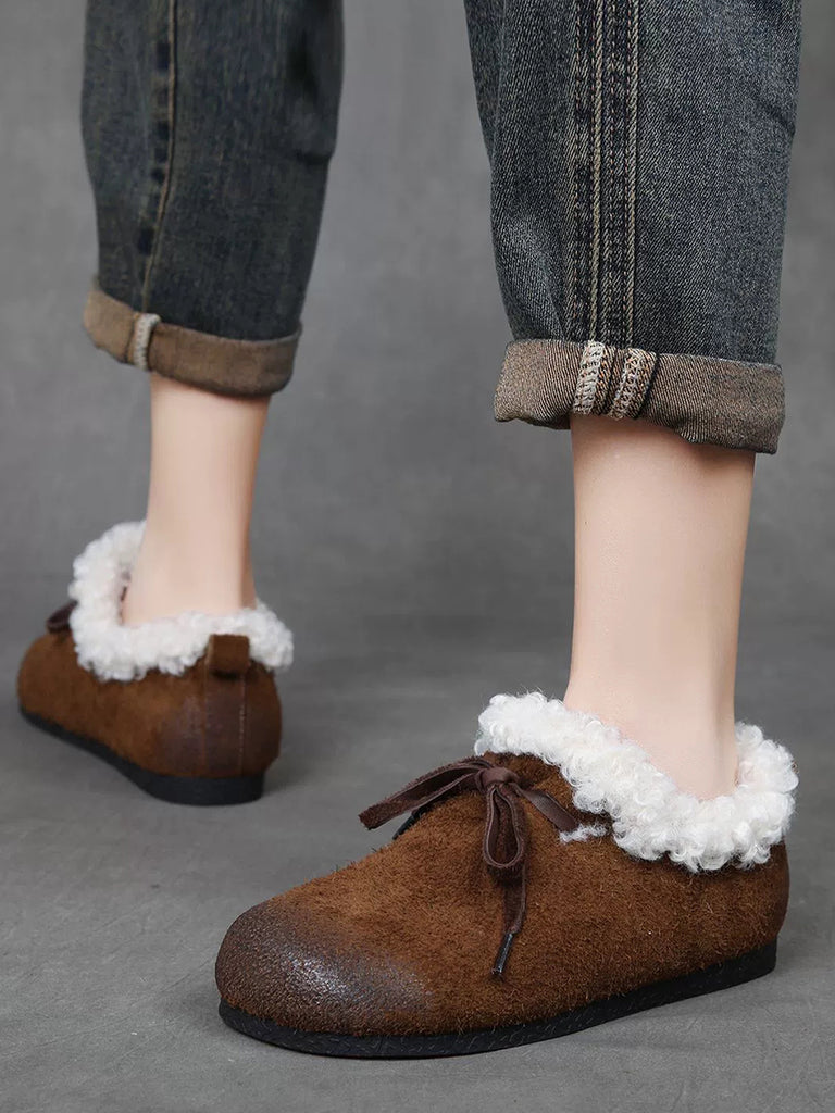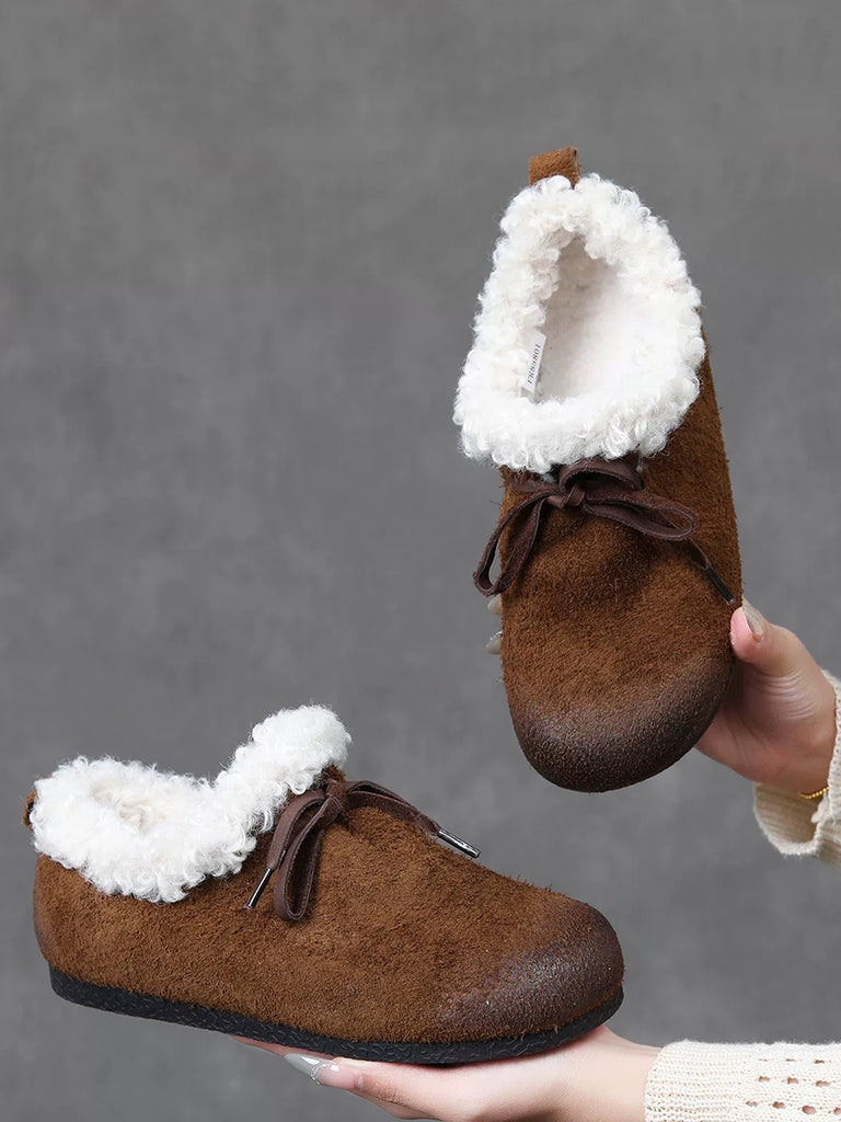 Sapatos femininos vintage de couro genuíno com forro de lã