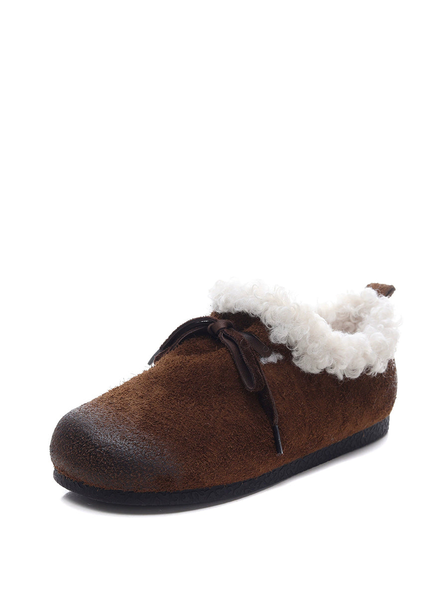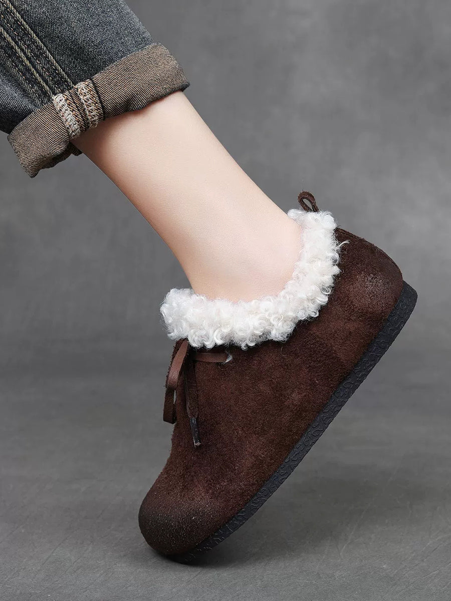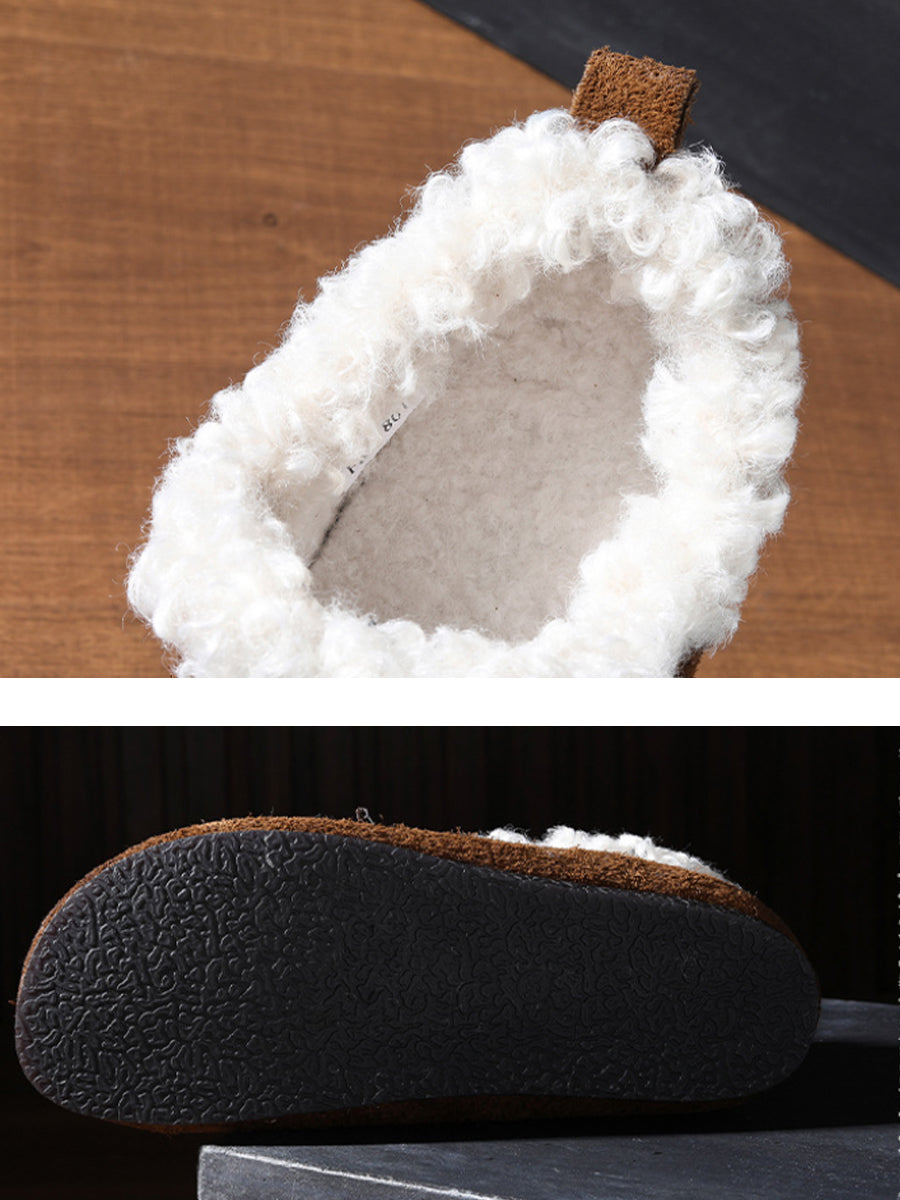Sapatos femininos vintage de couro genuíno com forro de lã