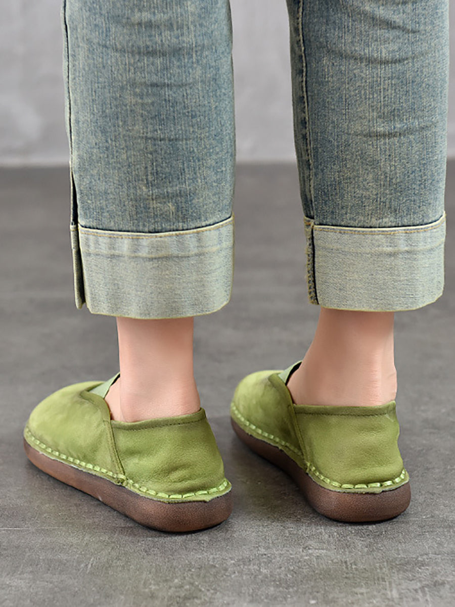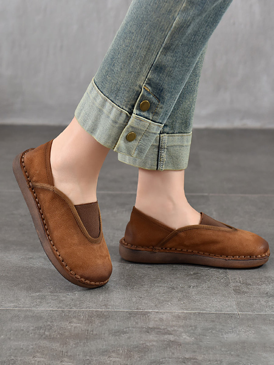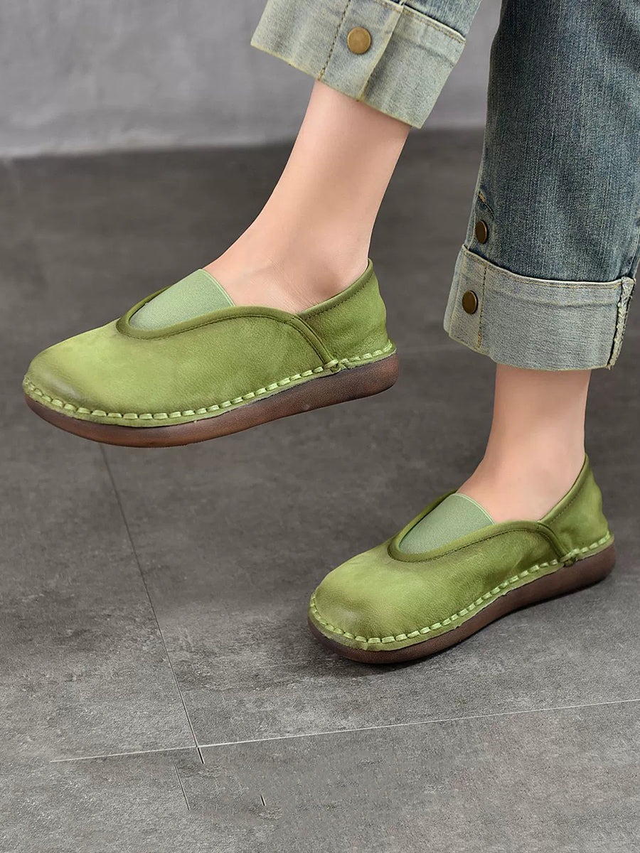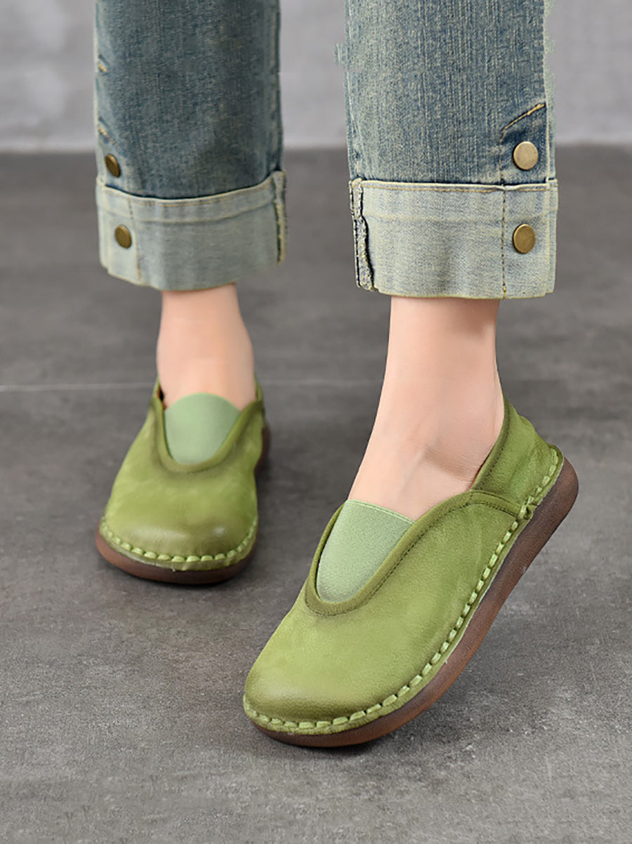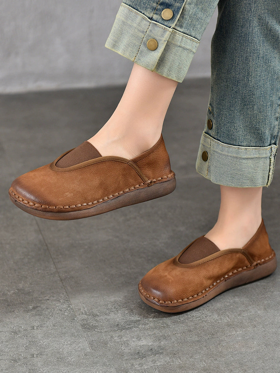 Sapatos femininos vintage de couro genuíno com detalhes em patchwork.