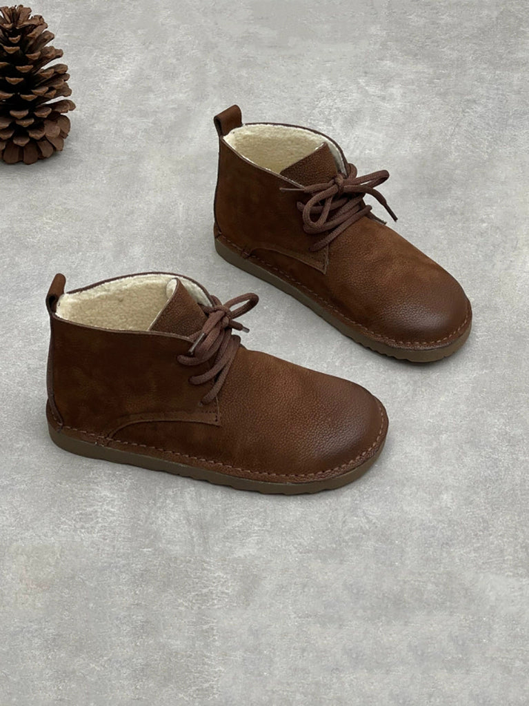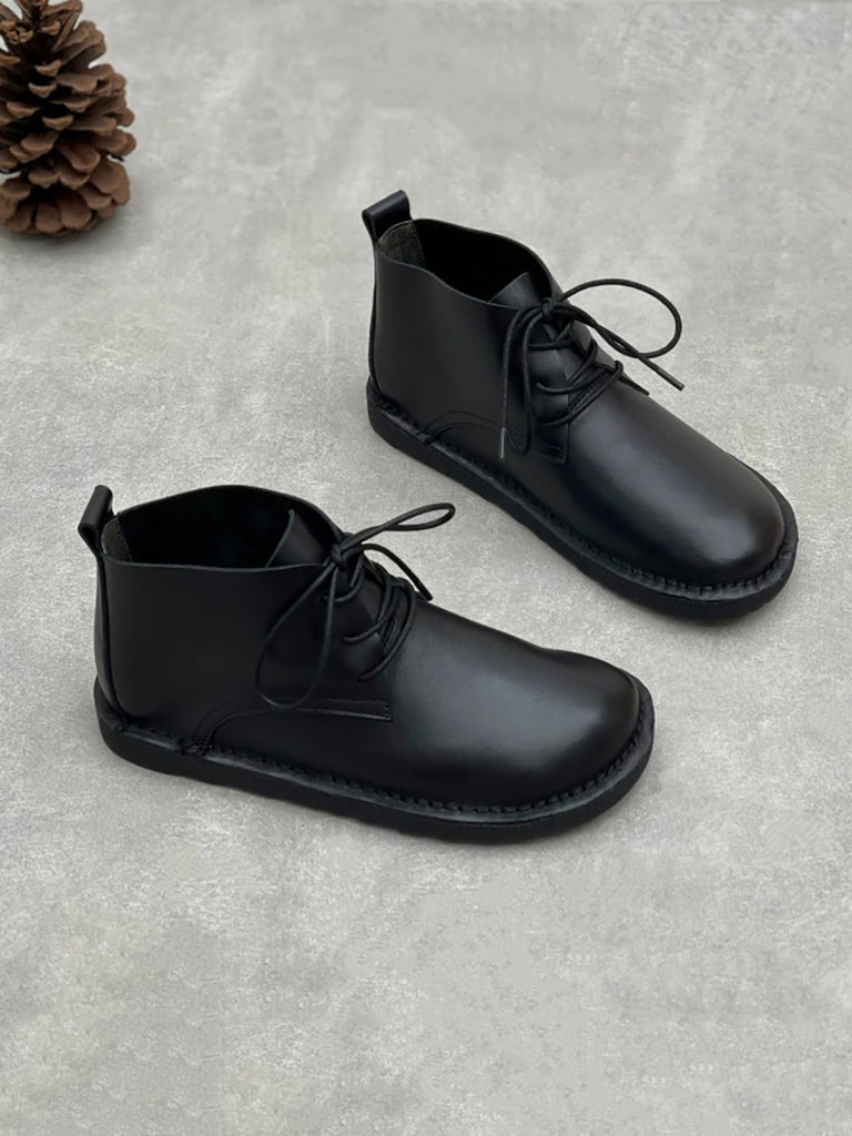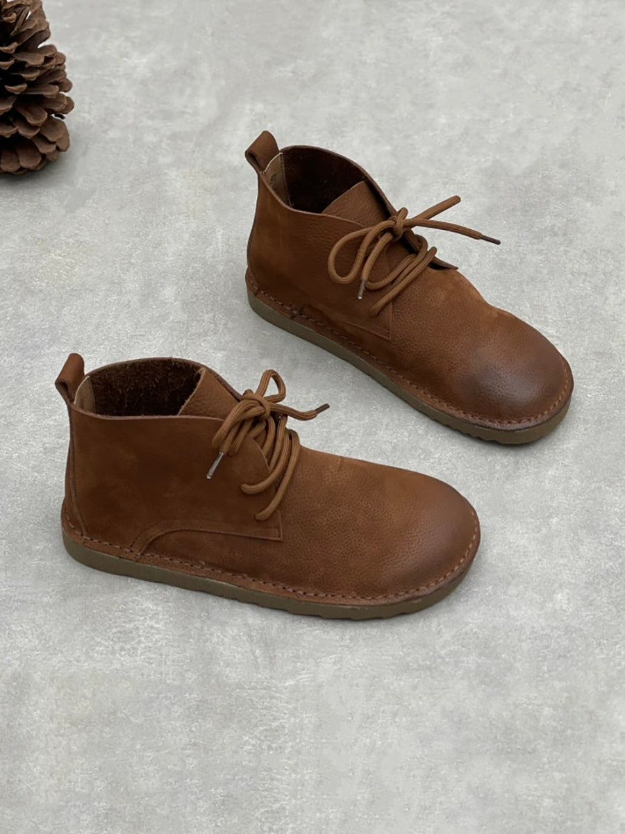 Botas de tornozelo femininas vintage em couro genuíno com tira.