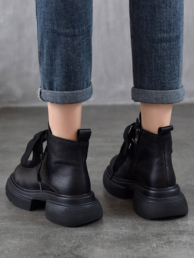 Botas plataforma vintage femininas de couro legítimo com tiras