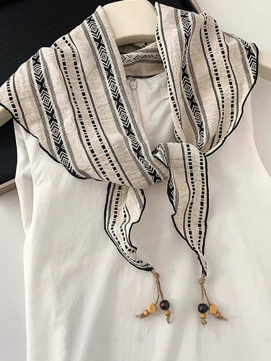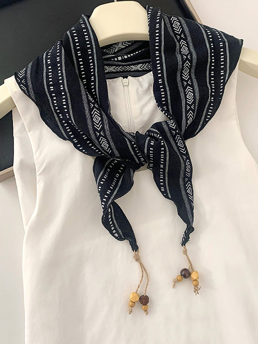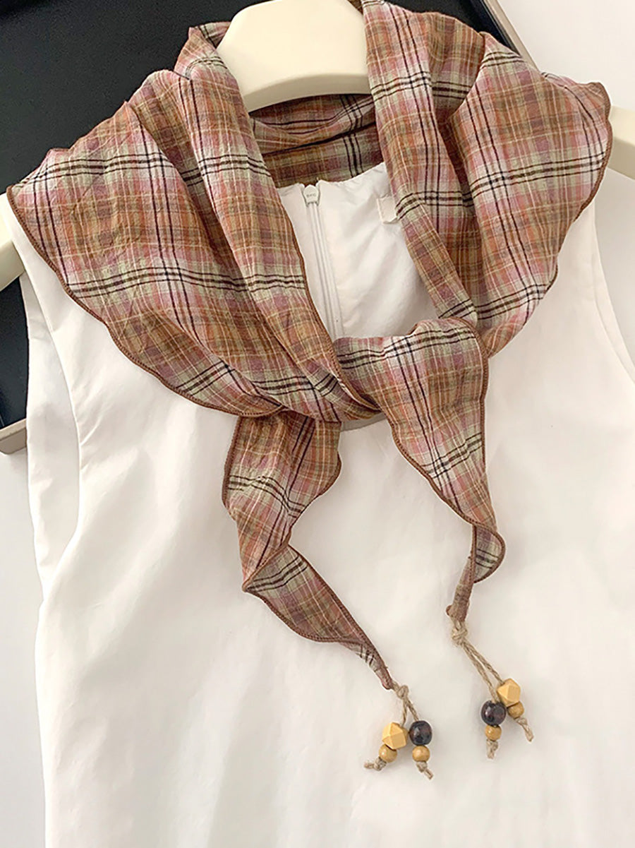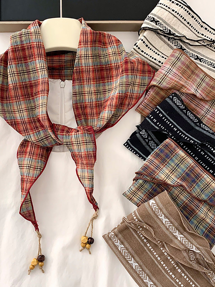 Lenço triangular feminino vintage xadrez com franjas de miçangas