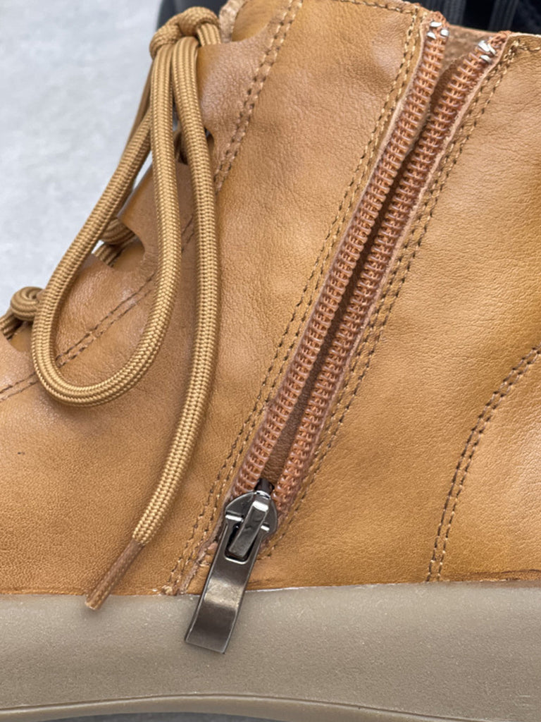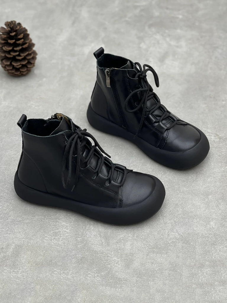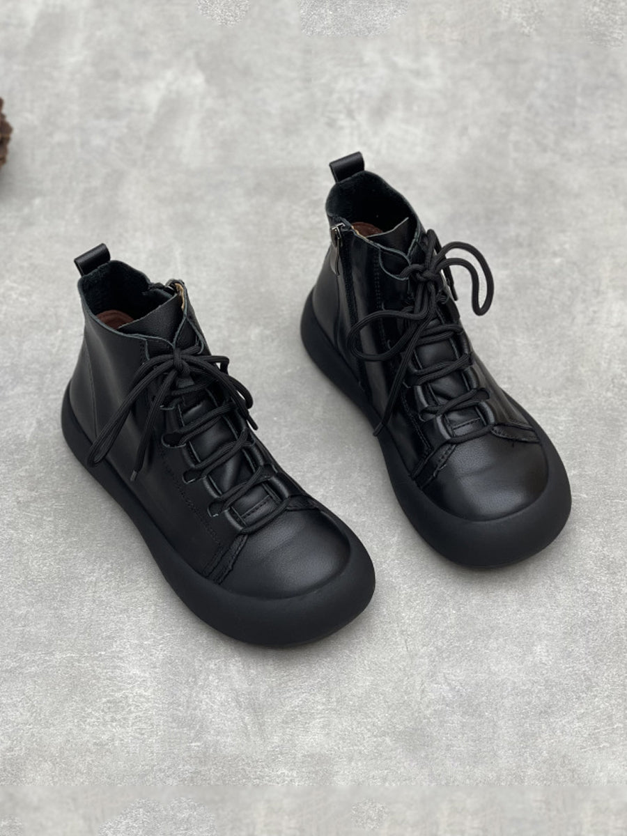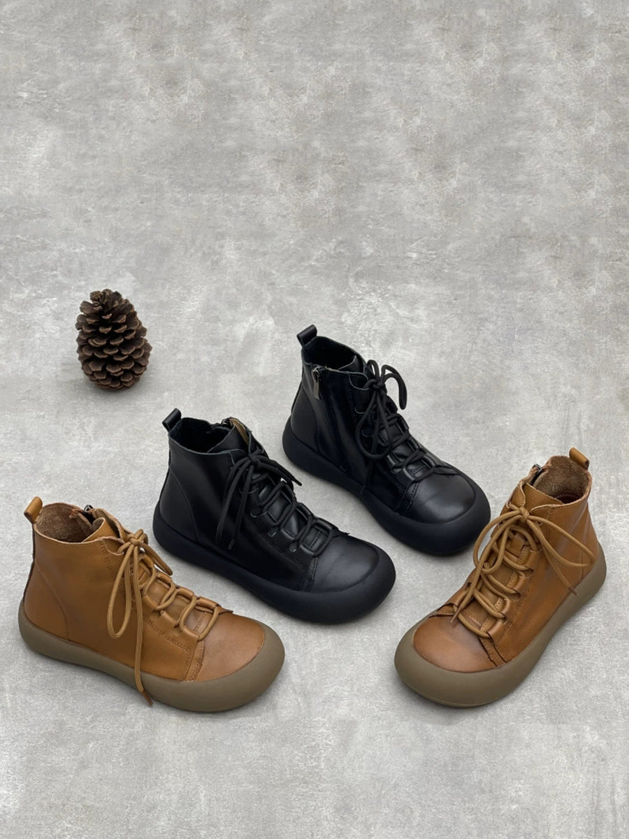 Botas femininas vintage de couro legítimo de cor pura até o tornozelo