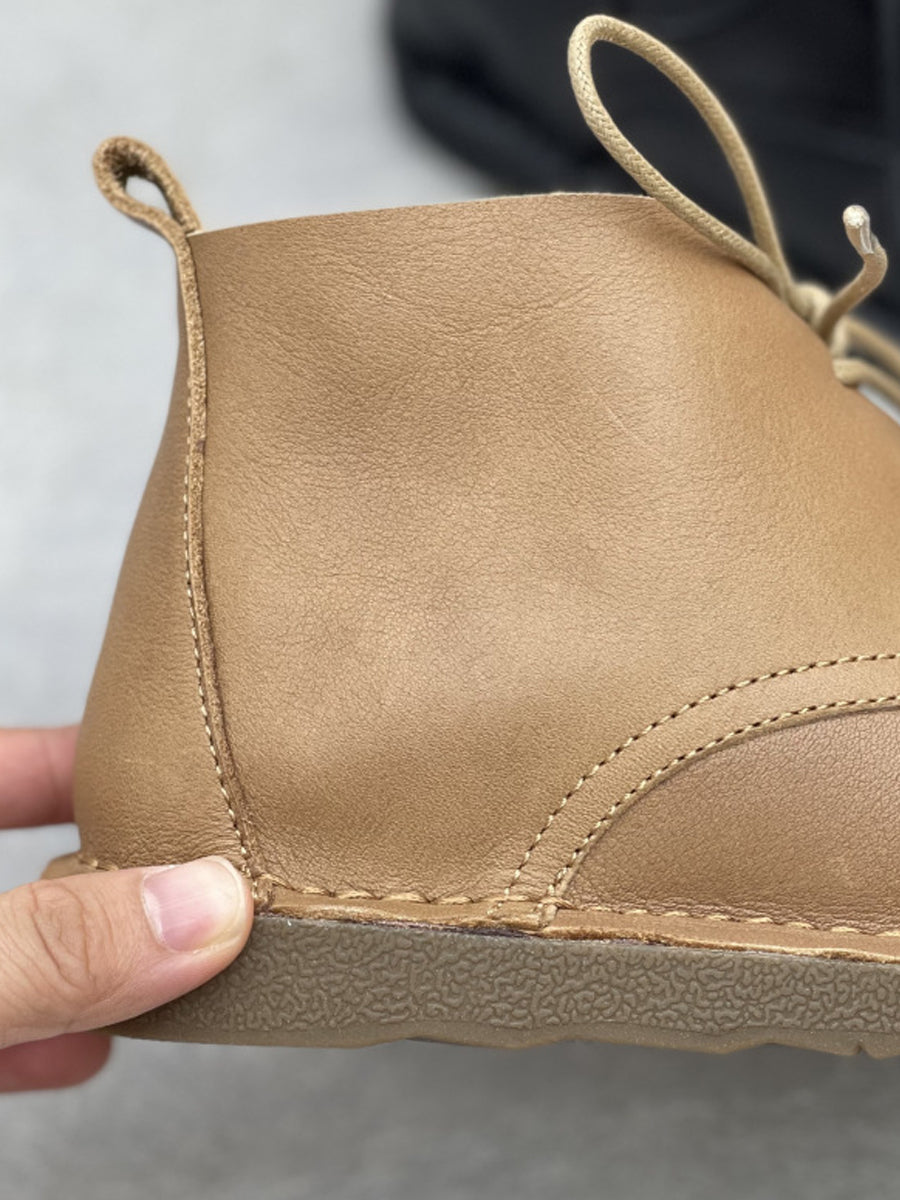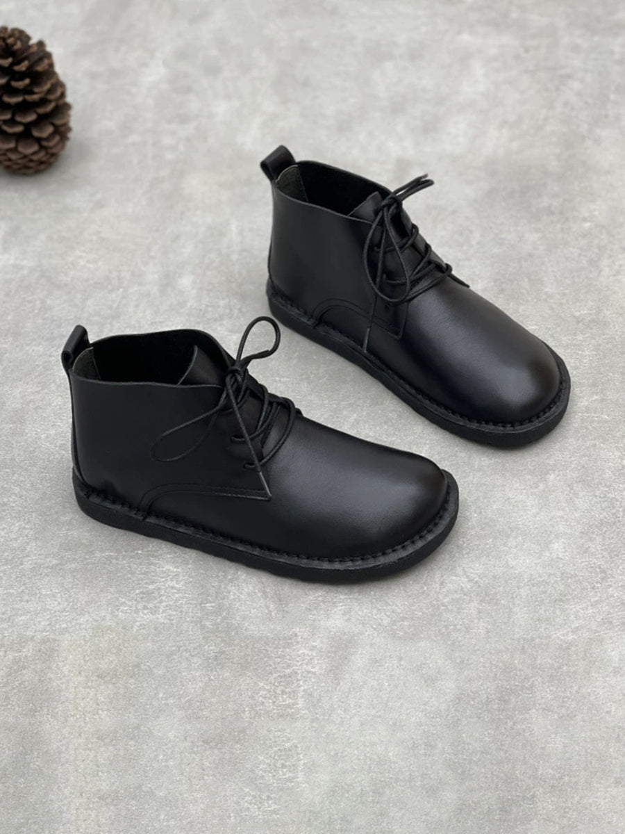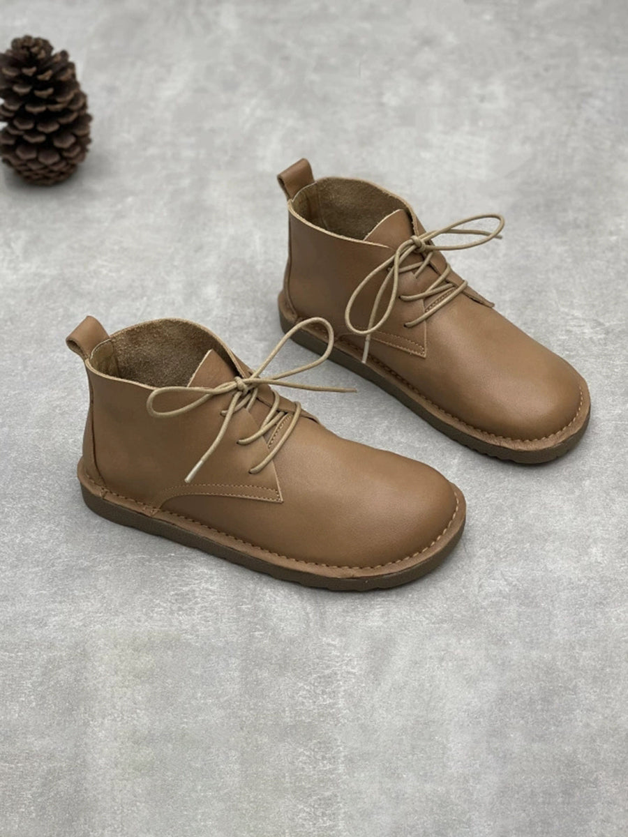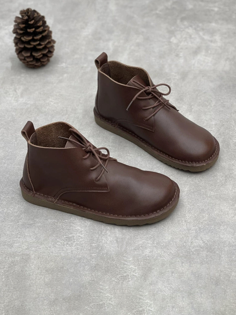 Botas femininas vintage de couro legítimo de cor pura até o tornozelo
