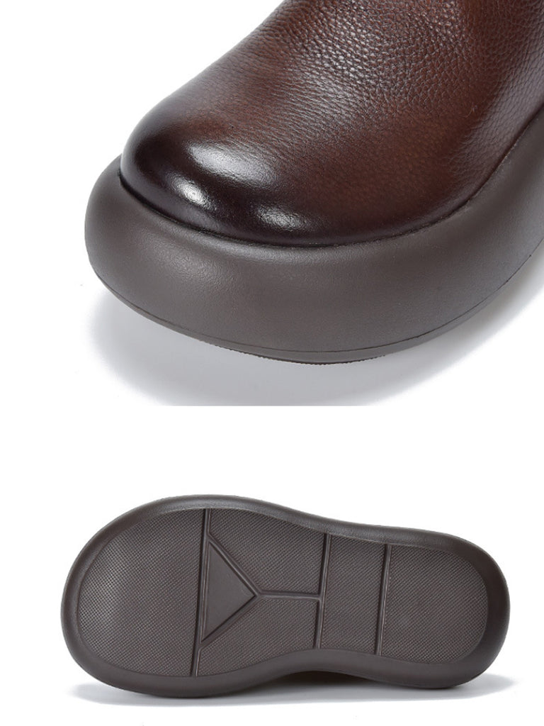 Botas femininas vintage de couro macio com plataforma