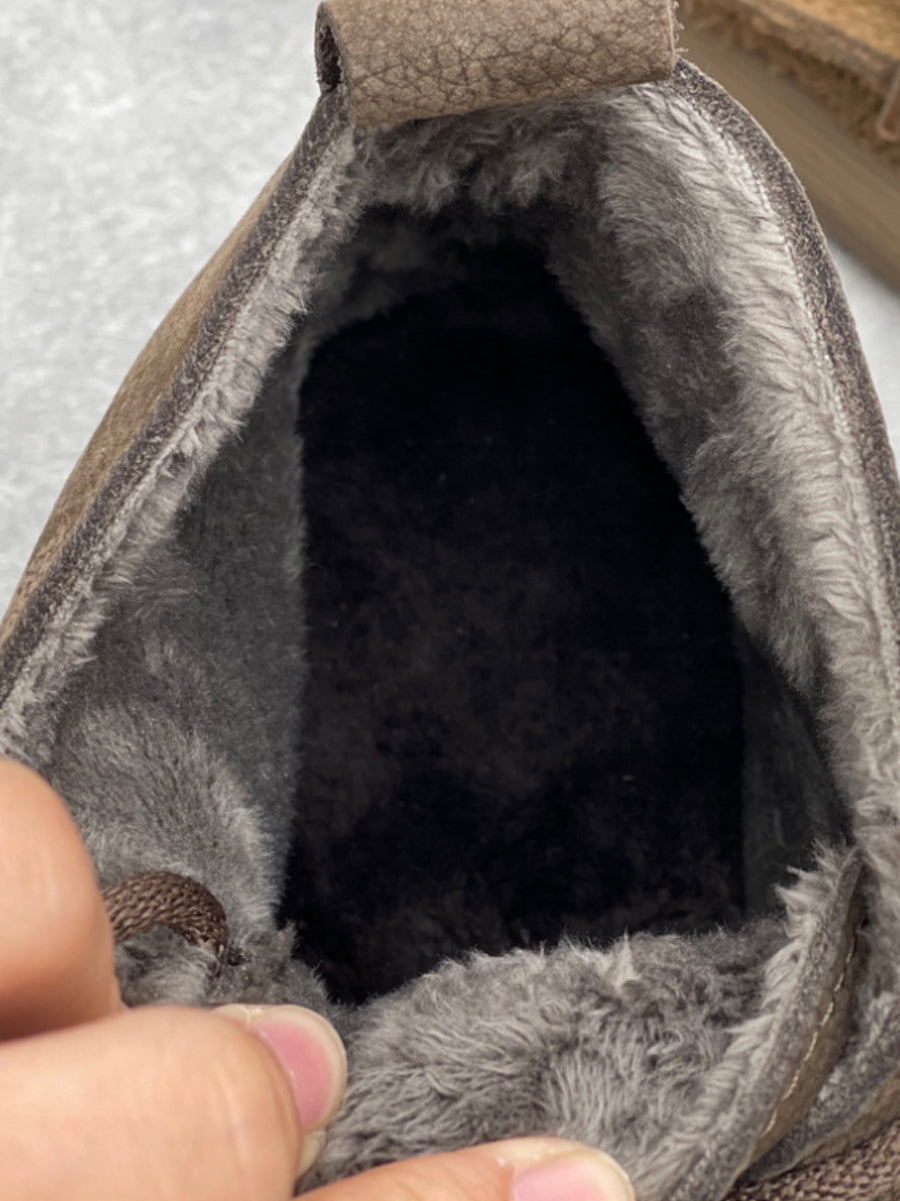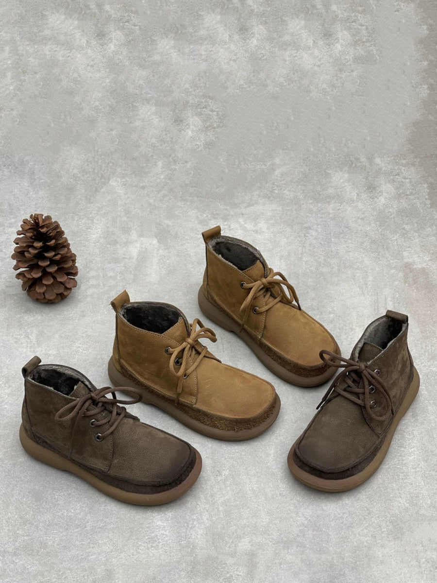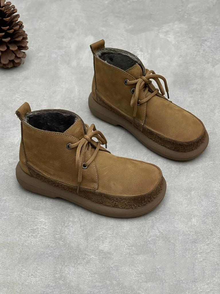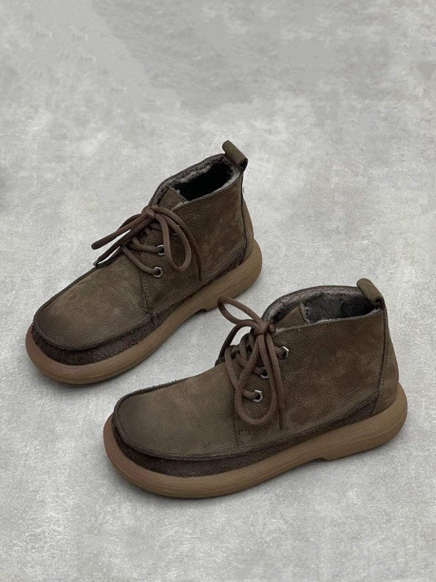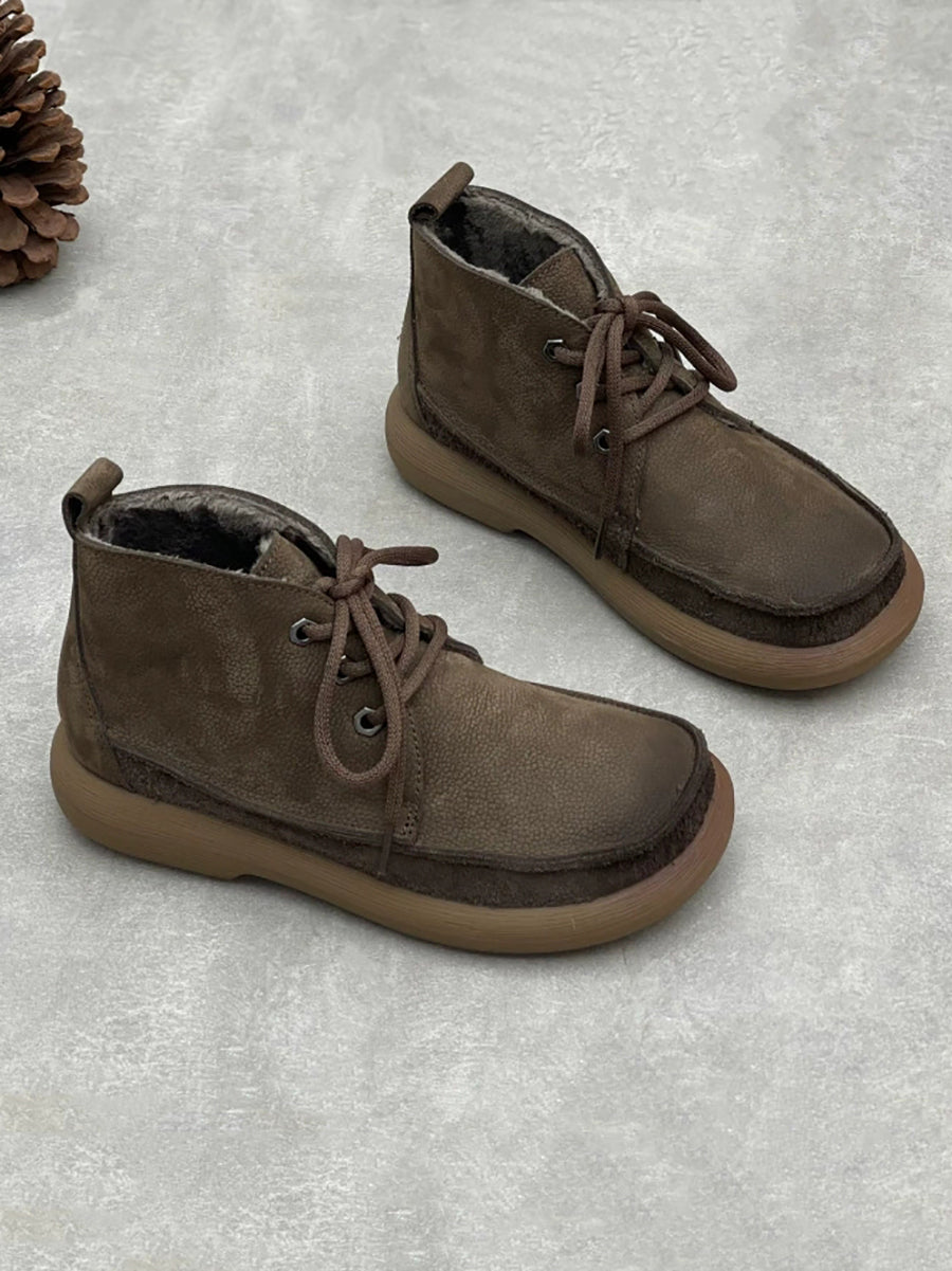 Botas de cano curto femininas vintage de inverno em couro legítimo
