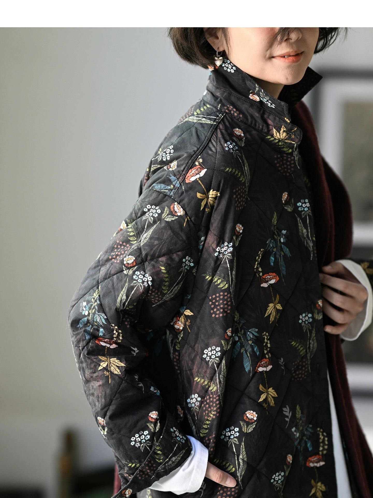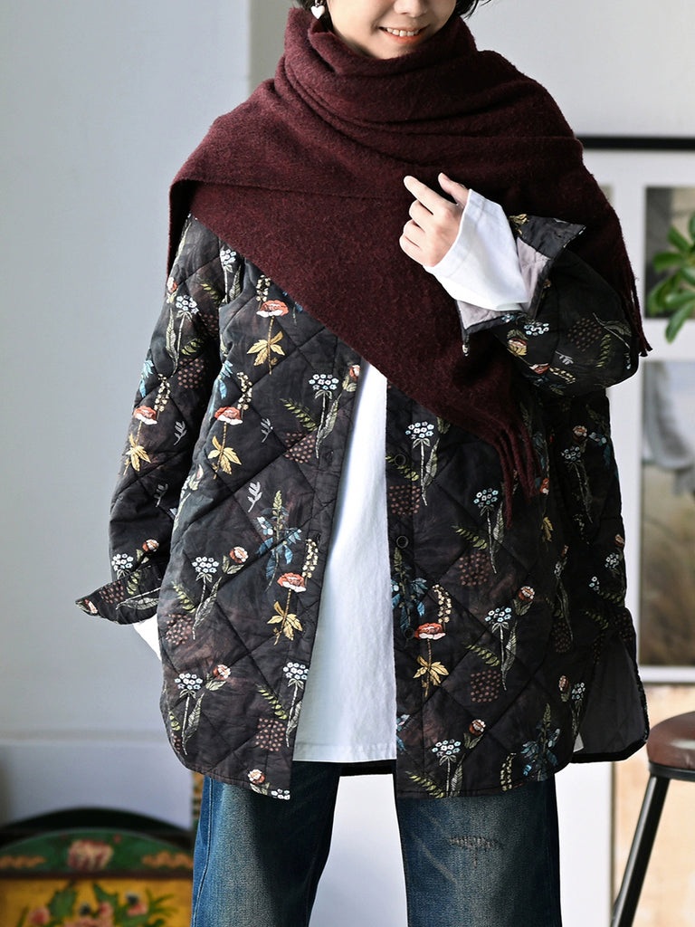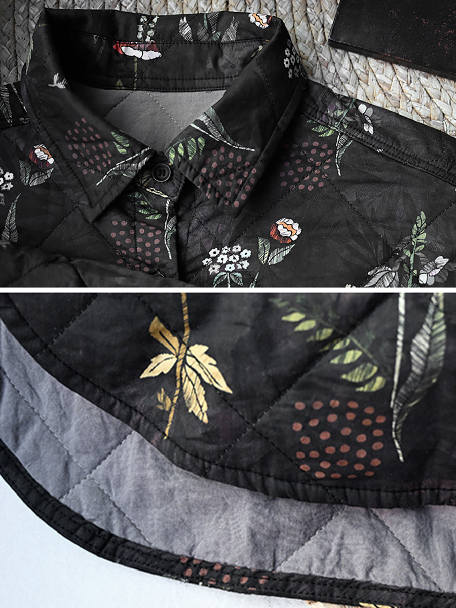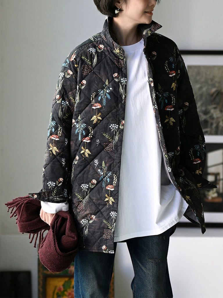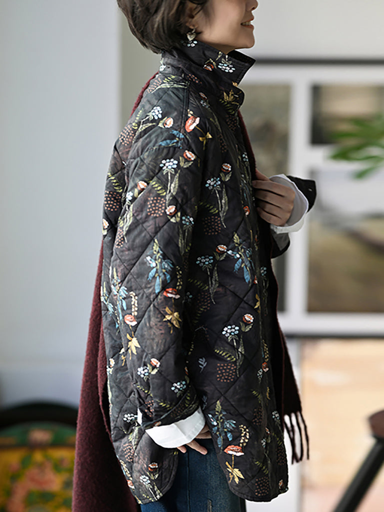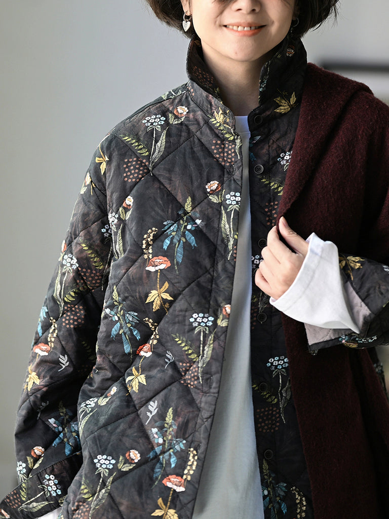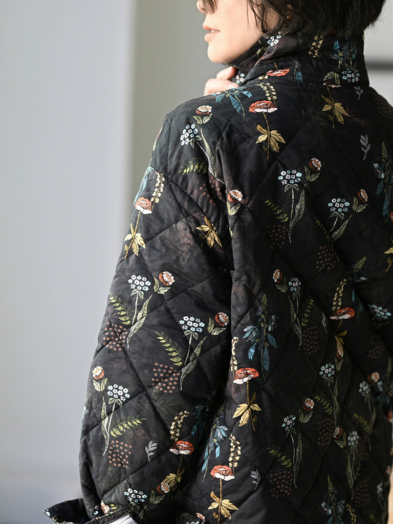 Casaco acolchoado feminino de inverno com estampa floral artística