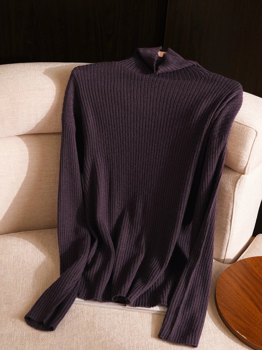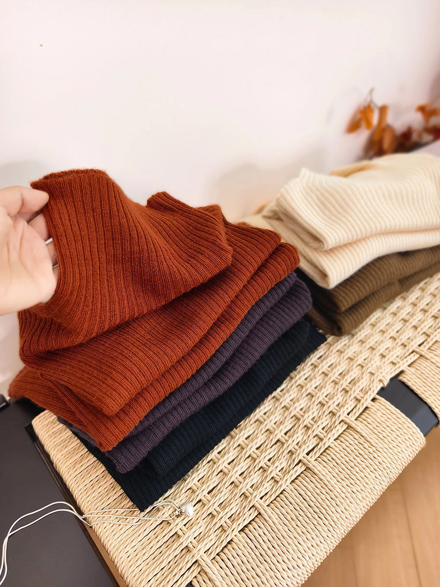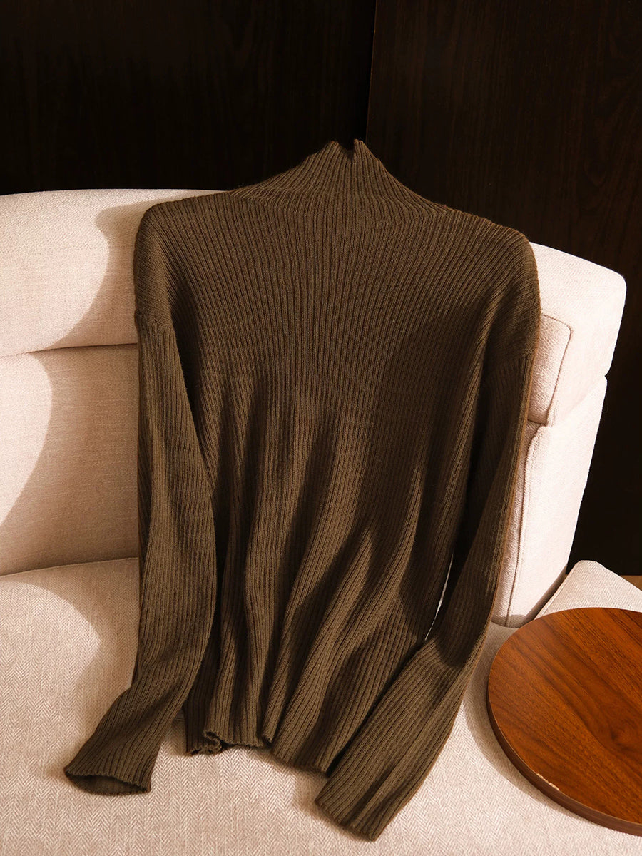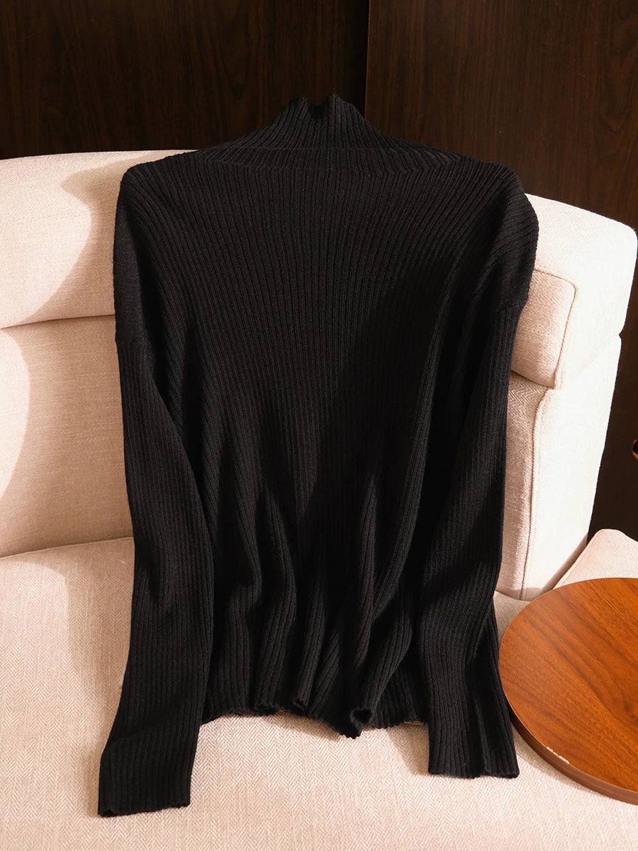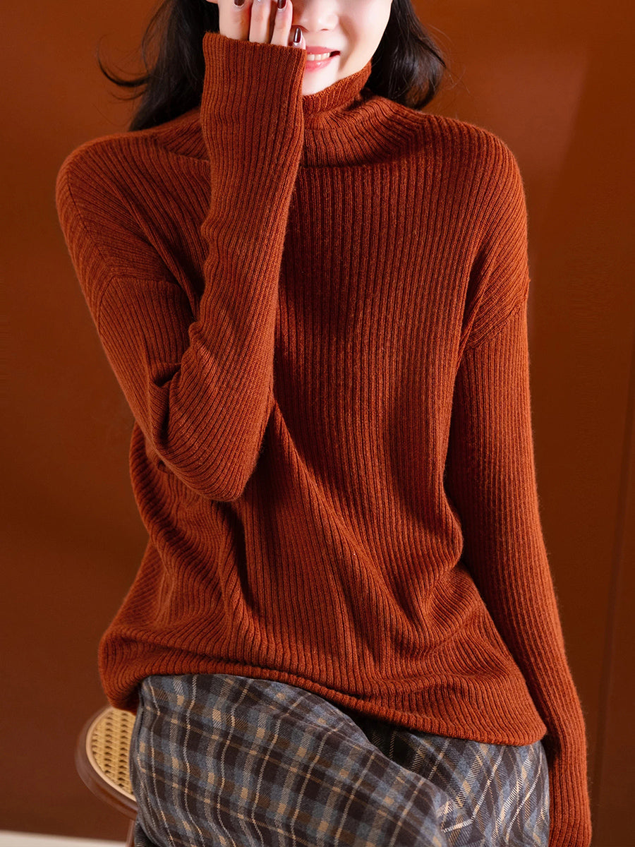 Suéter feminino de gola alta tricotado, estilo artístico, para o inverno.