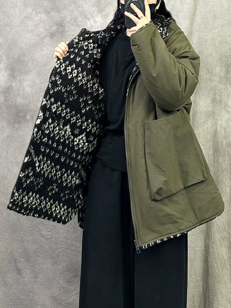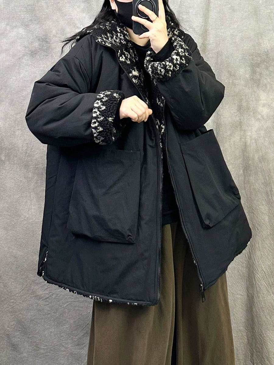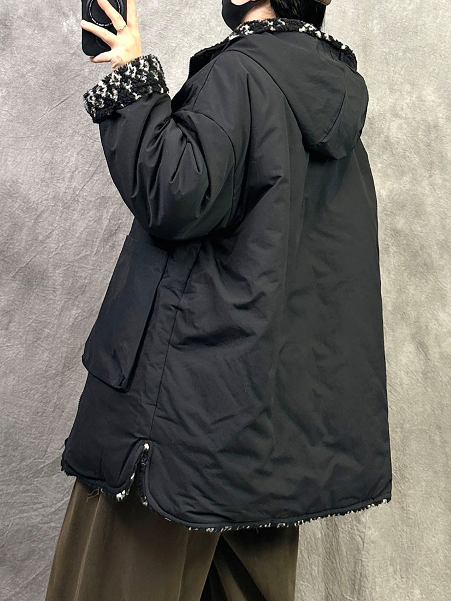 Casaco feminino de inverno casual em fleece com capuz que pode ser usado dos dois lados.
