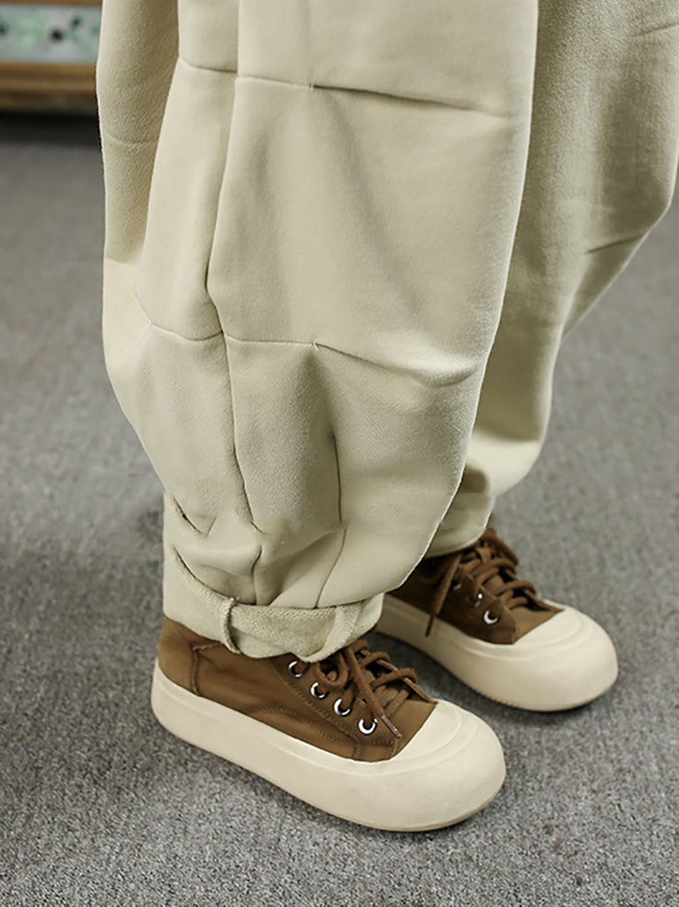 Calças harém de algodão forradas com lã casual de inverno para mulheres