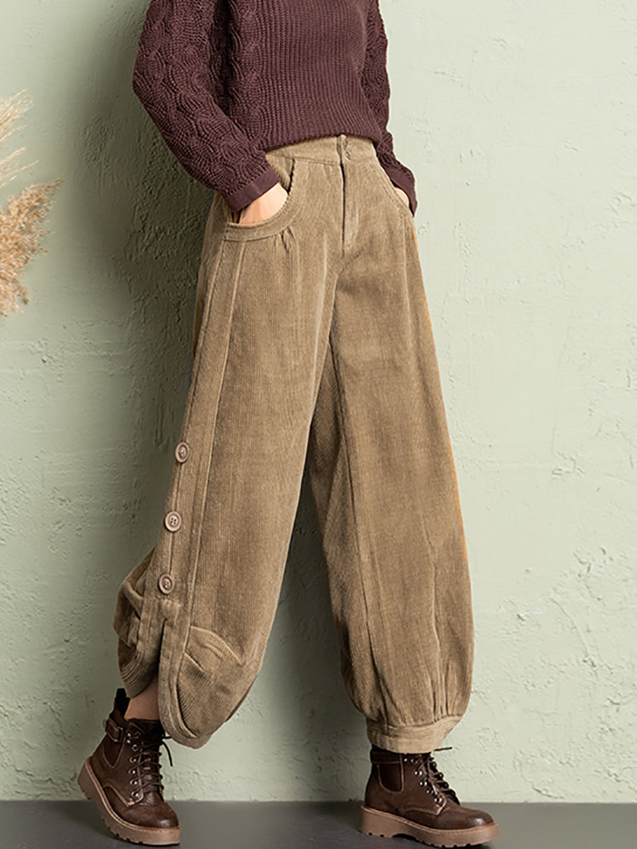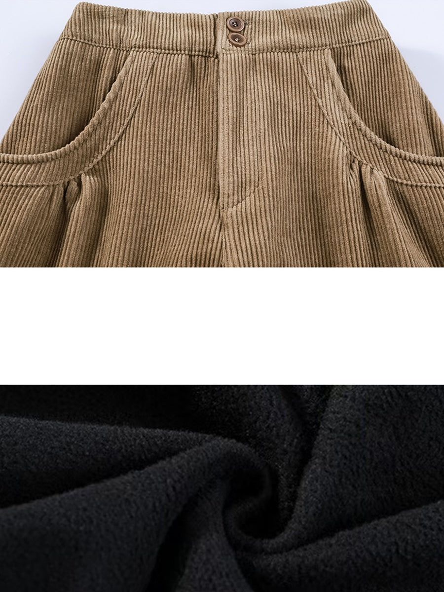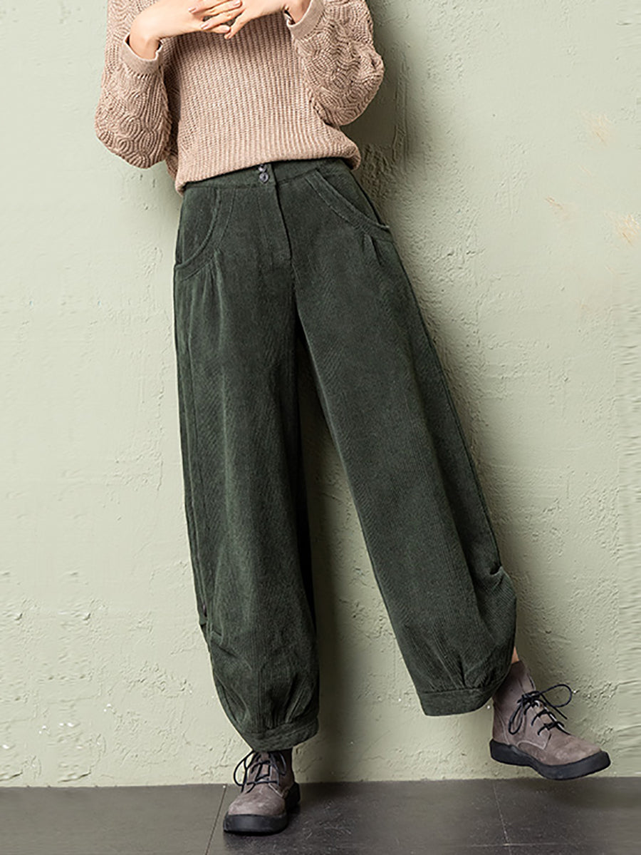 Calças de veludo cotelê femininas casuais de inverno em cor lisa
