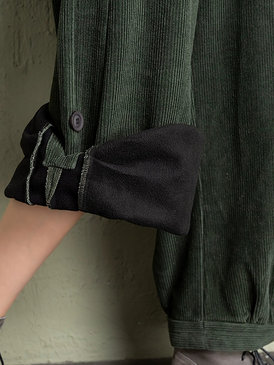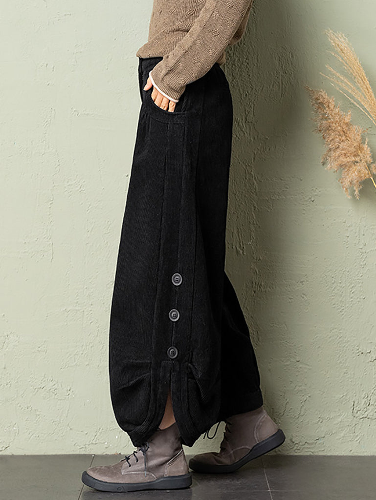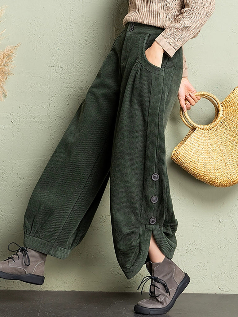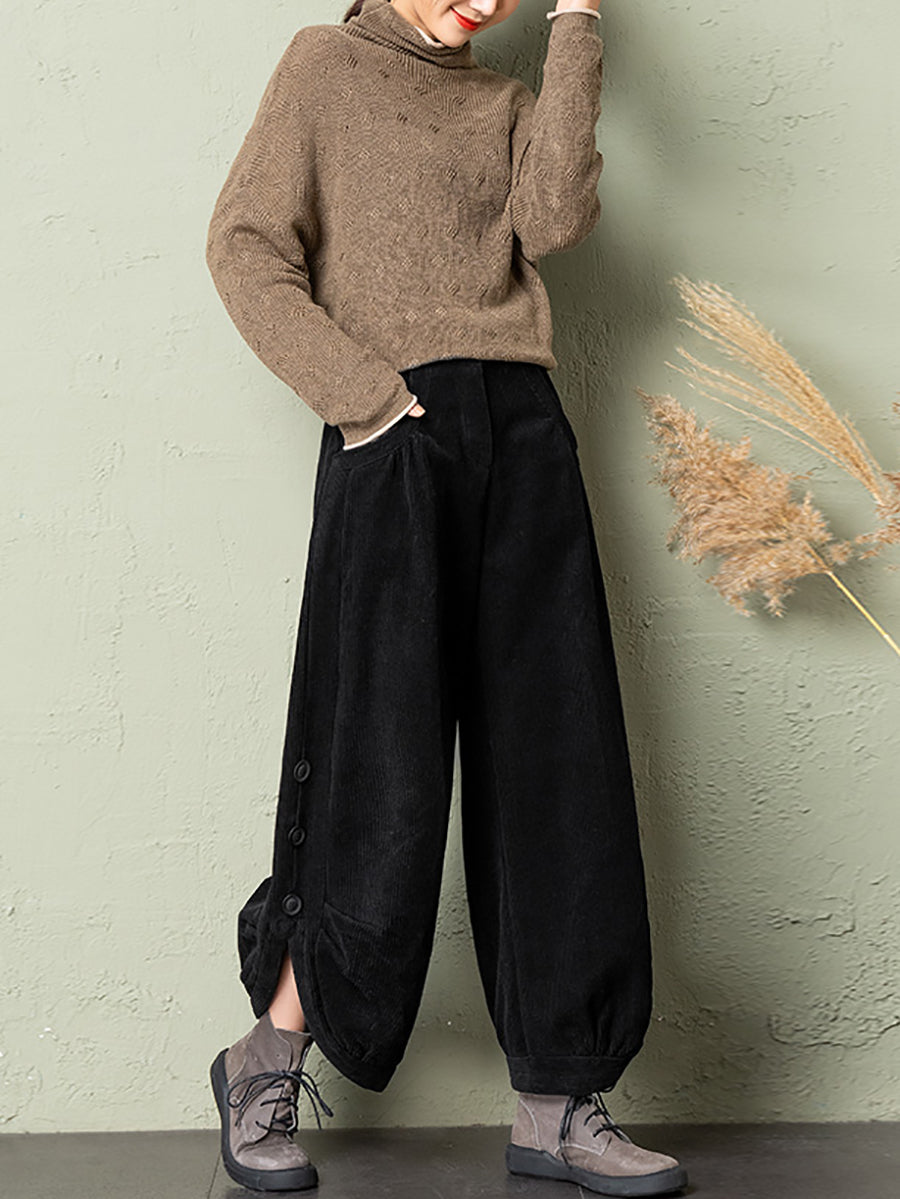 Calças de veludo cotelê femininas casuais de inverno em cor lisa