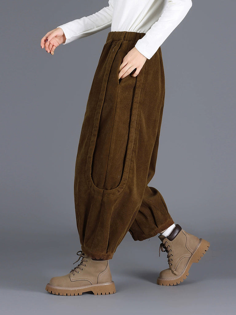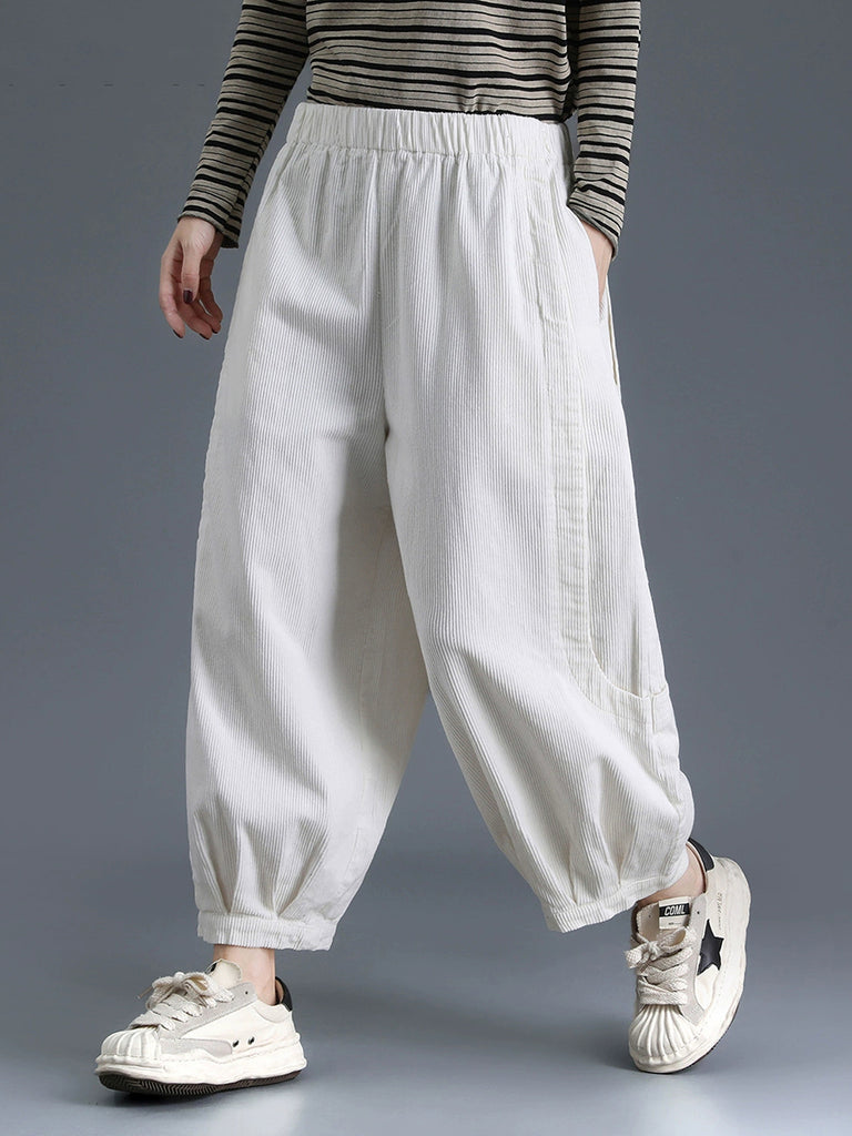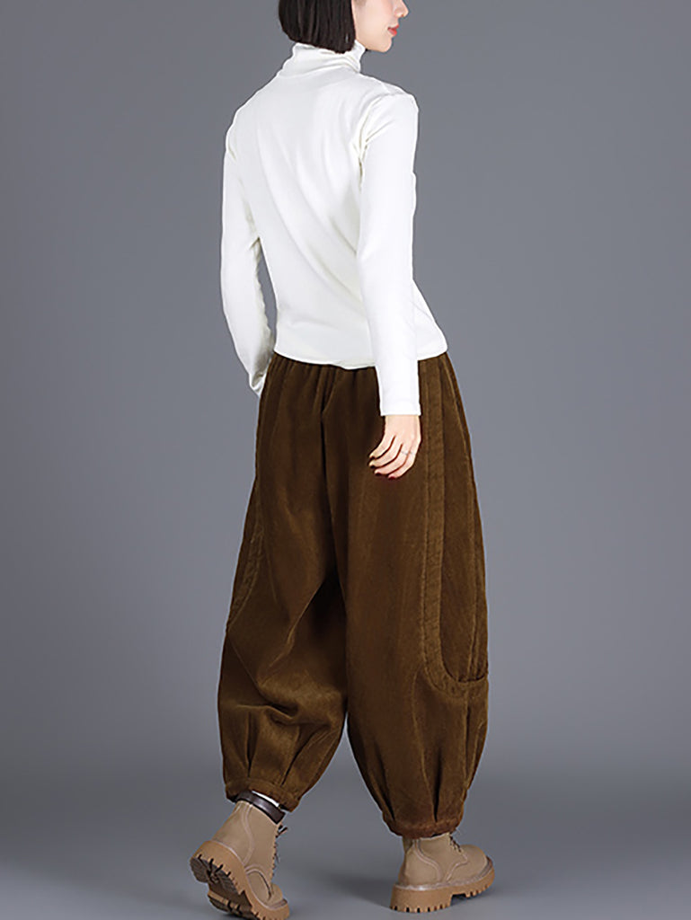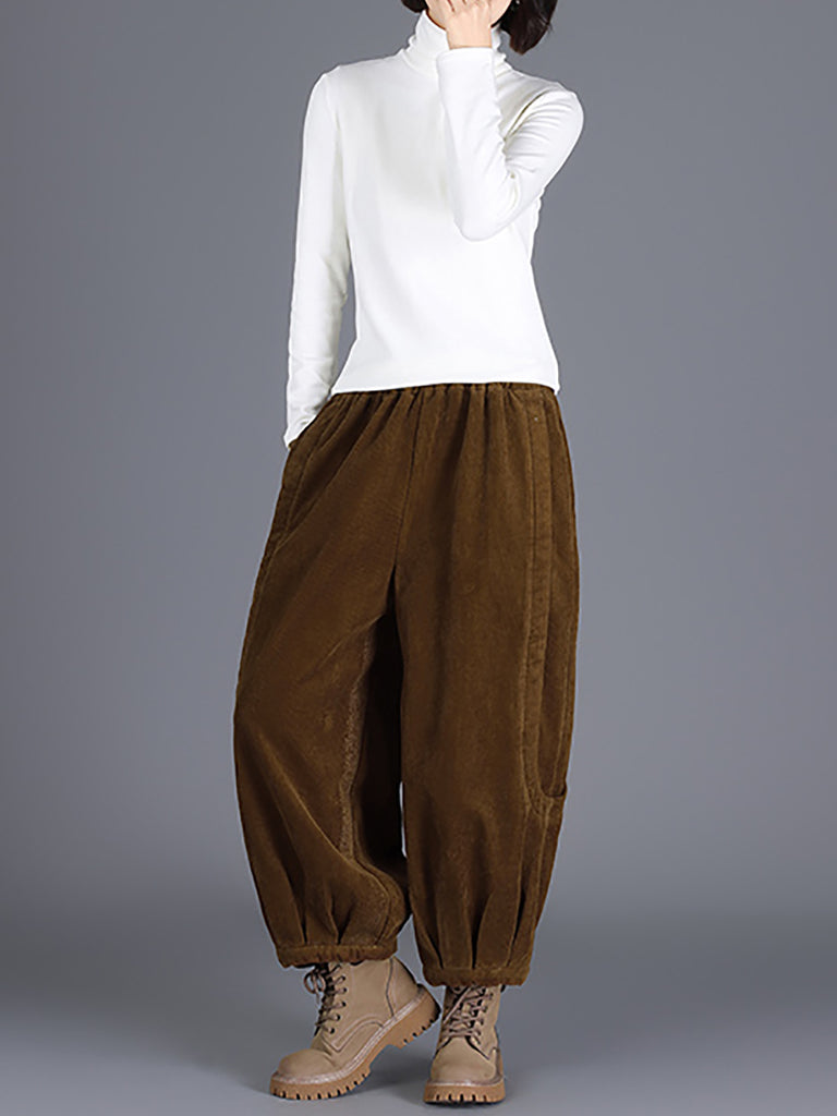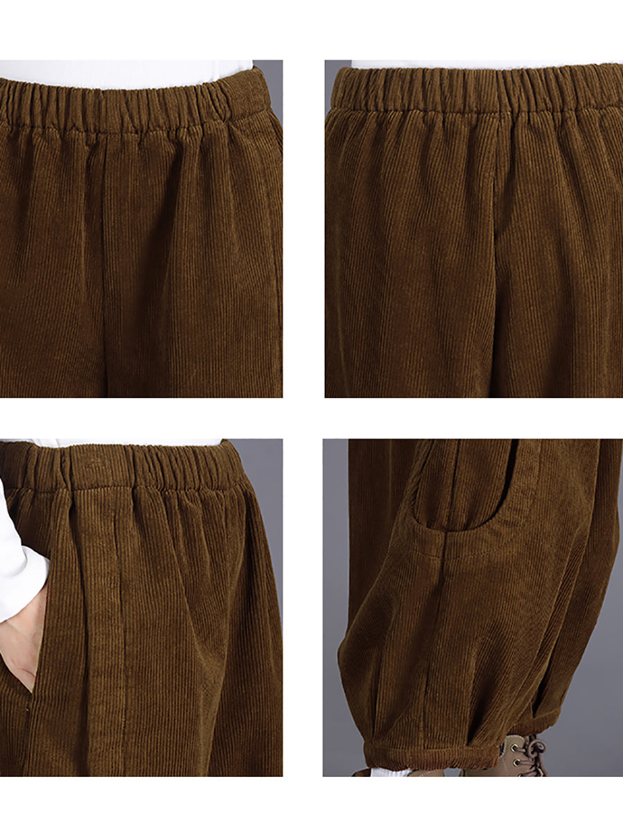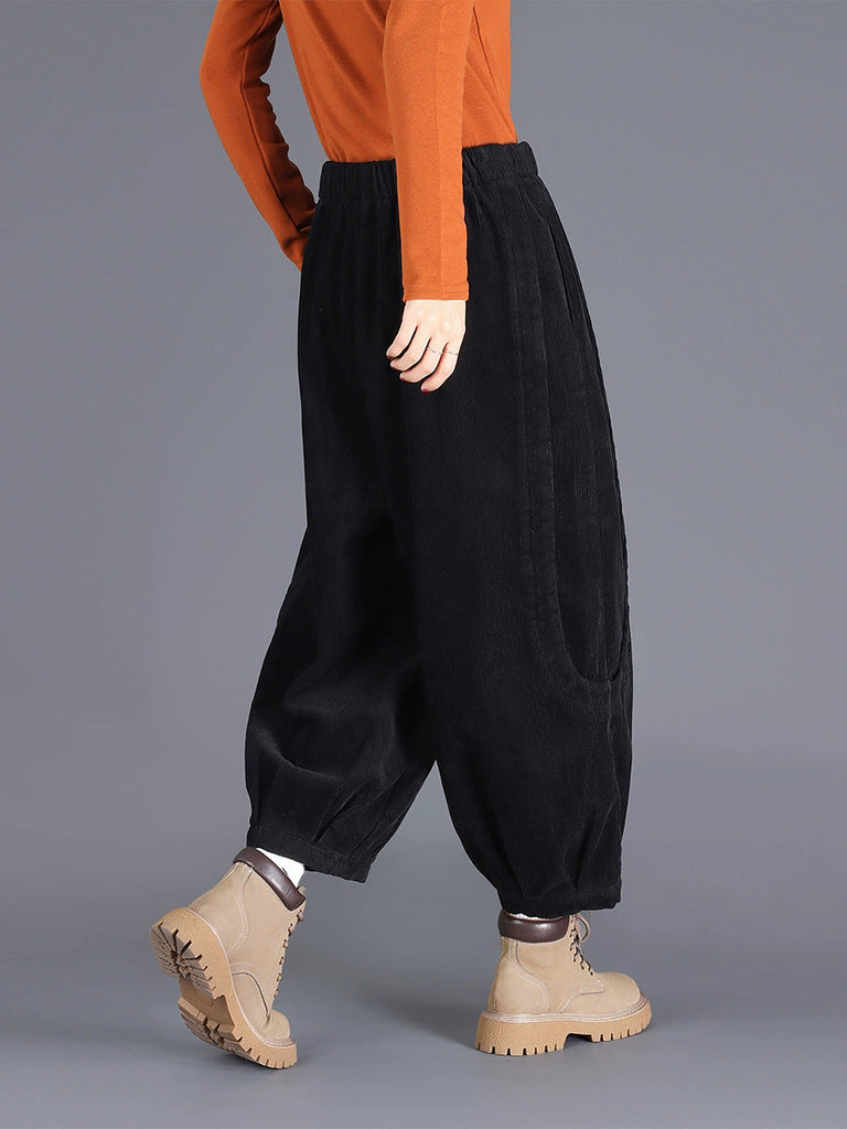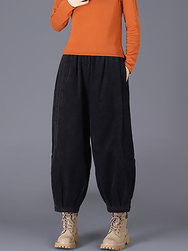 Calças de veludo cotelê femininas casuais de inverno em cores puras