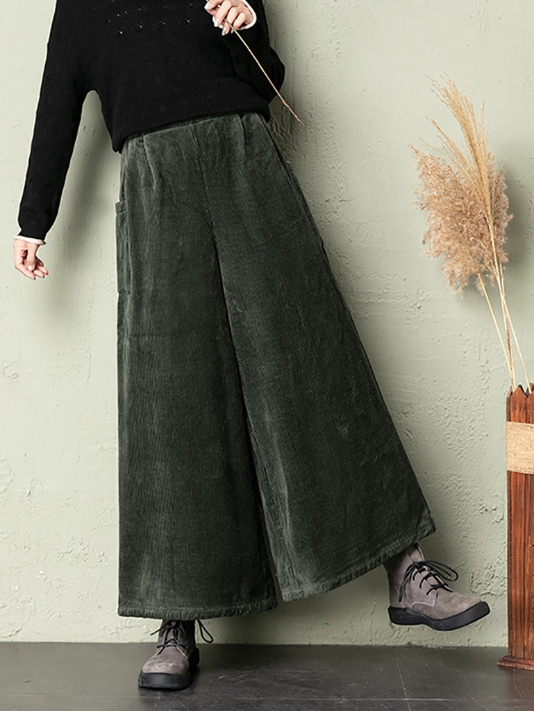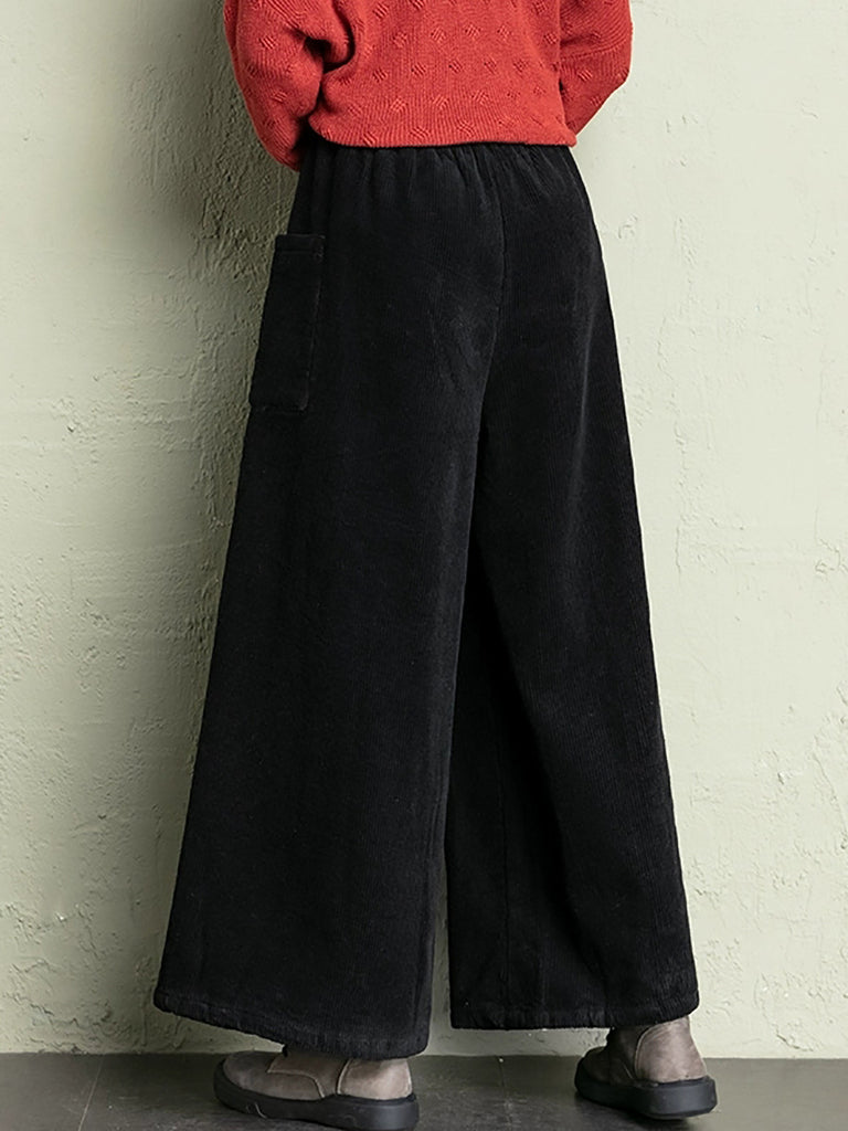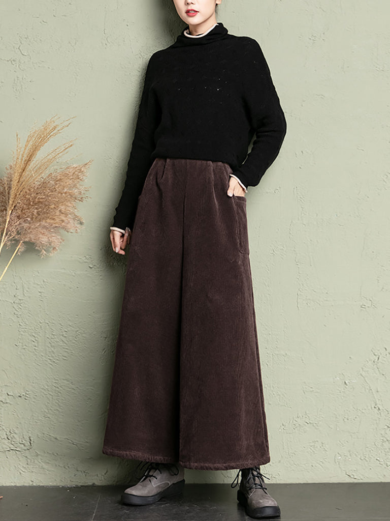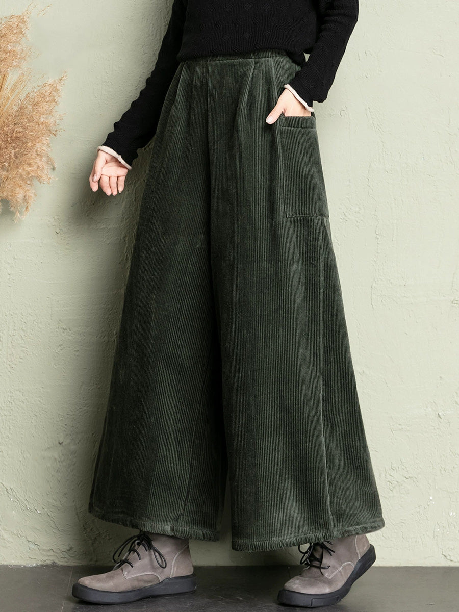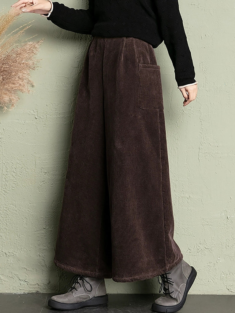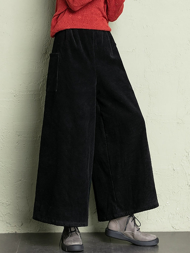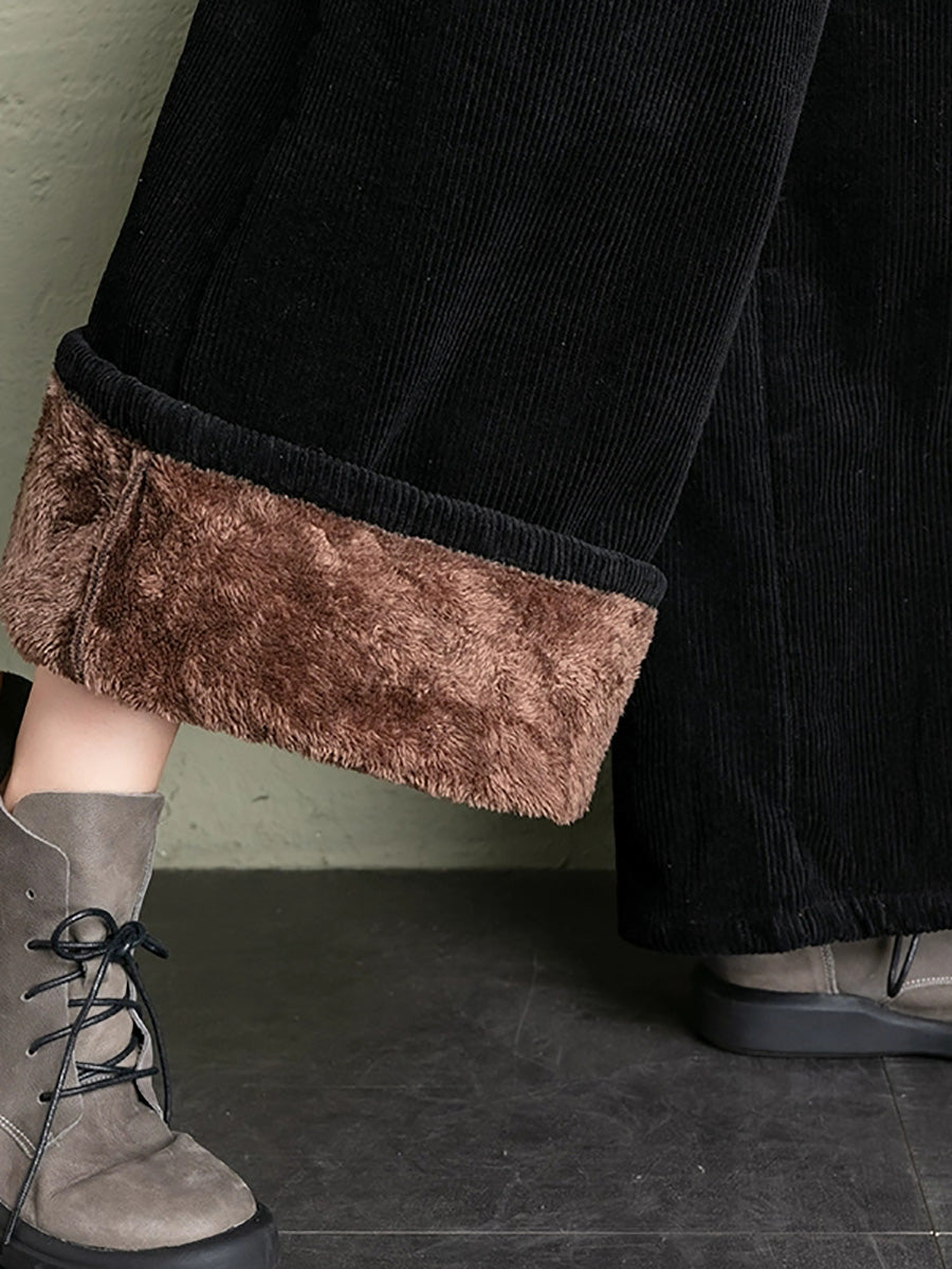 Calça feminina de veludo cotelê de cor lisa para o inverno, modelo casual.
