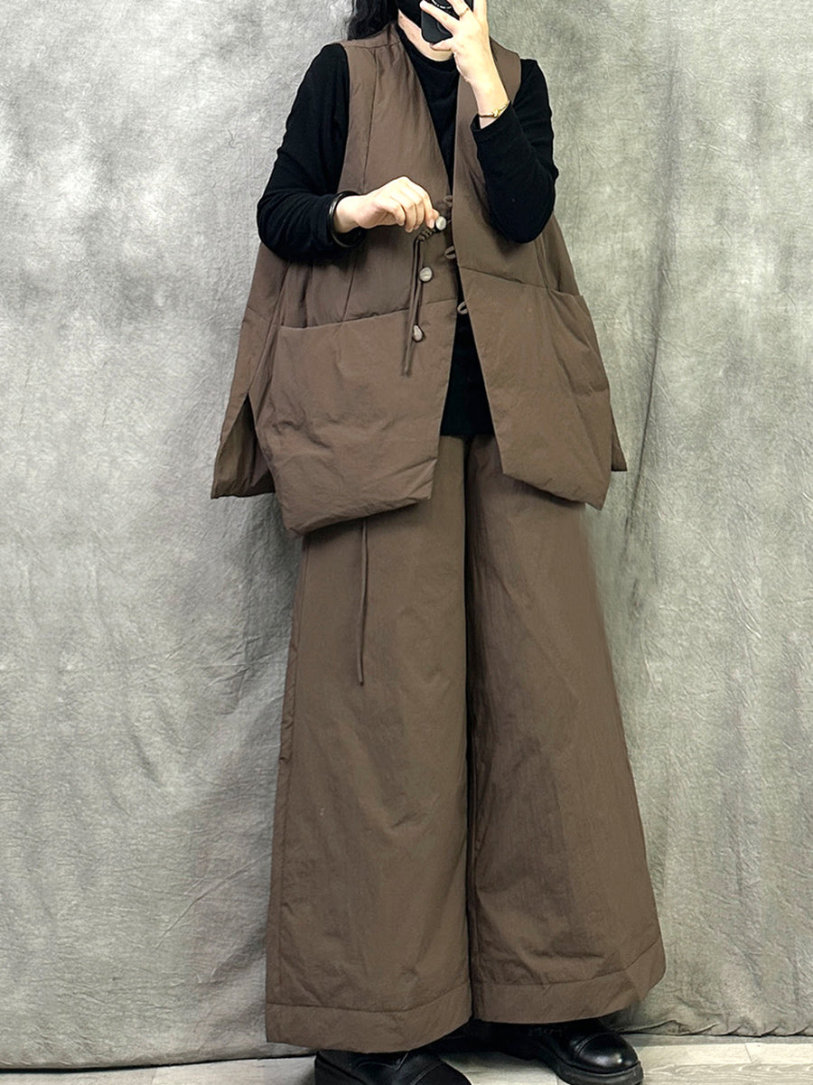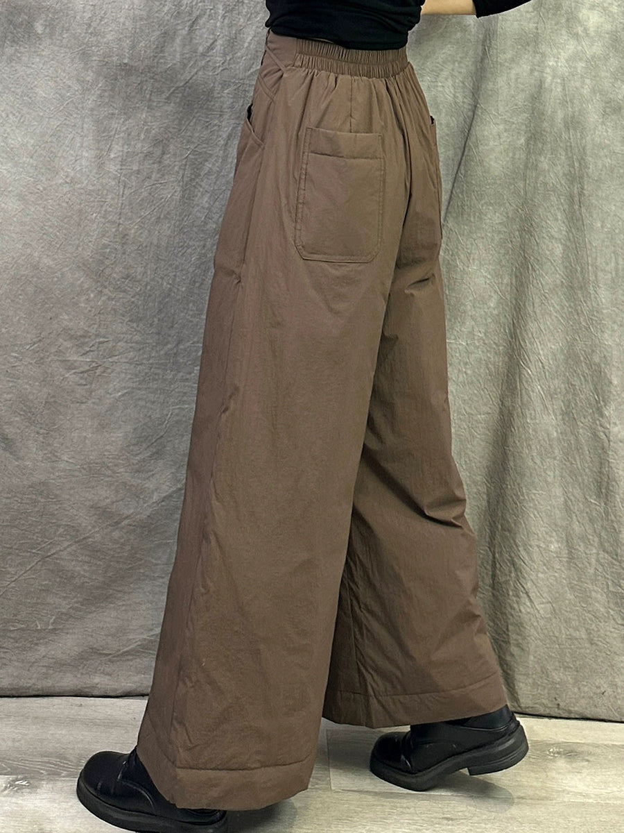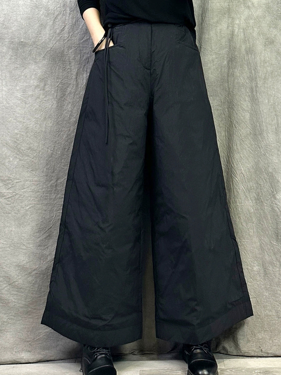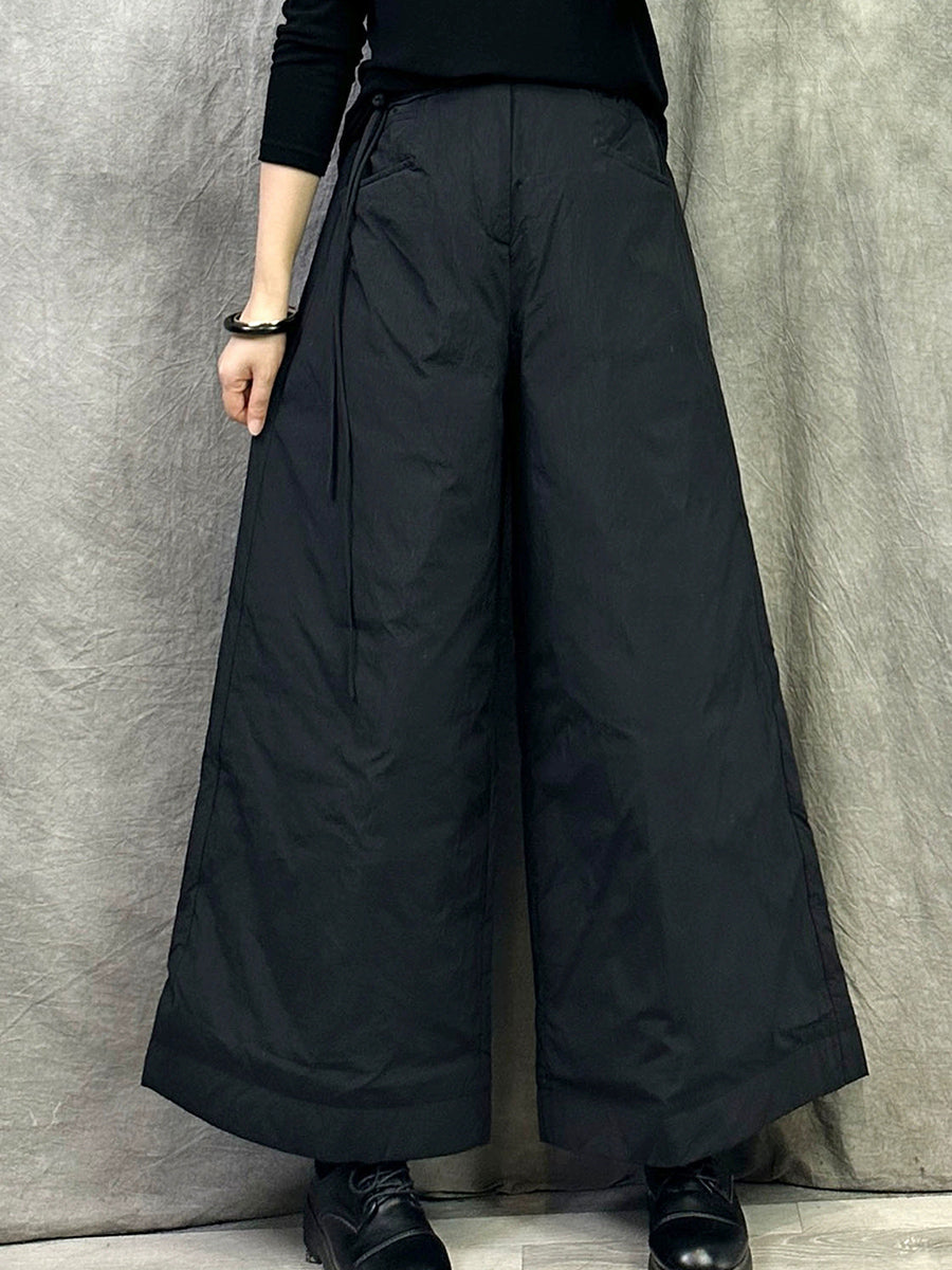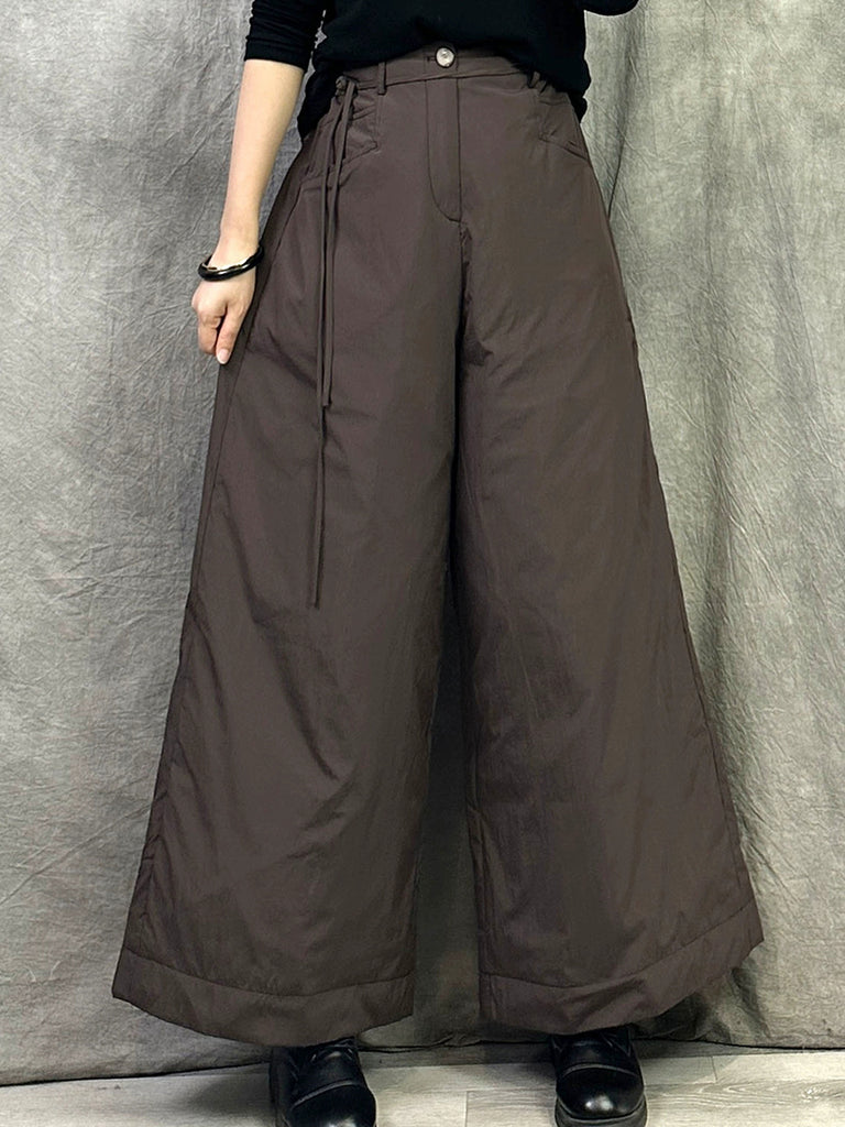 Calça feminina casual de inverno, cor lisa, com enchimento de plumas e pernas largas.