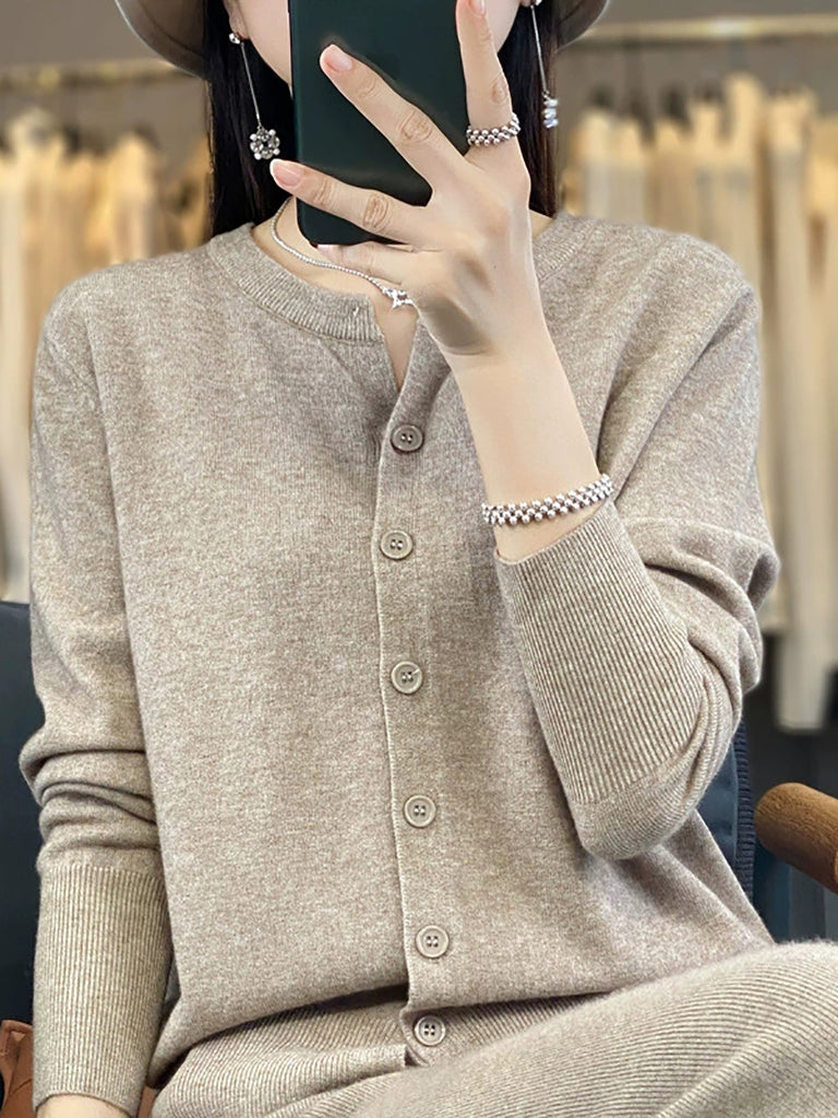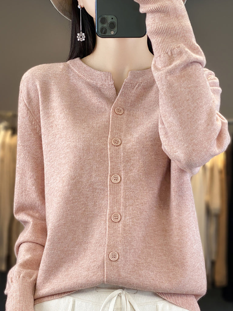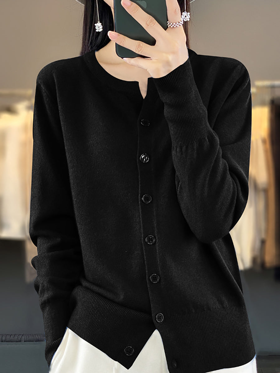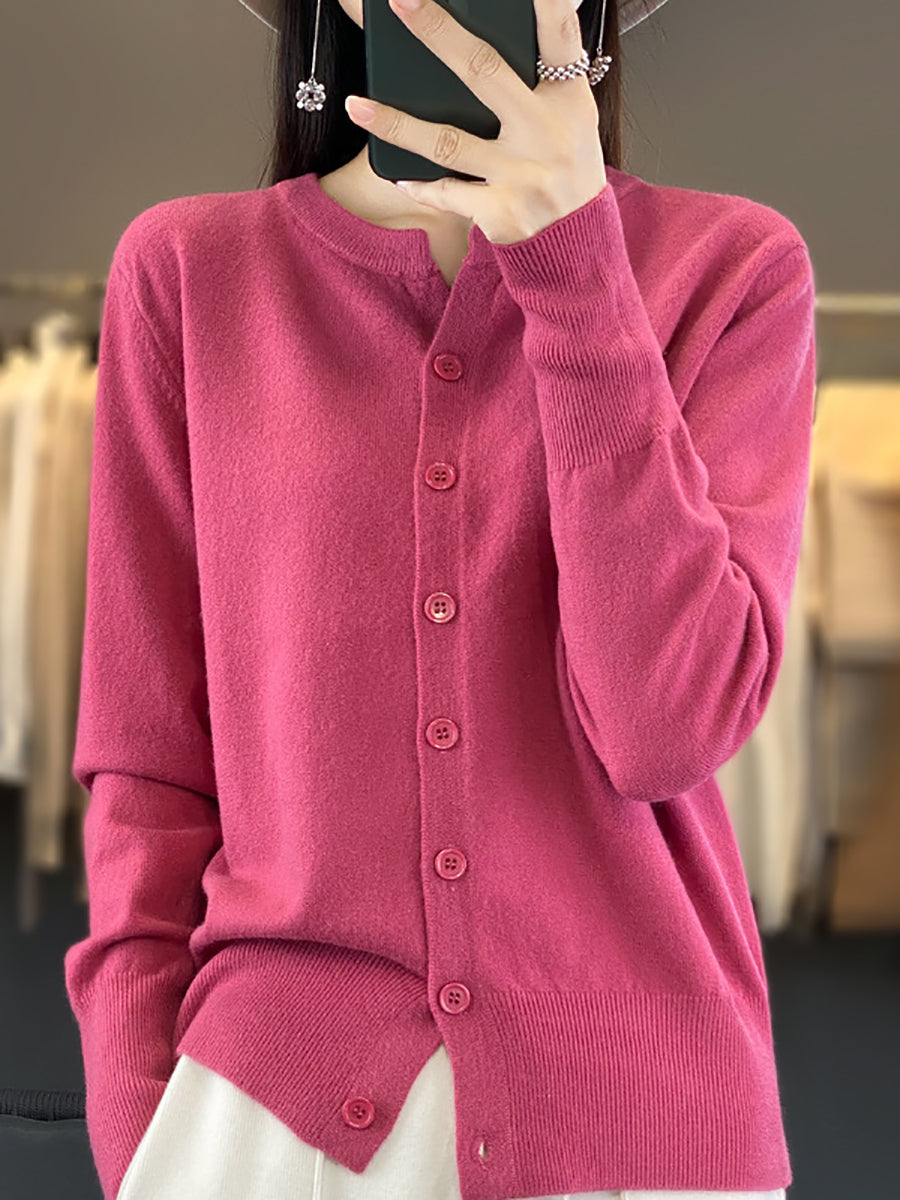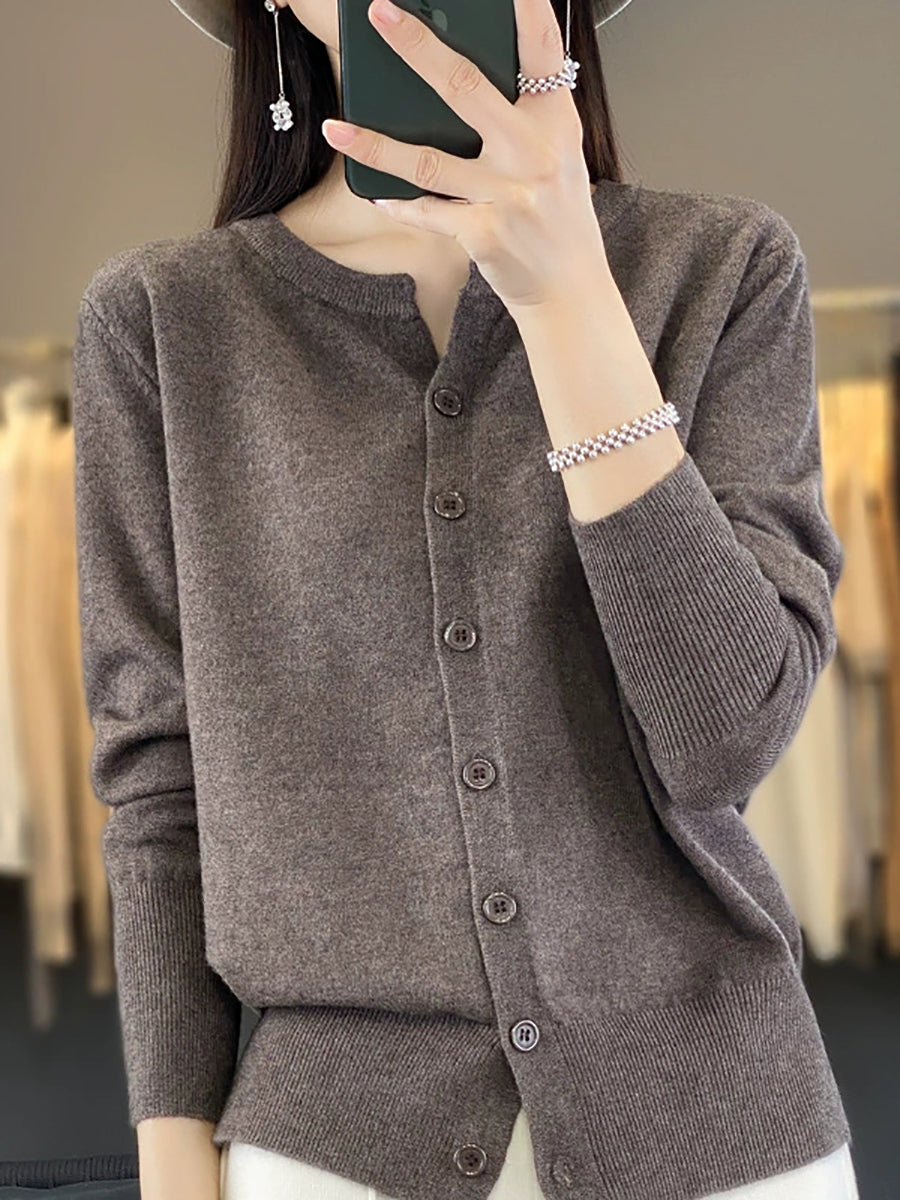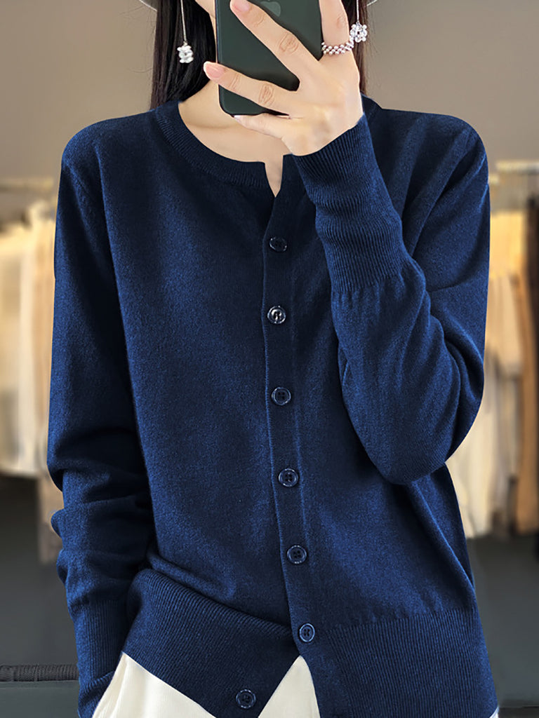 Suéter feminino de inverno casual em tricô, cor lisa, gola redonda.