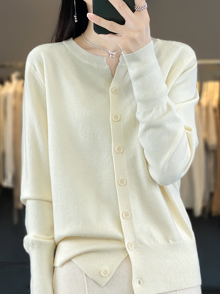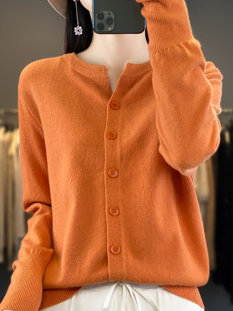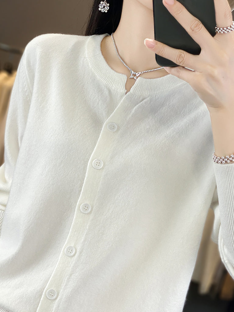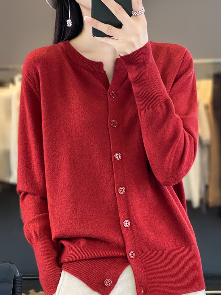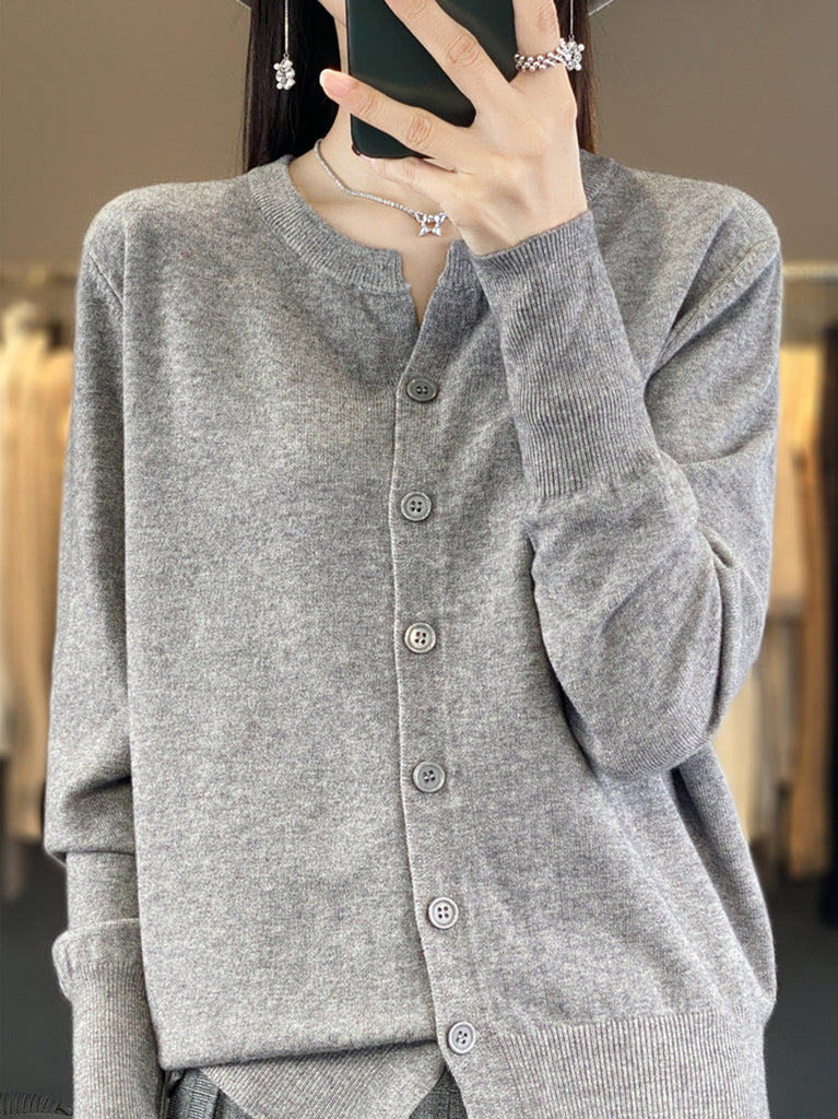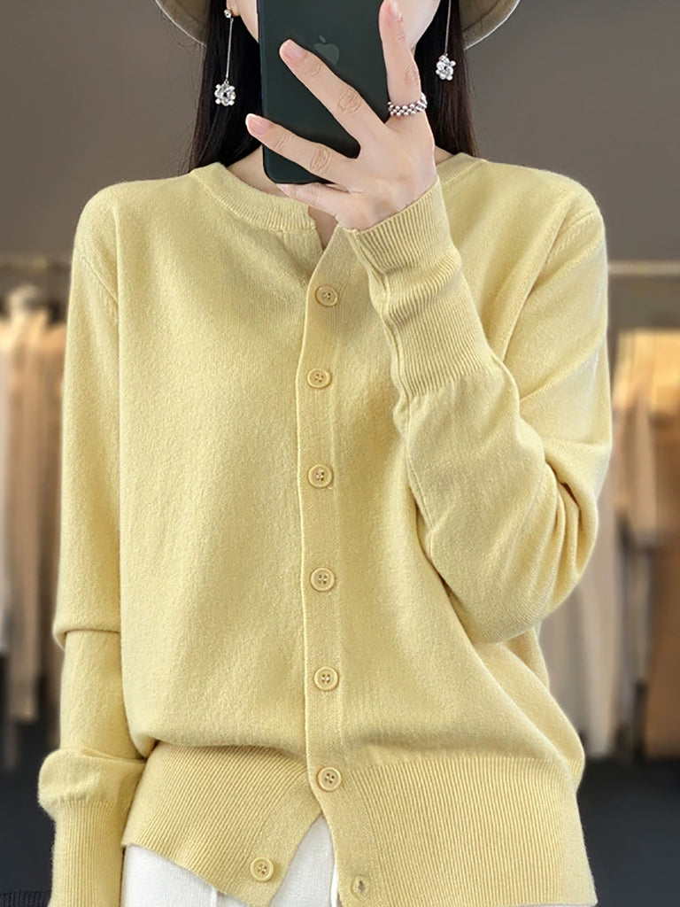 Suéter feminino de inverno casual em tricô, cor lisa, gola redonda.