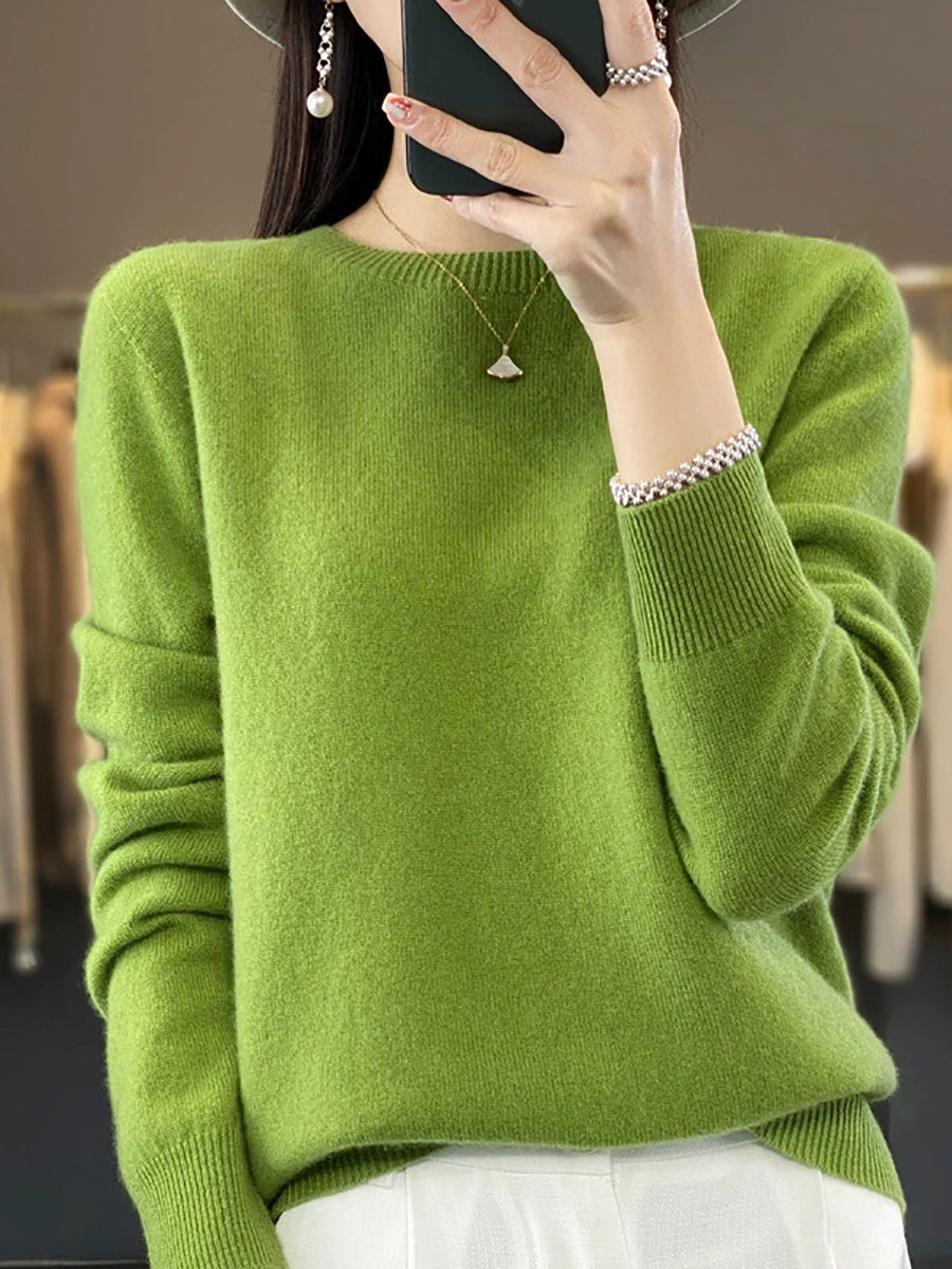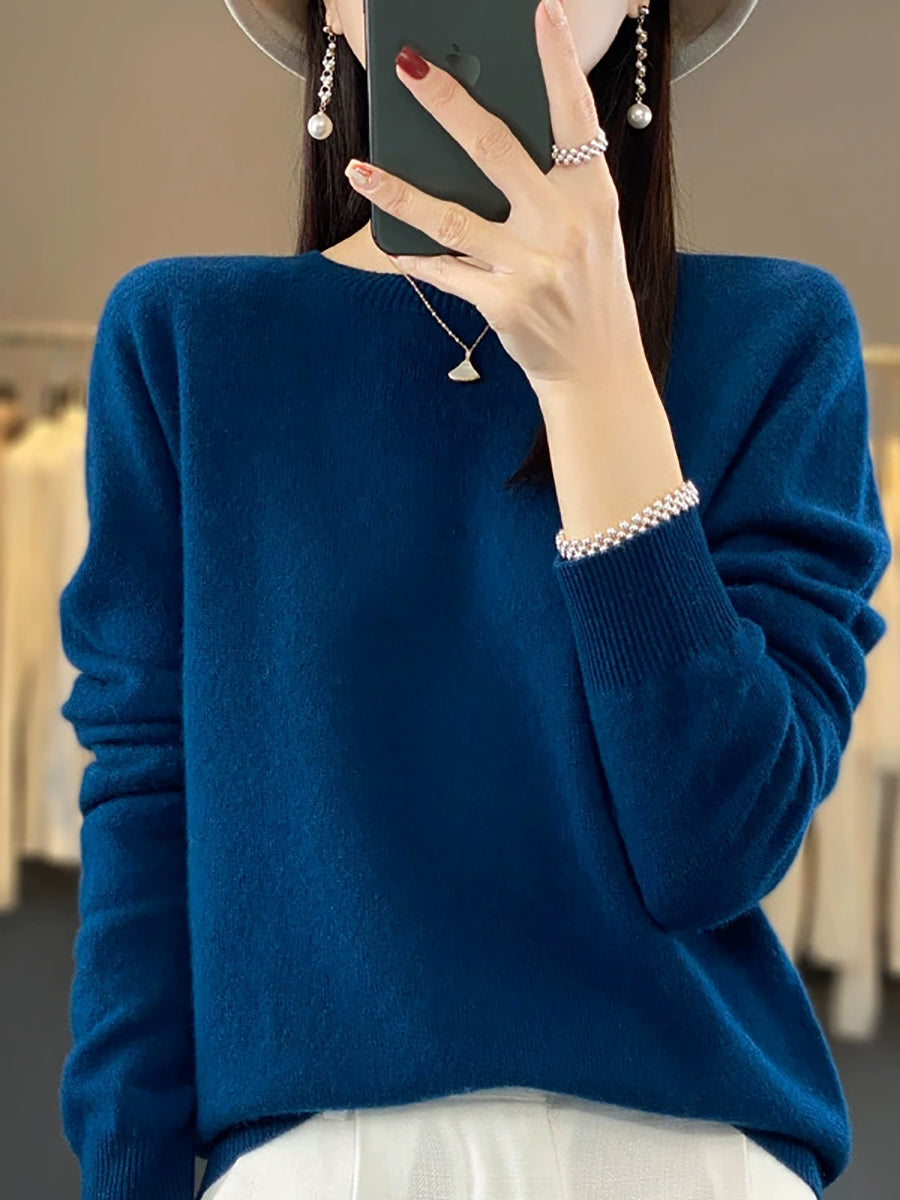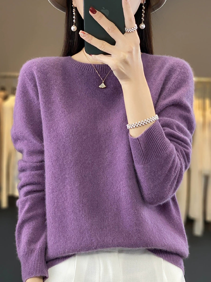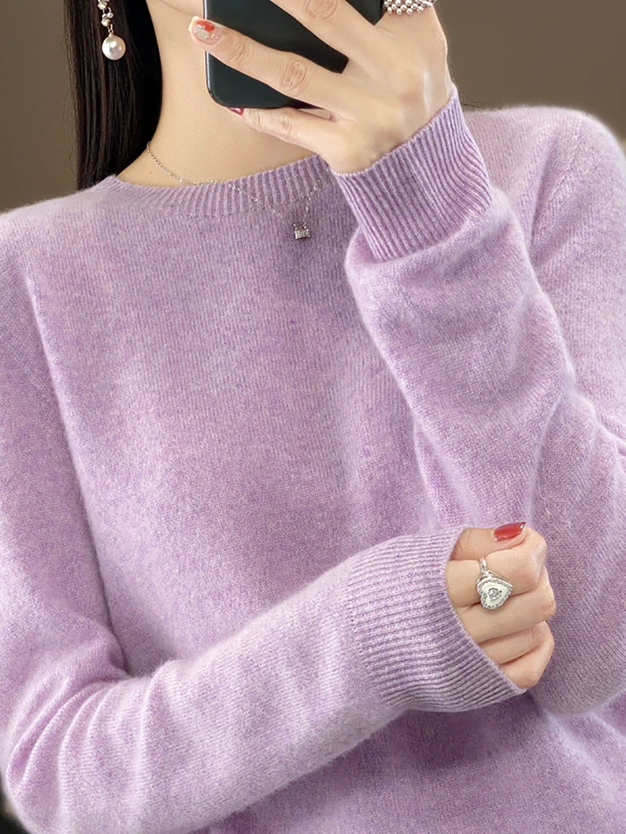 Suéter feminino de inverno casual, cor lisa, gola redonda, em tricô.