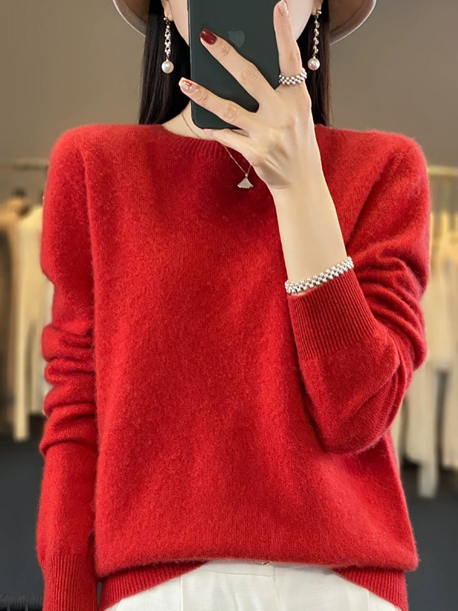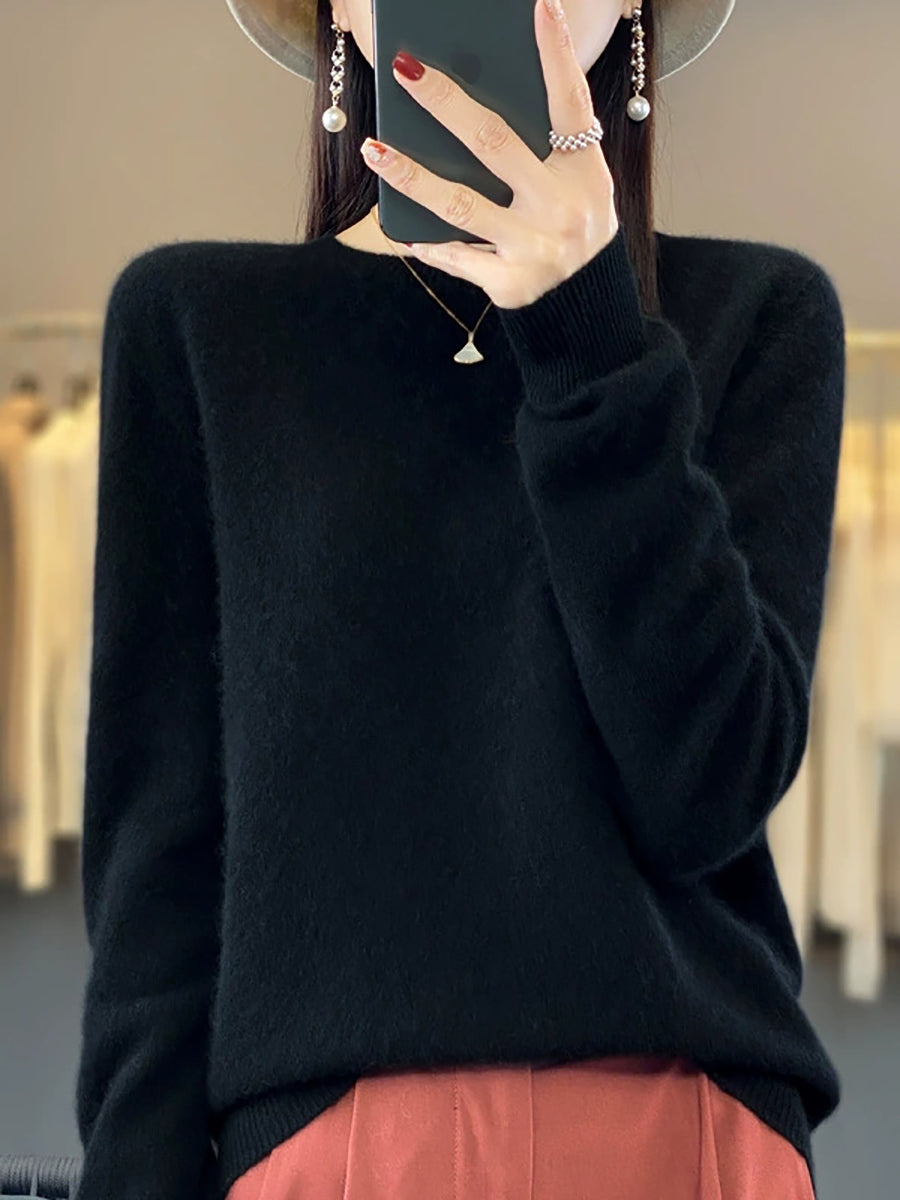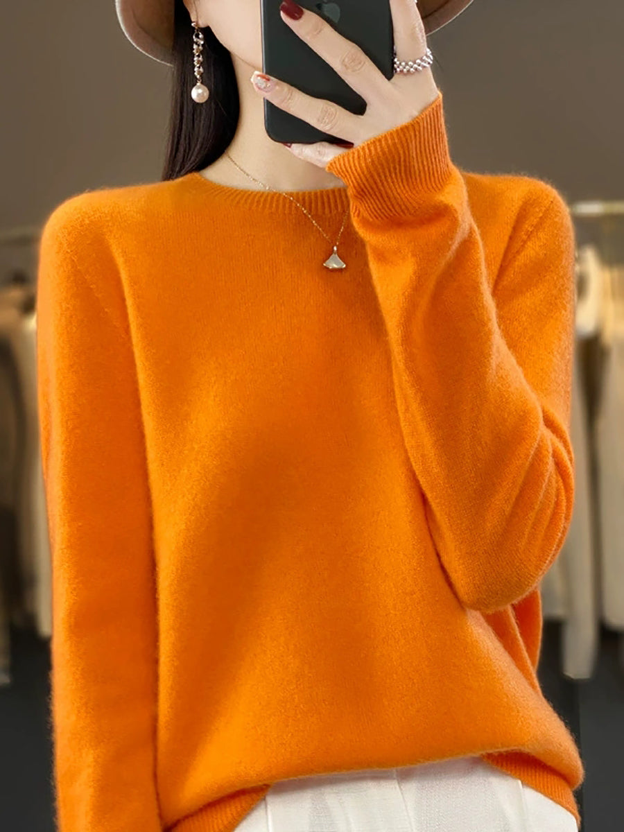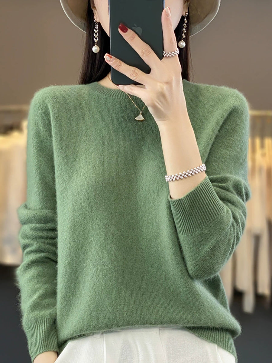 Suéter feminino de inverno casual, cor lisa, gola redonda, em tricô.