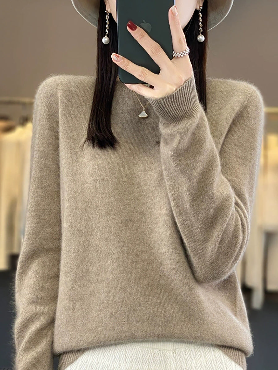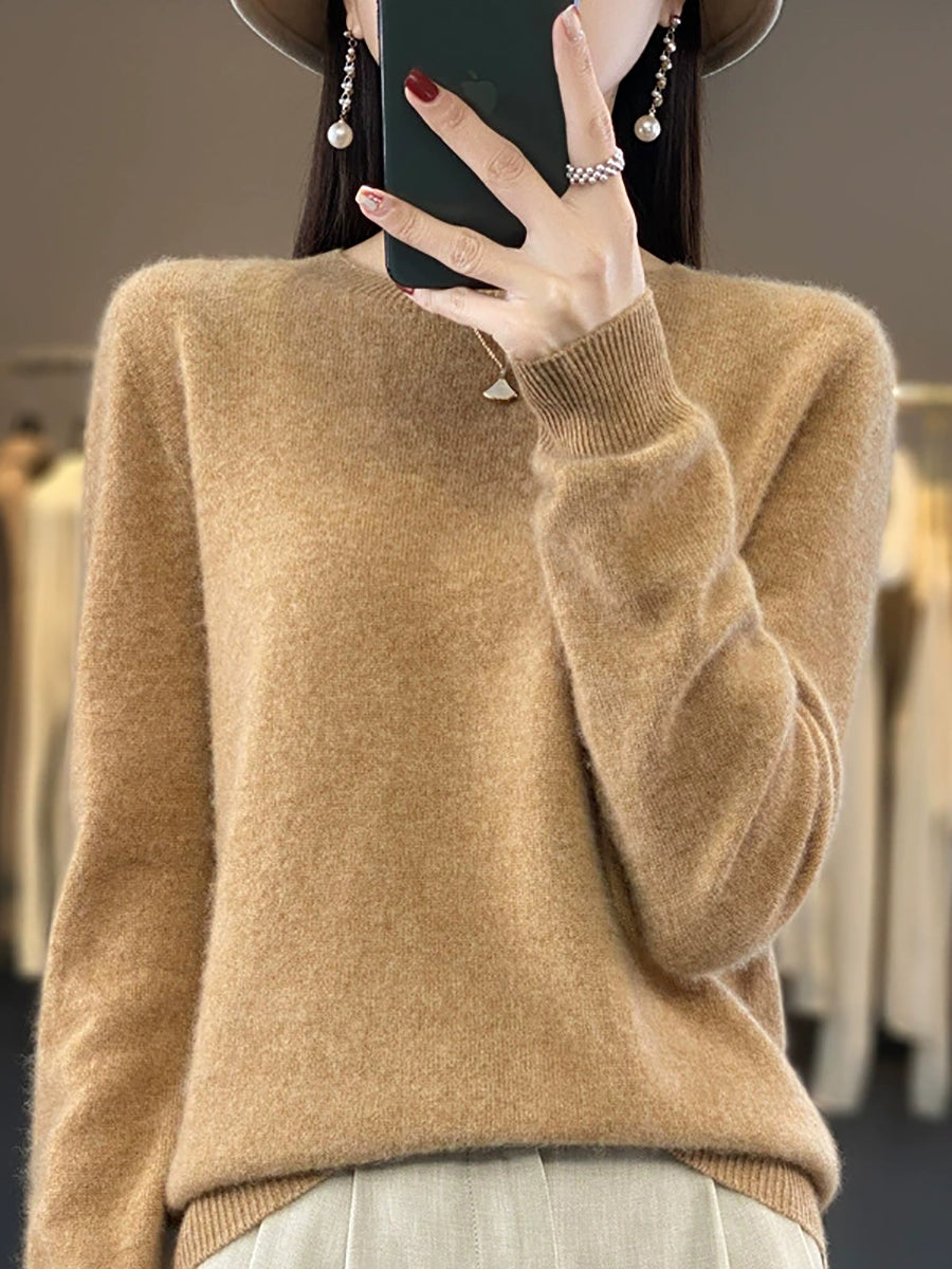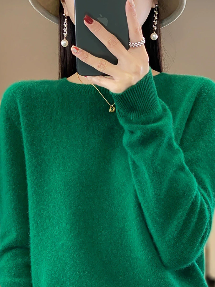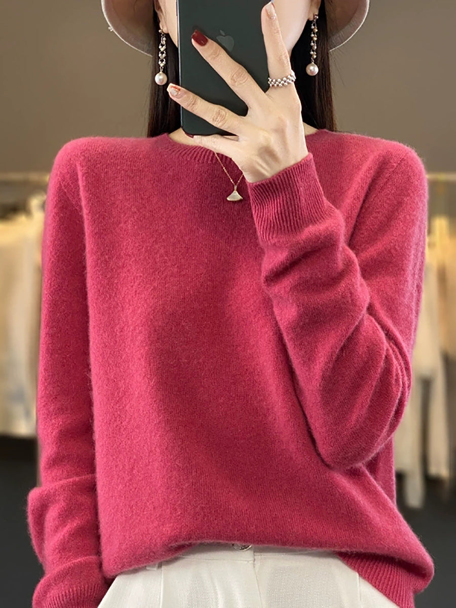Suéter feminino de inverno casual, cor lisa, gola redonda, em tricô.
