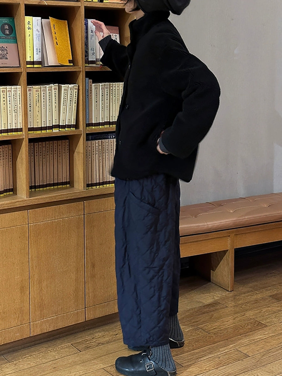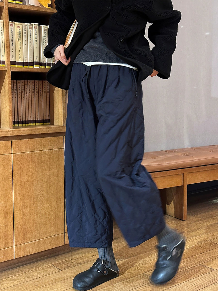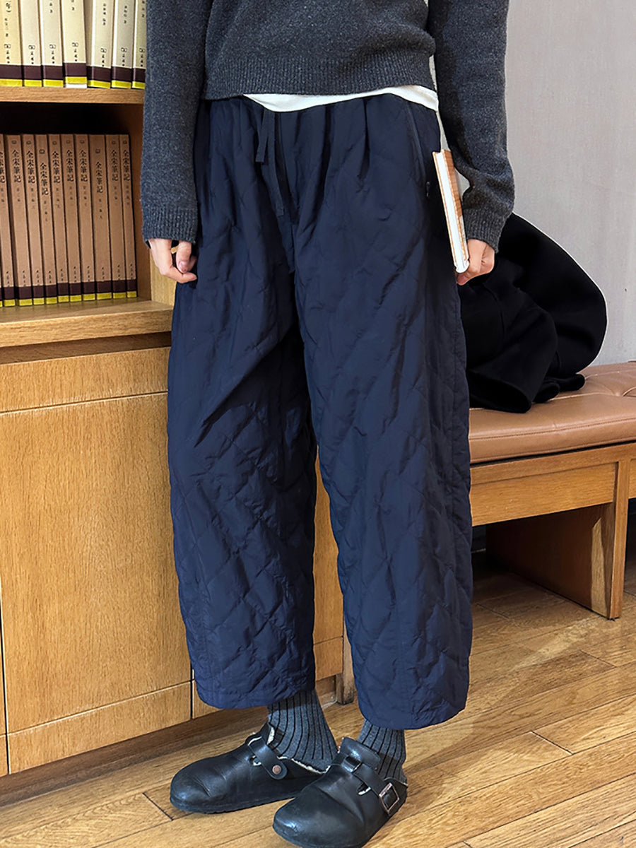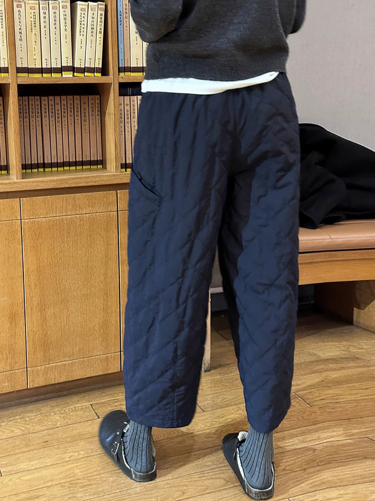 Calça Harem Feminina Casual de Inverno em Cor Lisa com Acolchoamento