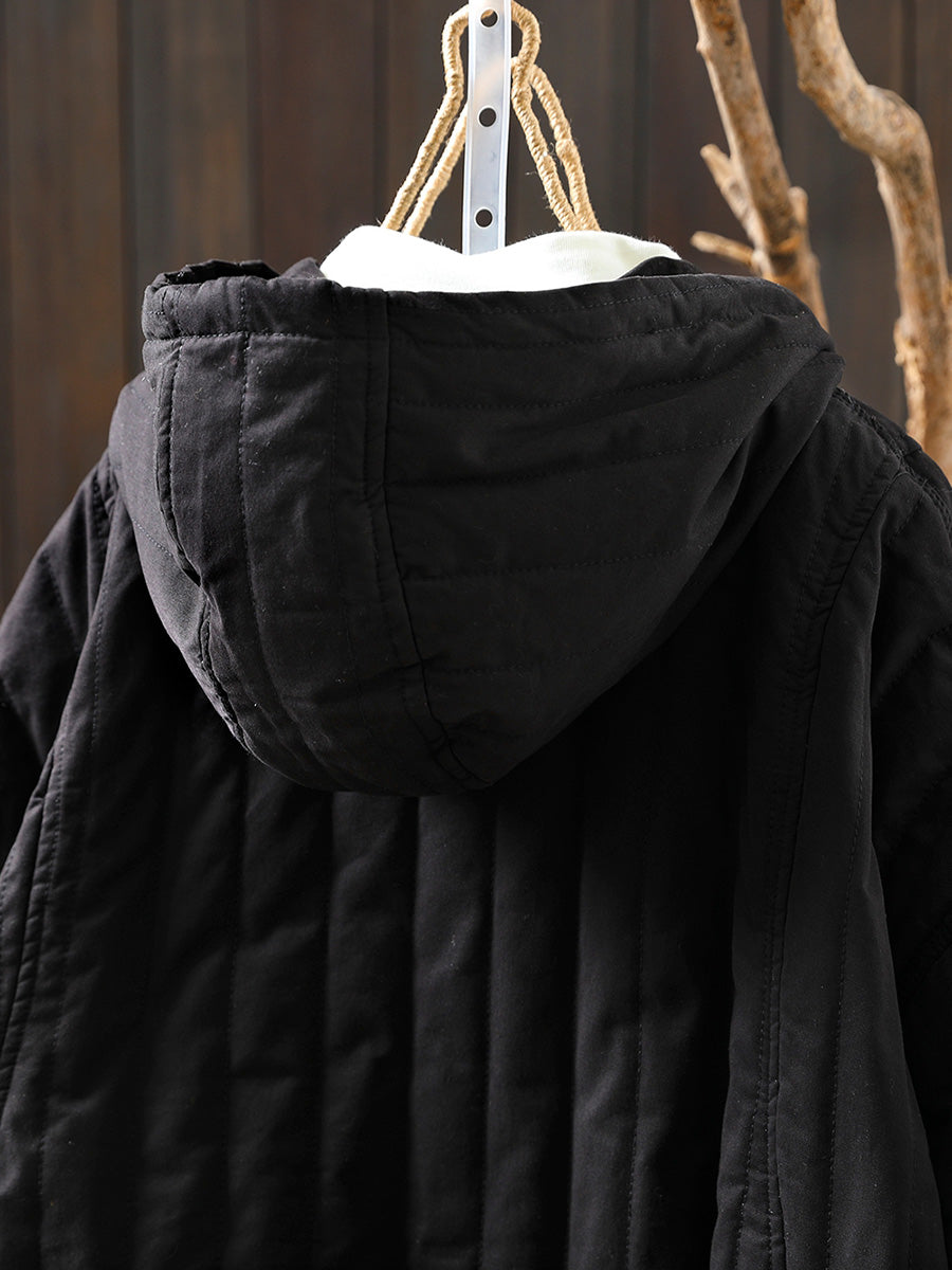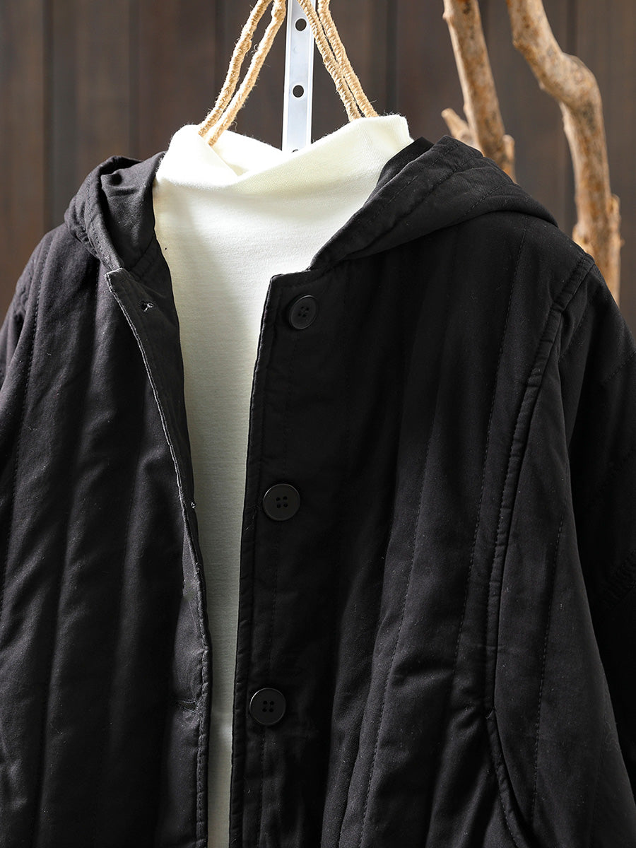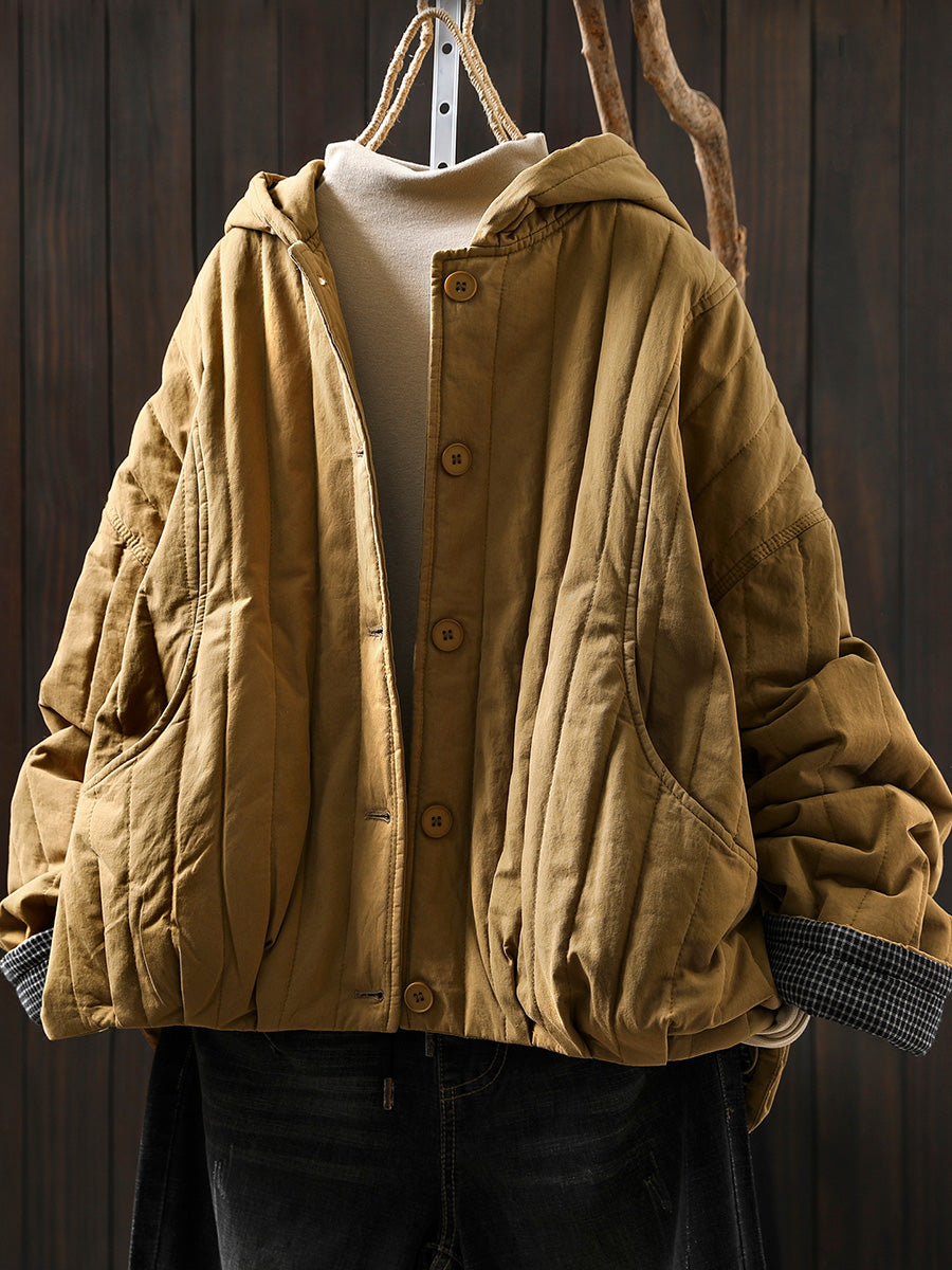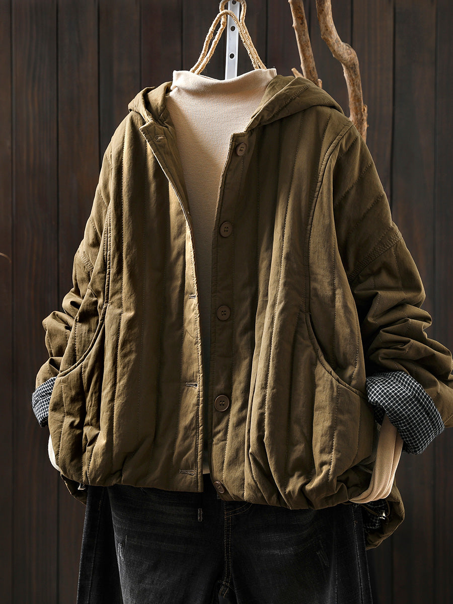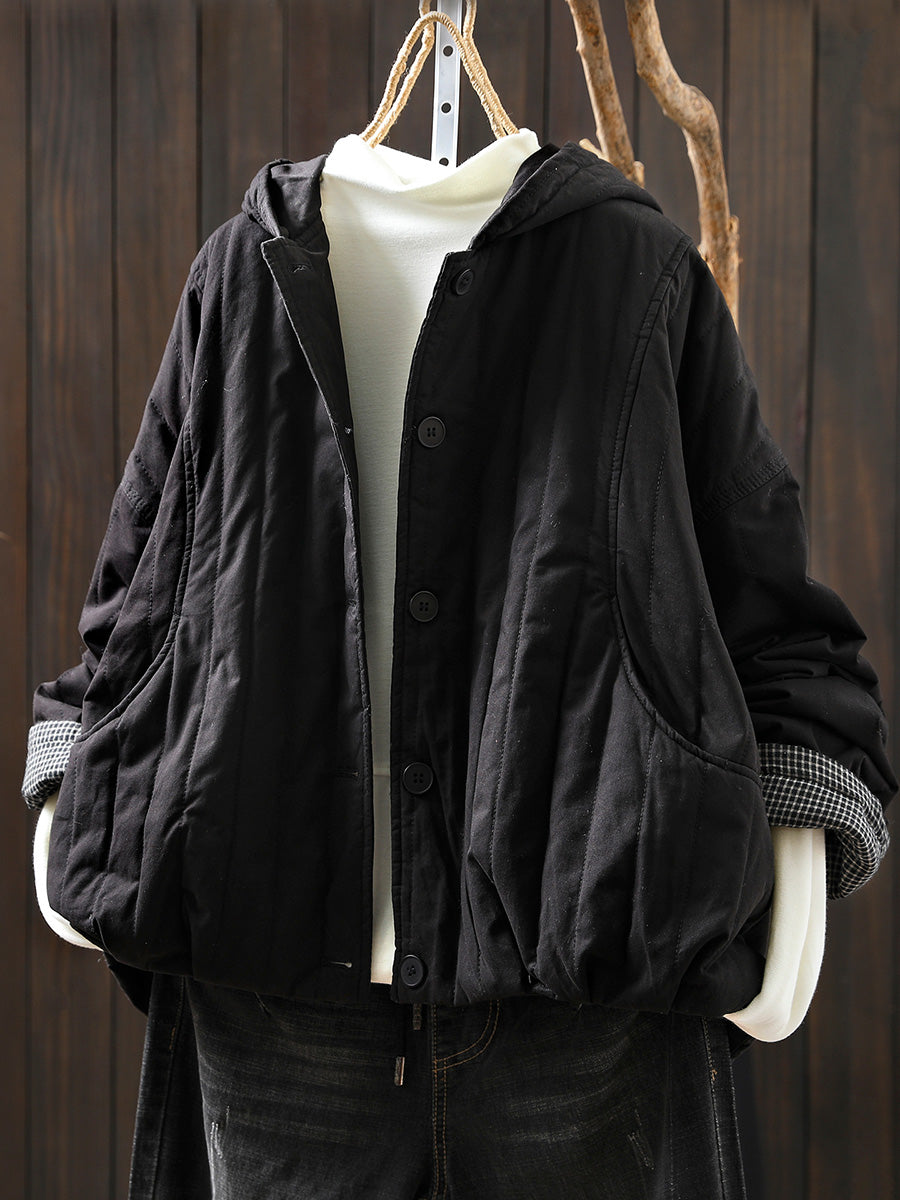 Casaco feminino de inverno casual com capuz e acolchoado em cor lisa.