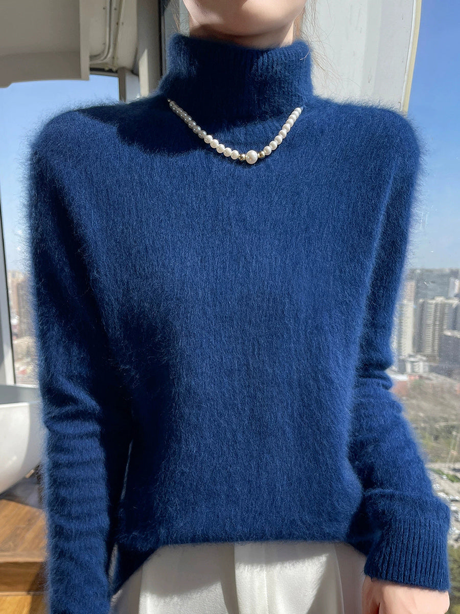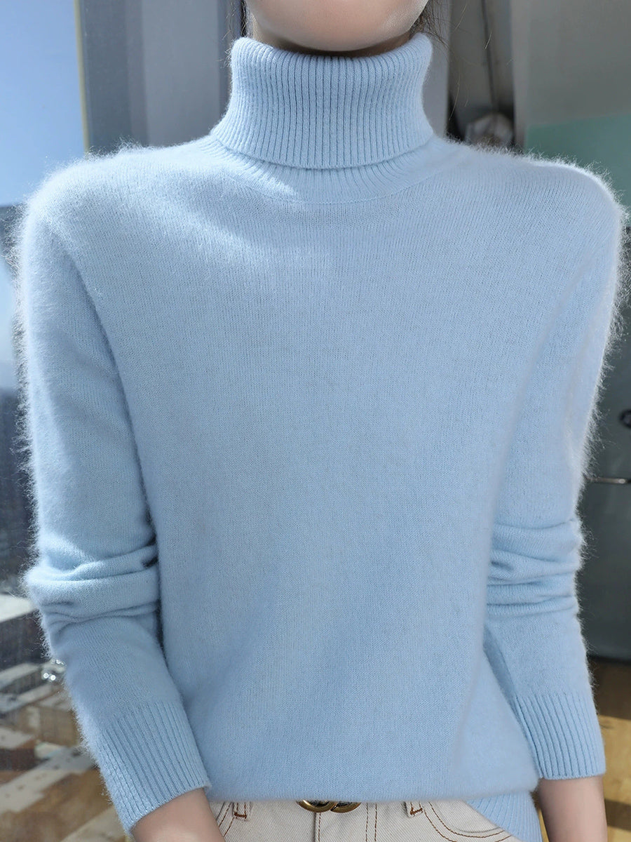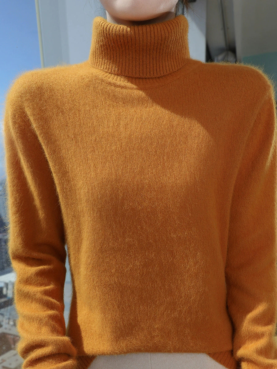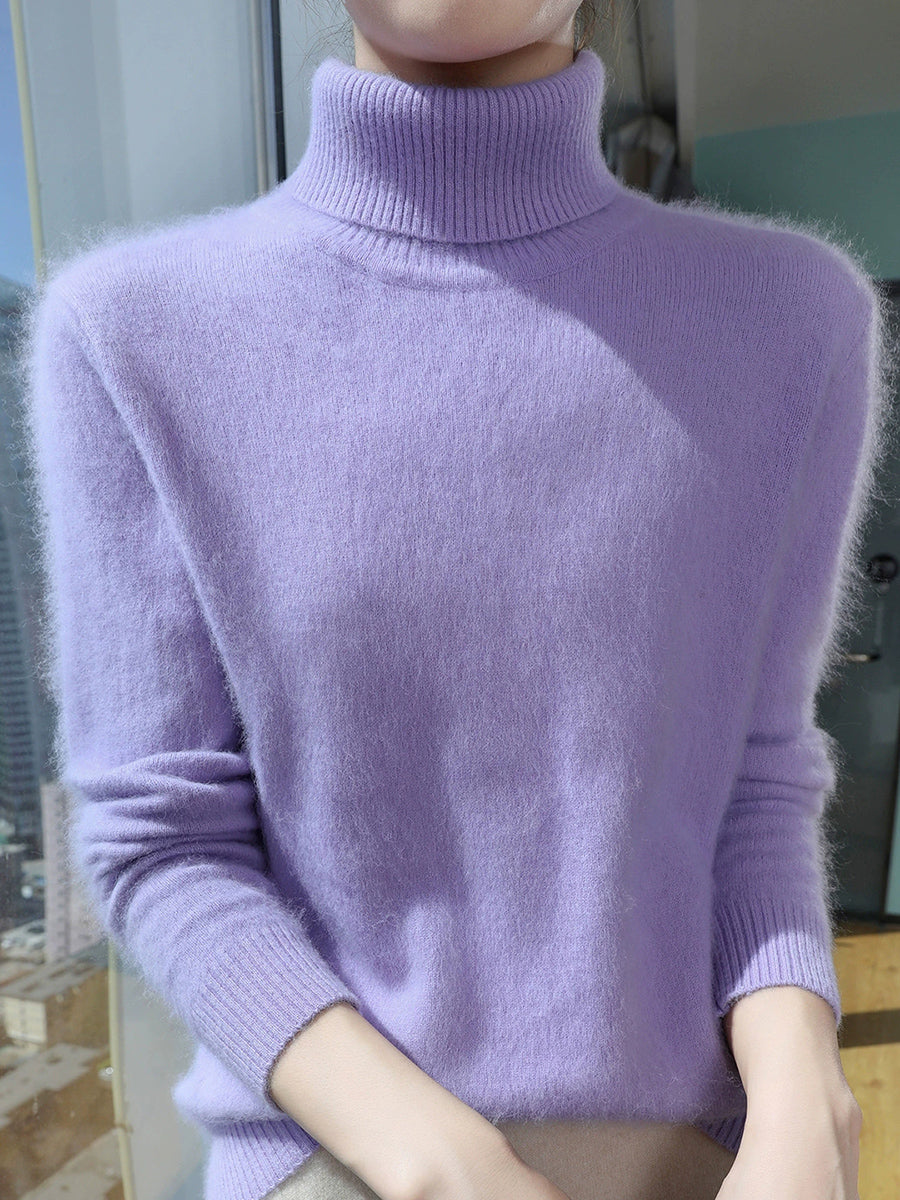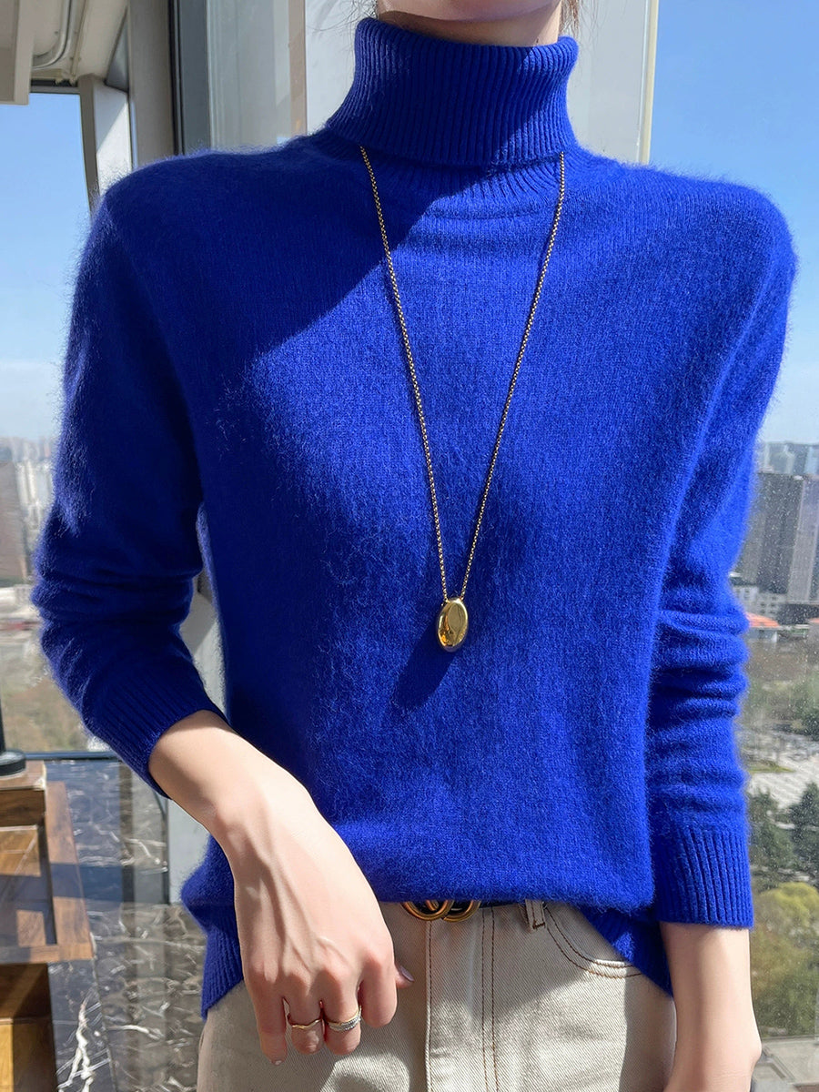 Suéter feminino de gola alta casual de cor lisa para o inverno