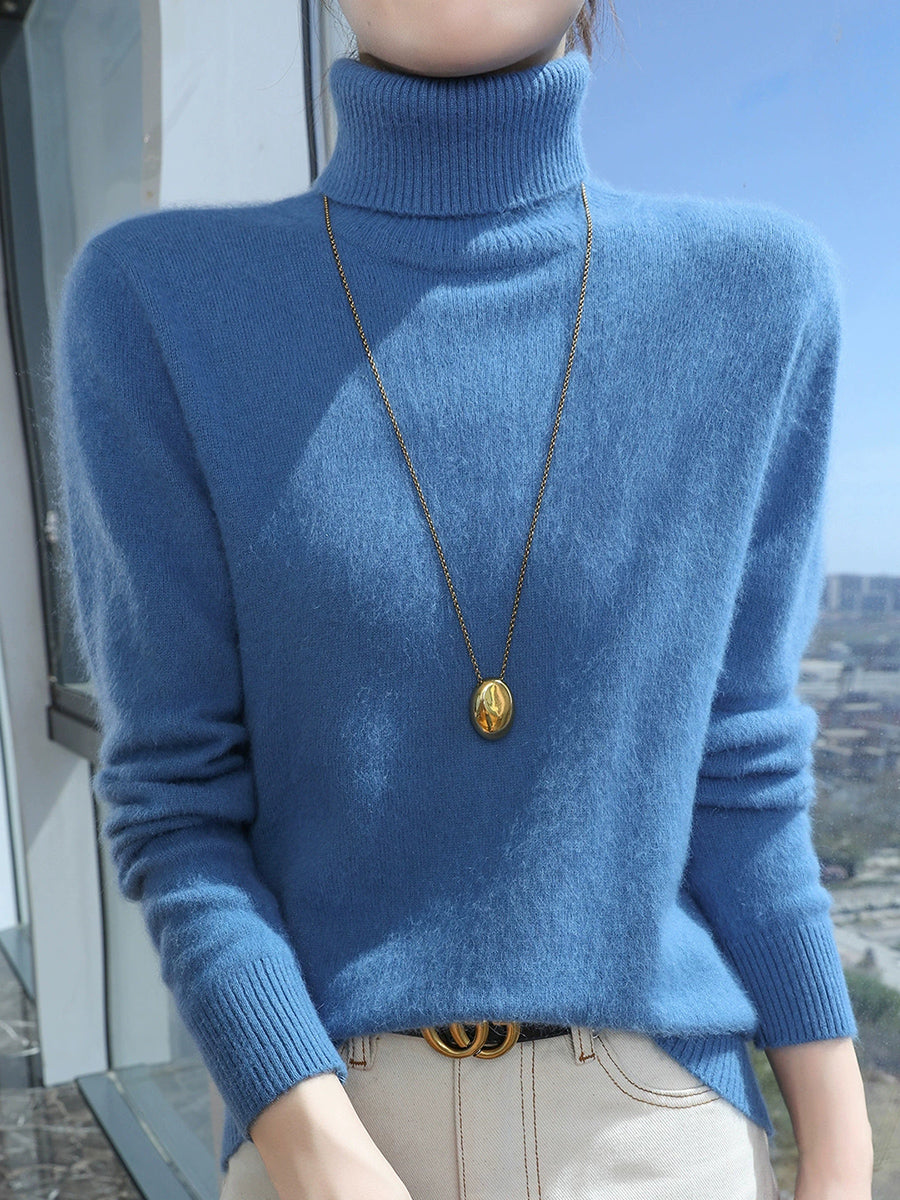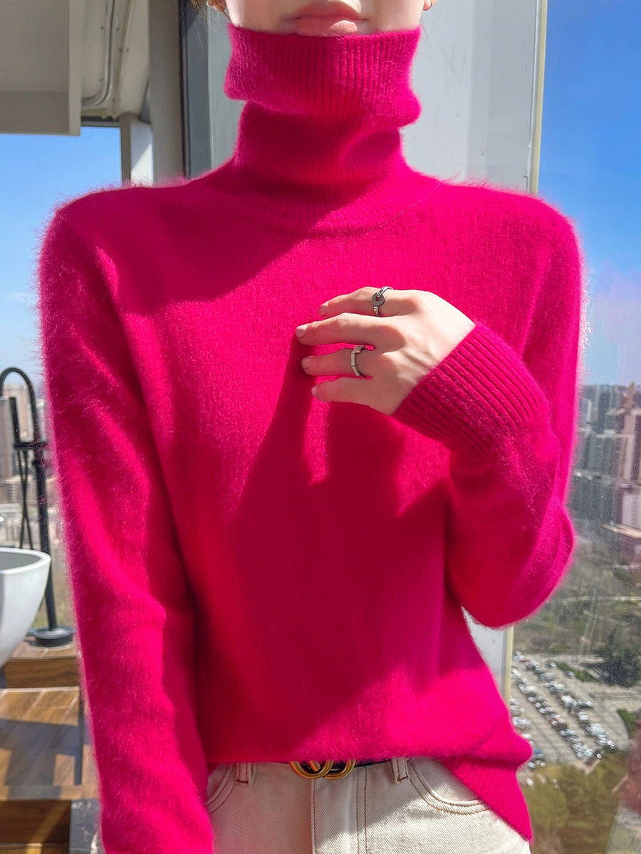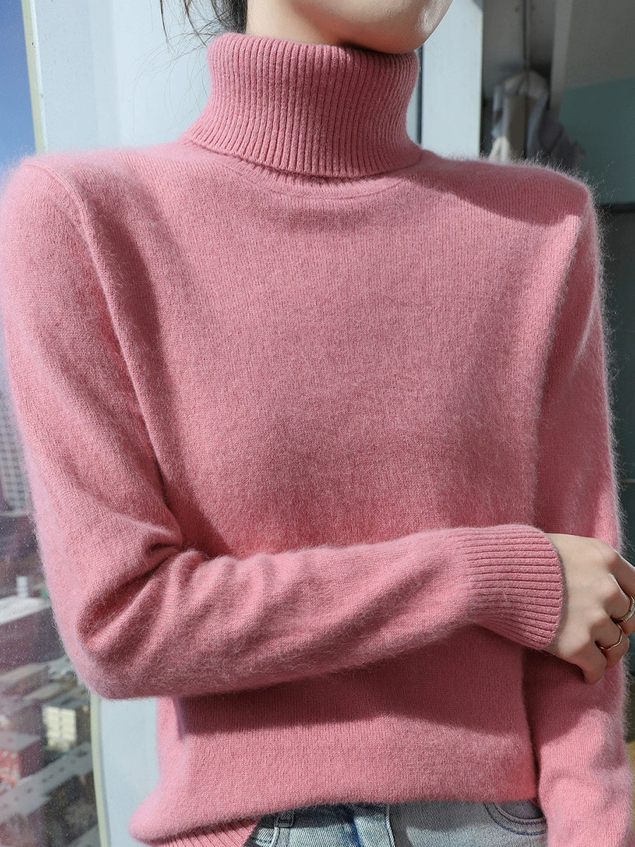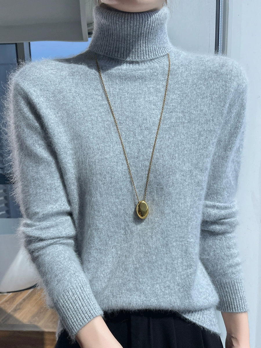 Suéter feminino de gola alta casual de cor lisa para o inverno
