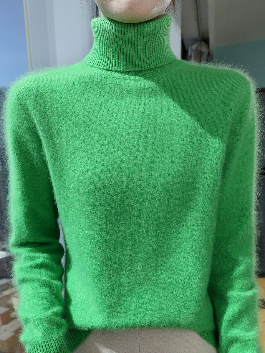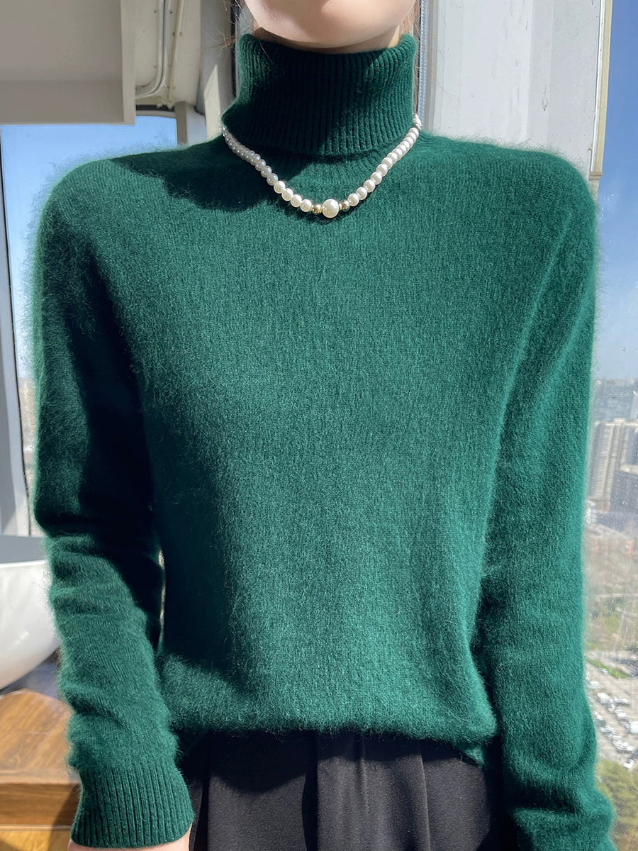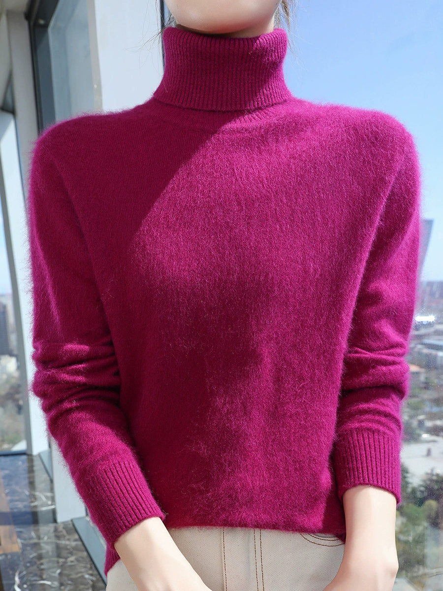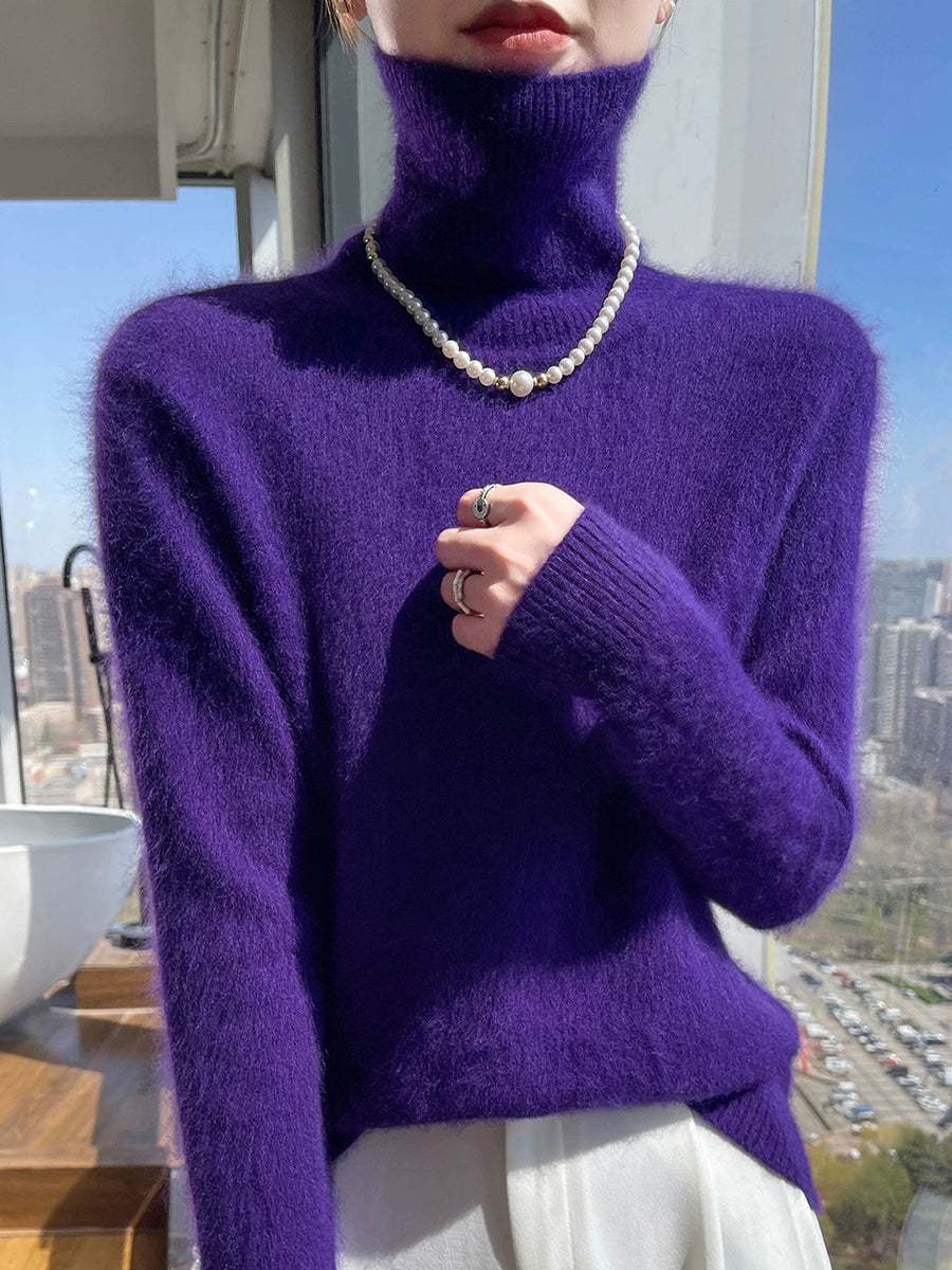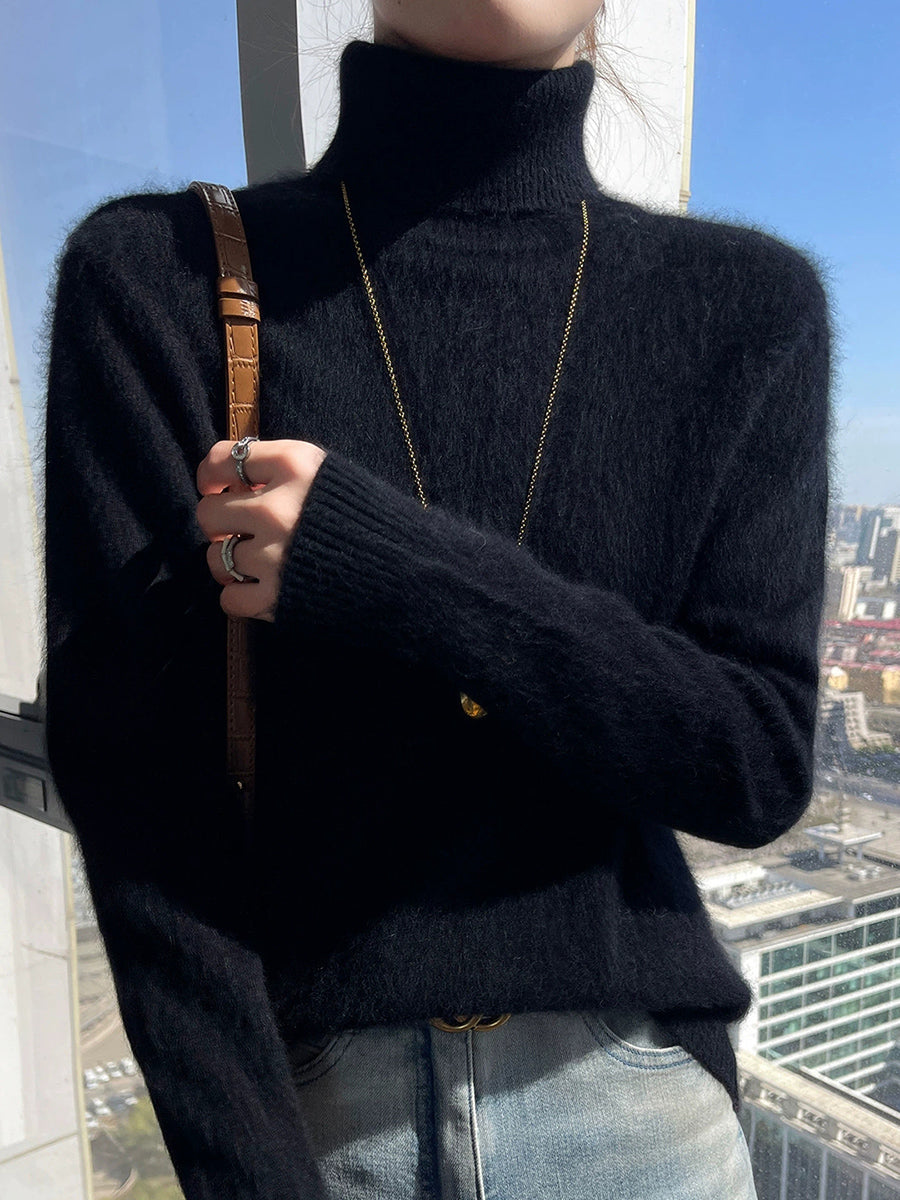Suéter feminino de gola alta casual de cor lisa para o inverno