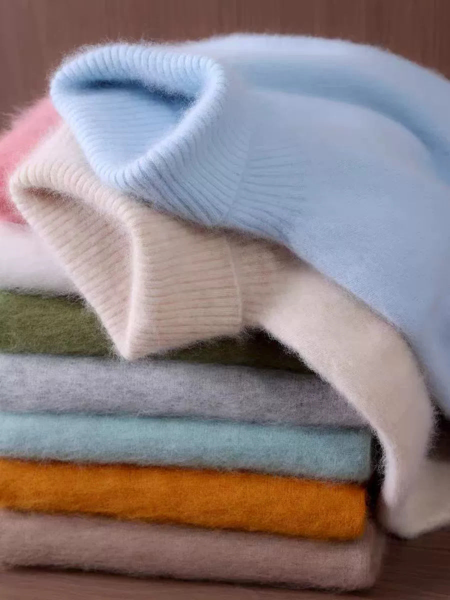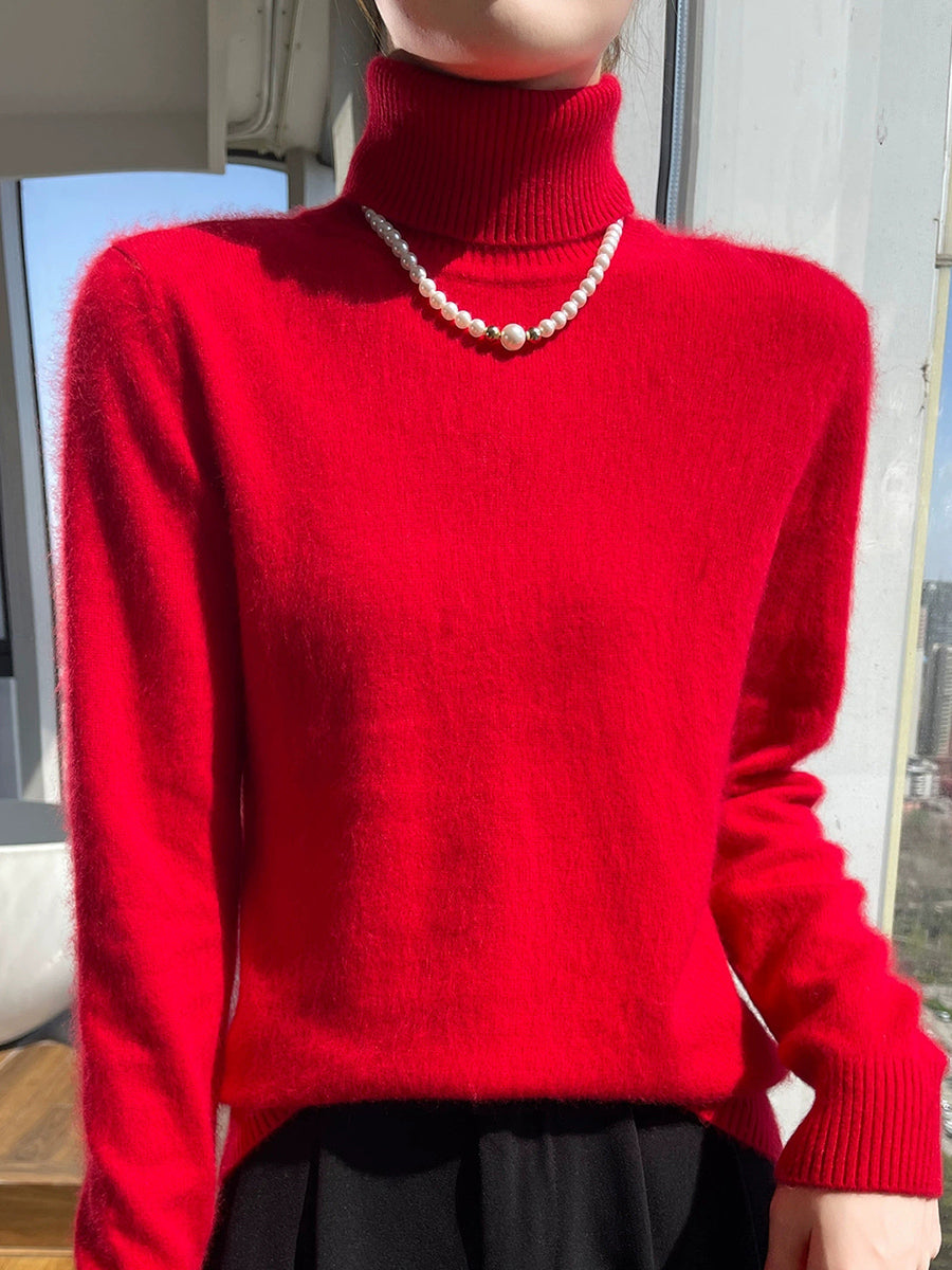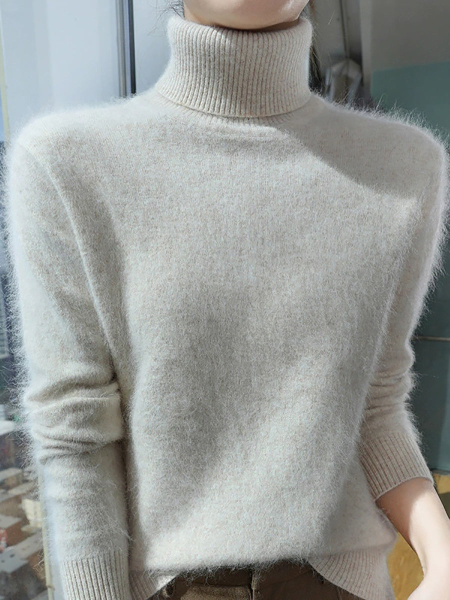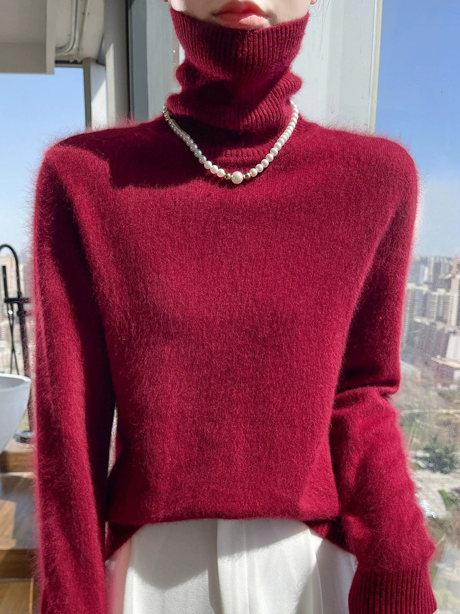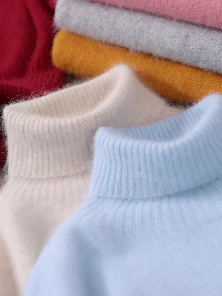 Suéter feminino de gola alta casual de cor lisa para o inverno