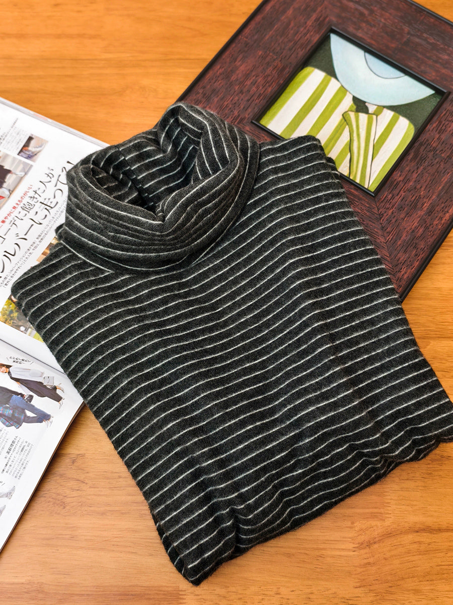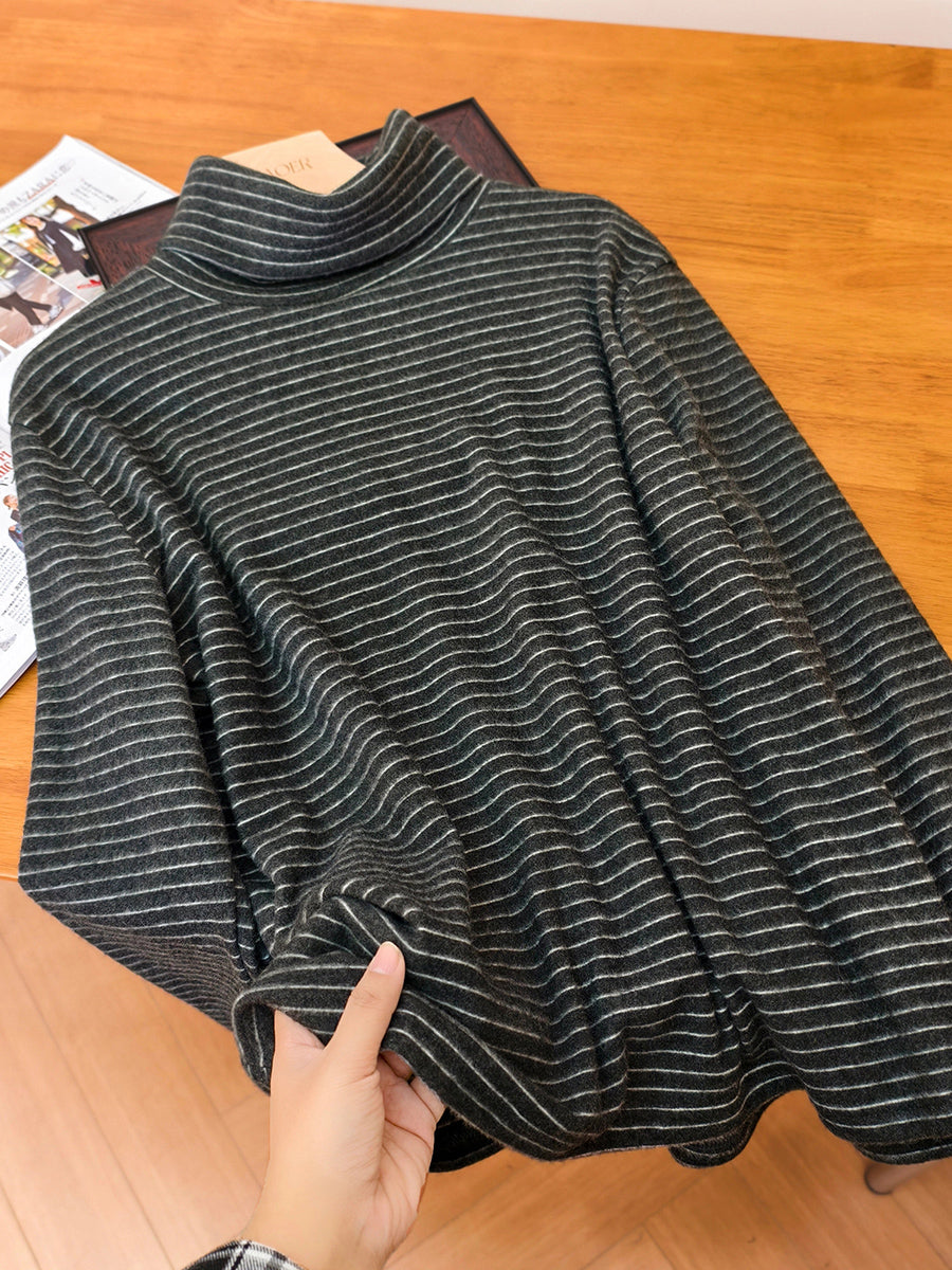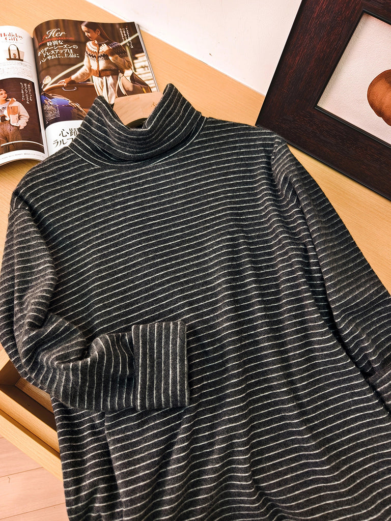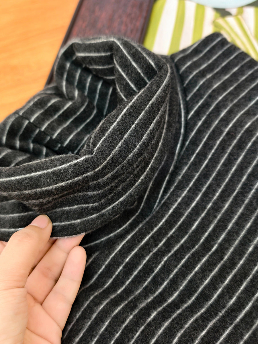 Confeccionada com uma mistura premium de 62,5% algodão, 33,5% poliéster e 4% elastano, esta peça essencial para o inverno oferece conforto e durabilidade. O clássico padrão de listras combina perfeitamente com a gola alta refinada, enquanto as mangas compridas proporcionam cobertura completa. Com um design casual e descontraído, ela transita facilmente do outono ao inverno, tornando-se uma adição versátil a qualquer guarda-roupa sazonal.
