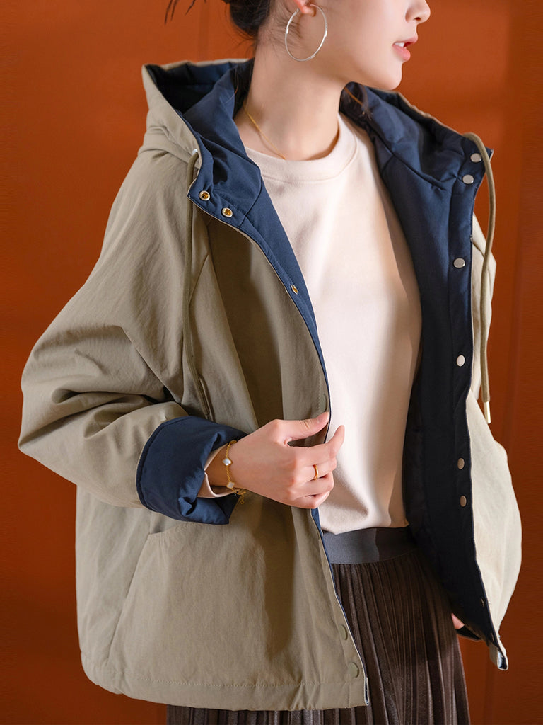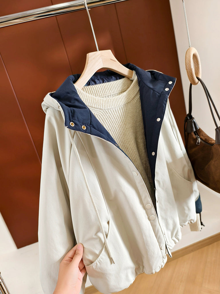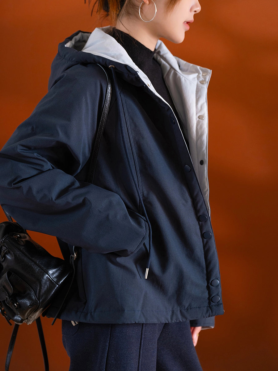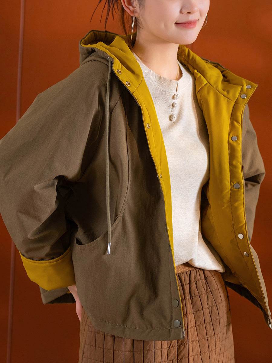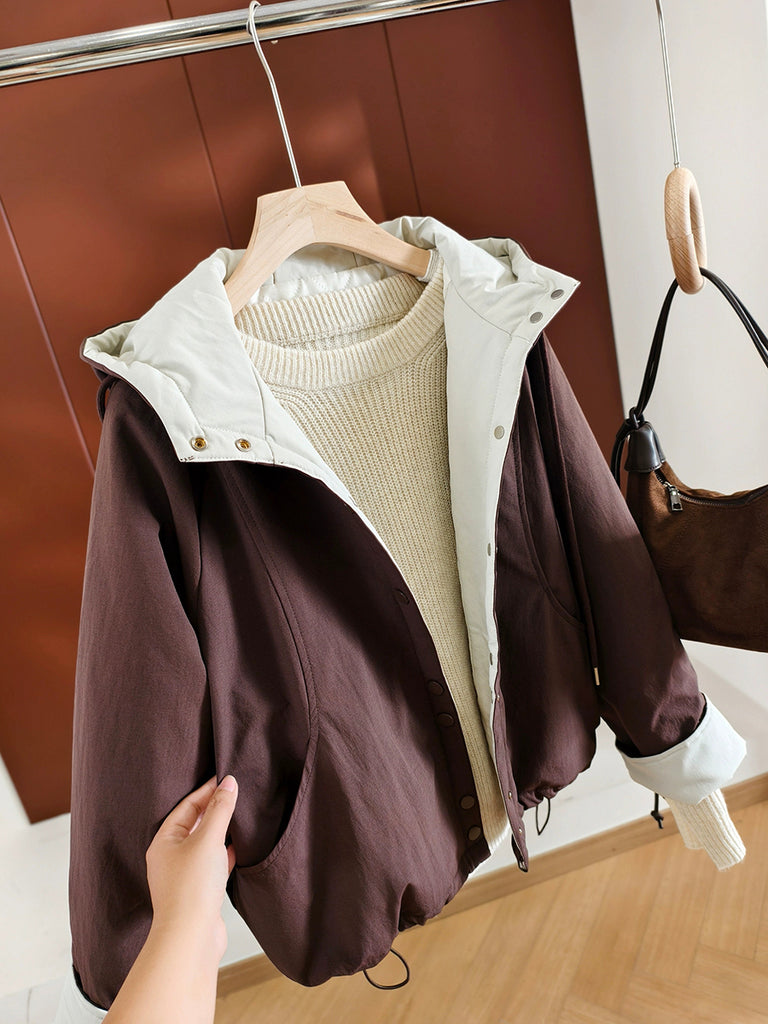 Casaco feminino de inverno com capuz acolchoado e blocos de cores