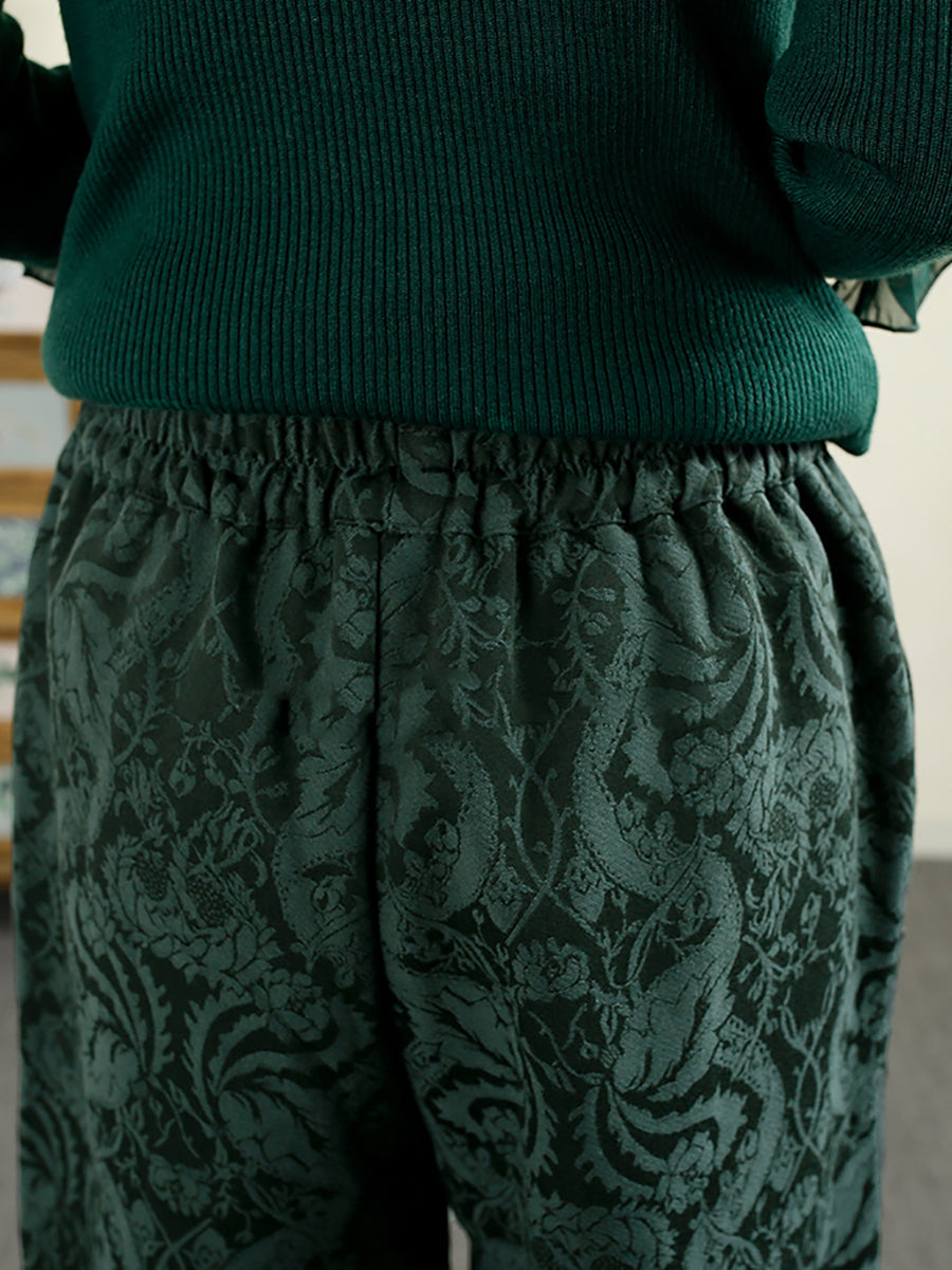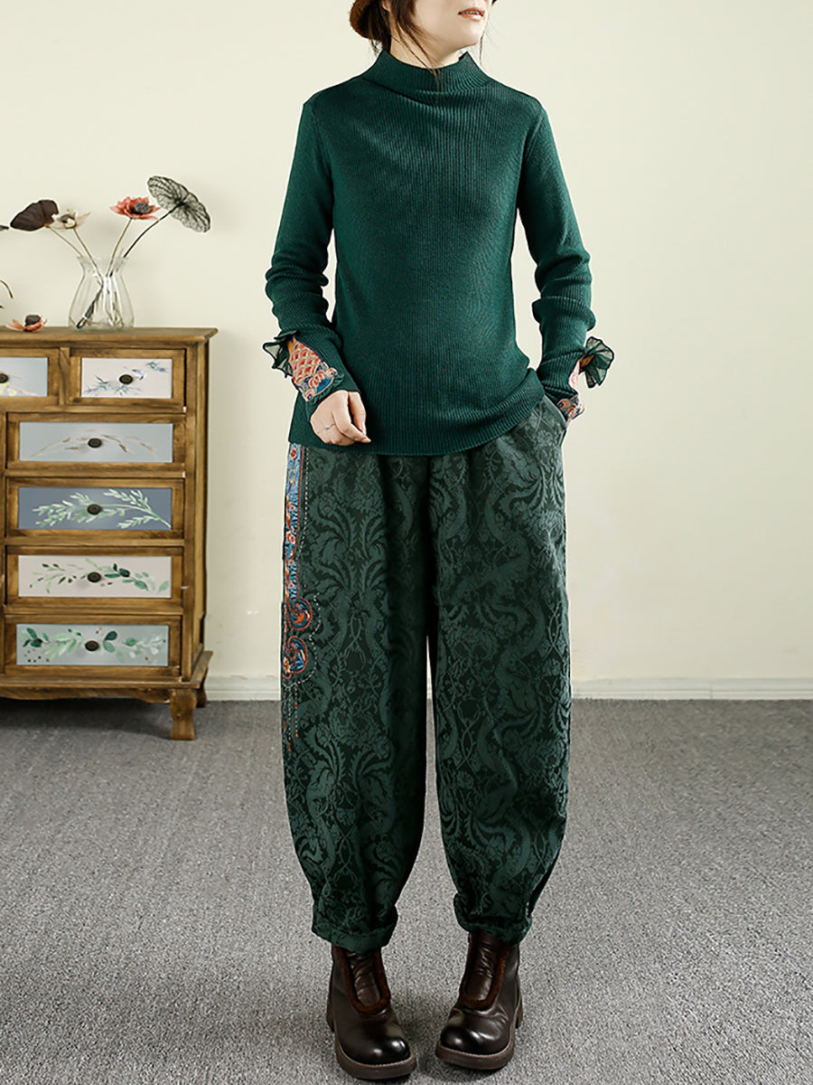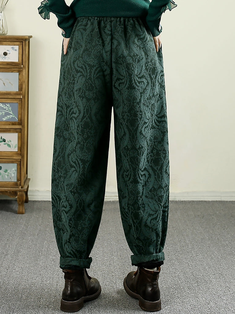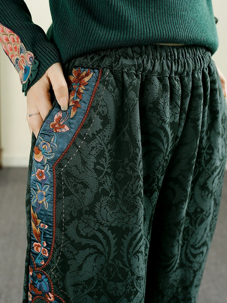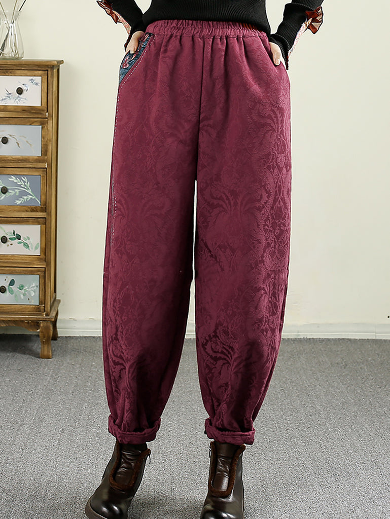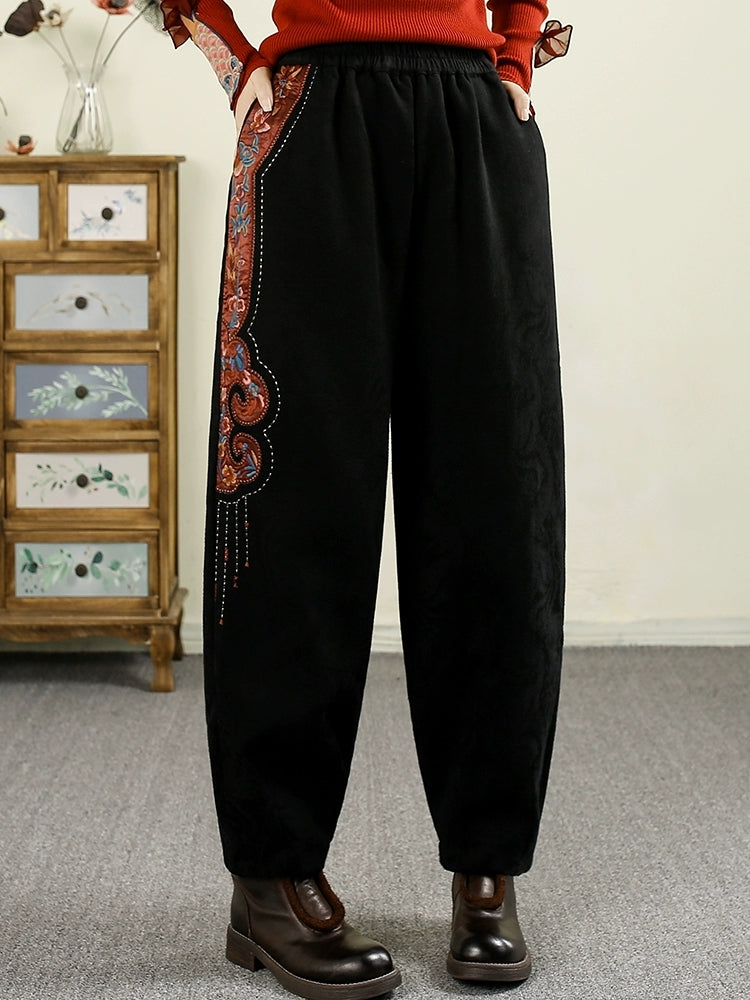 Calças Harem Femininas de Inverno com Bordado em Jacquard e Forro de Lã