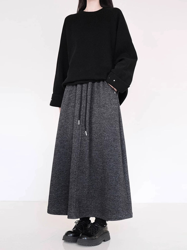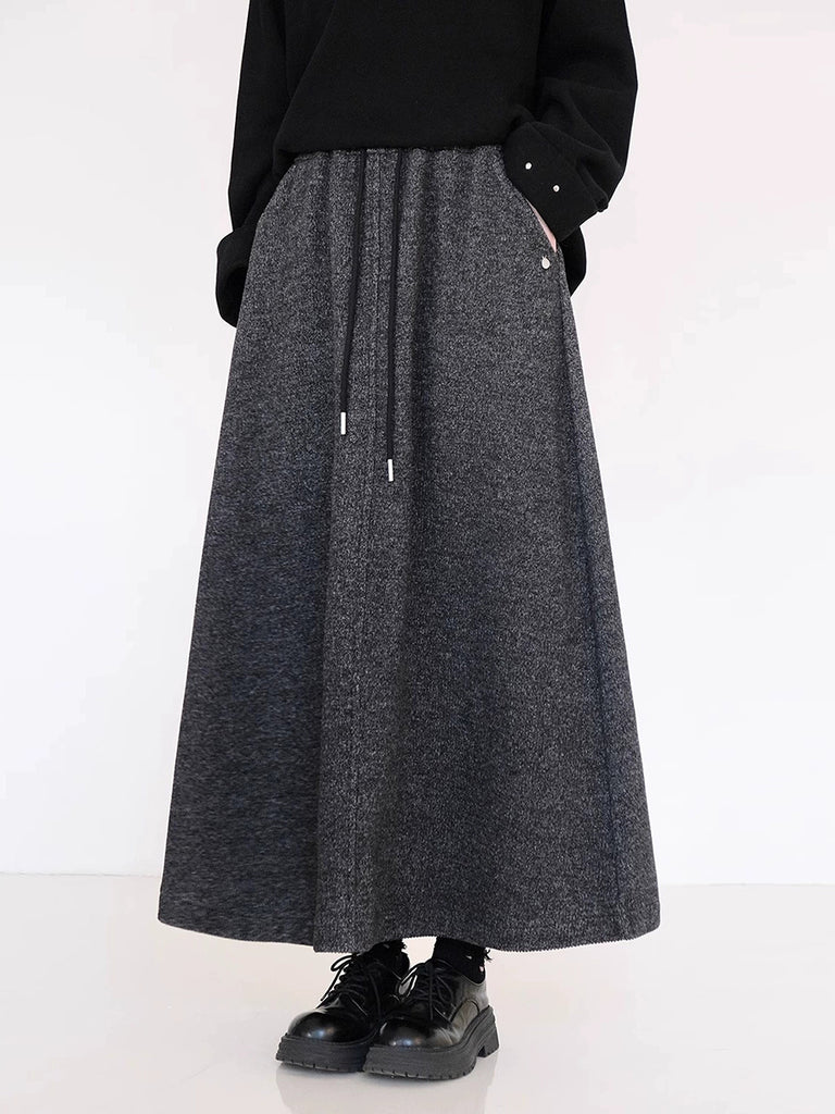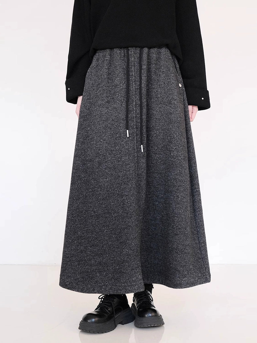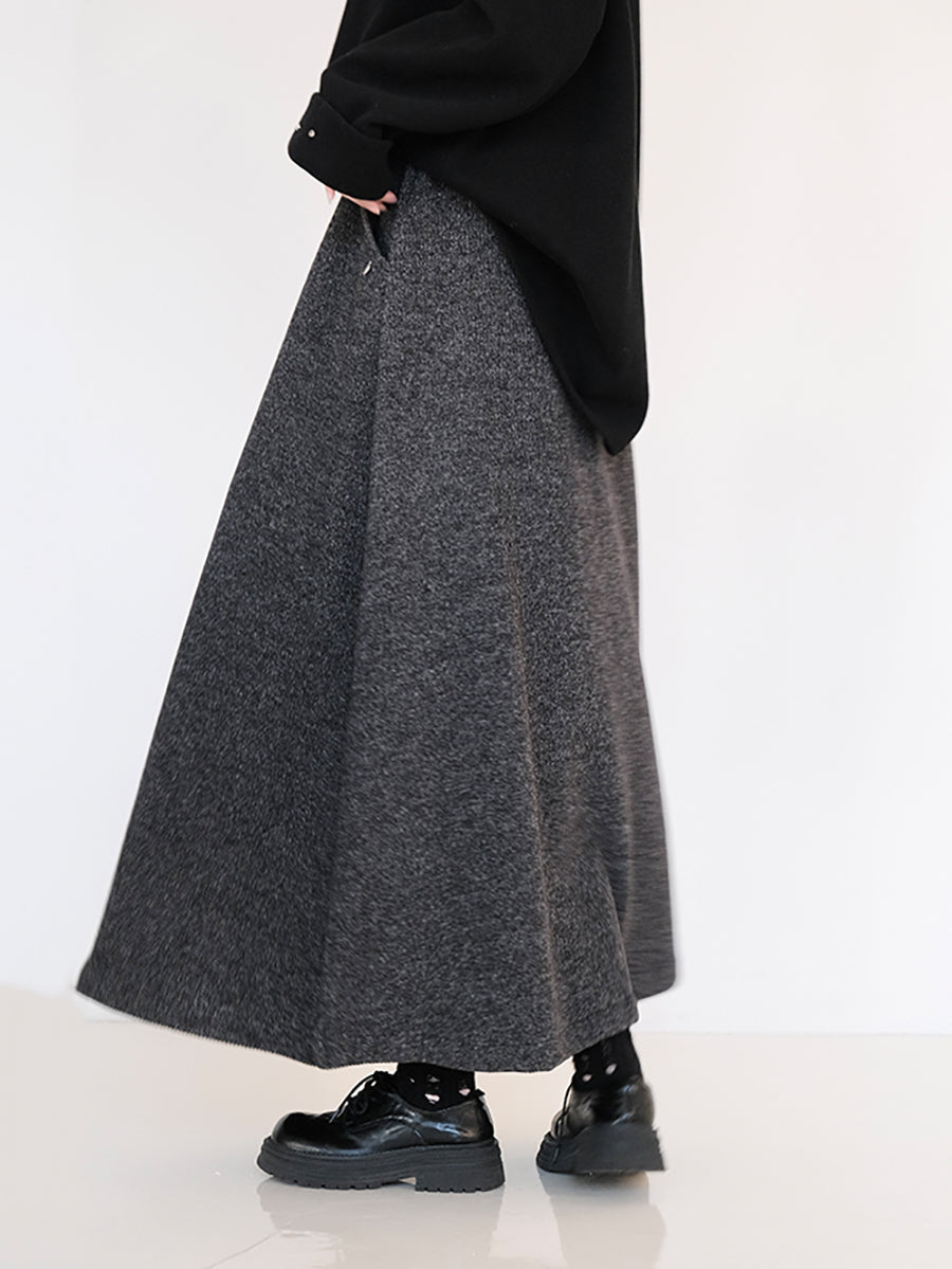 Saia feminina de inverno em formato A, com forro de lã e cor lisa.