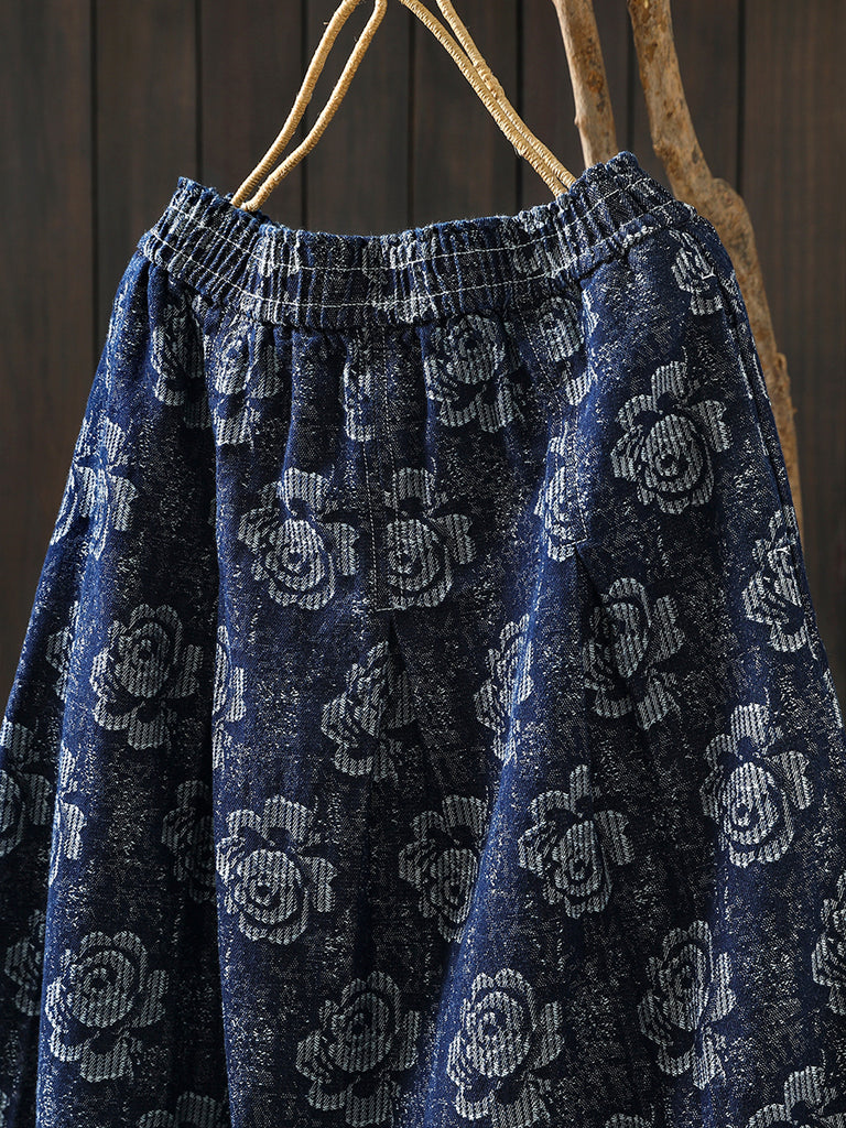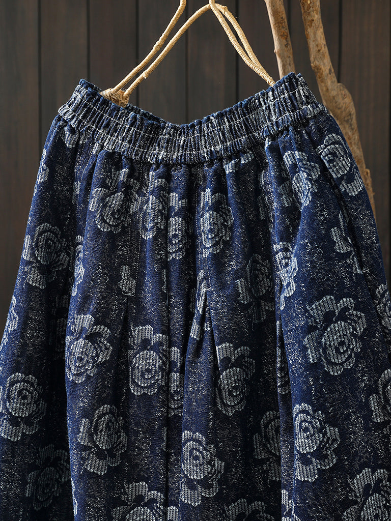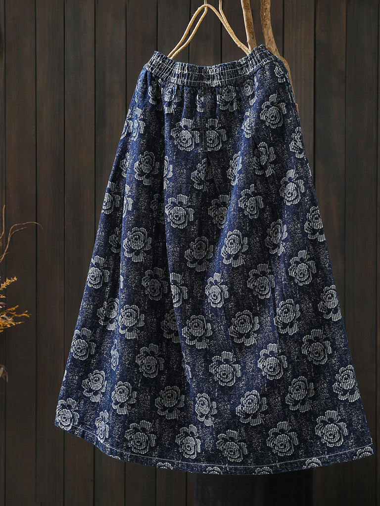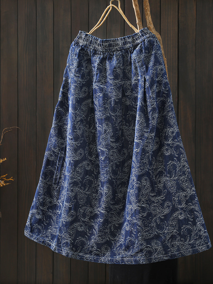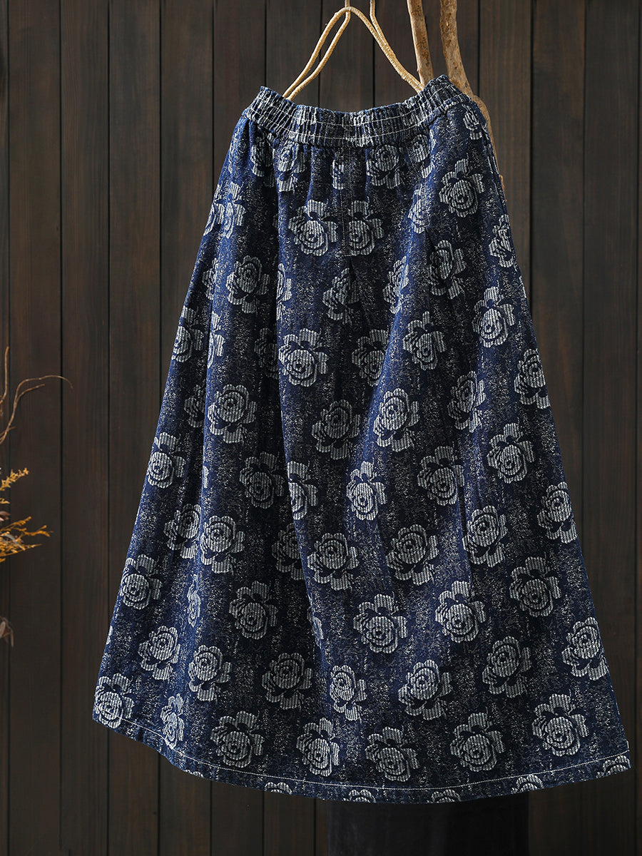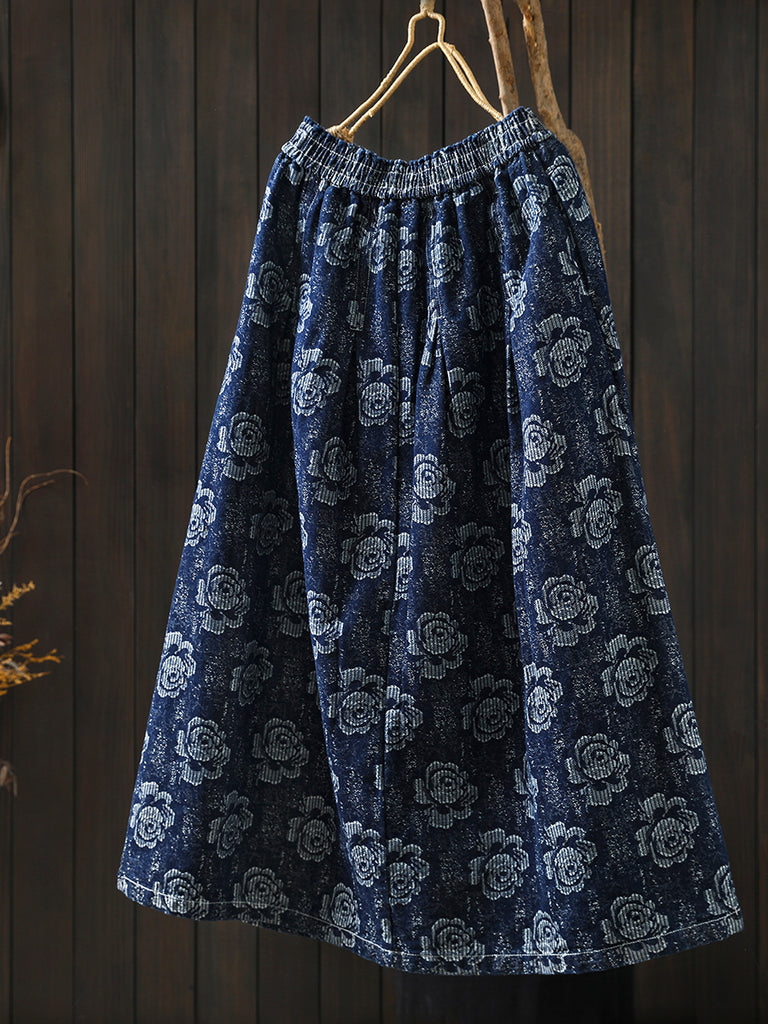 Saia feminina de inverno com bordado floral, 100% algodão, modelagem em A.