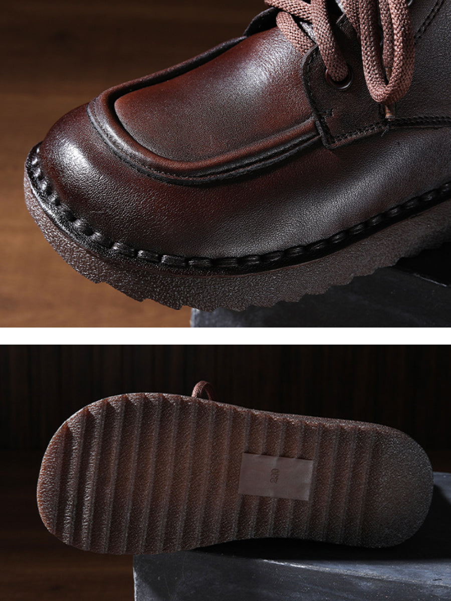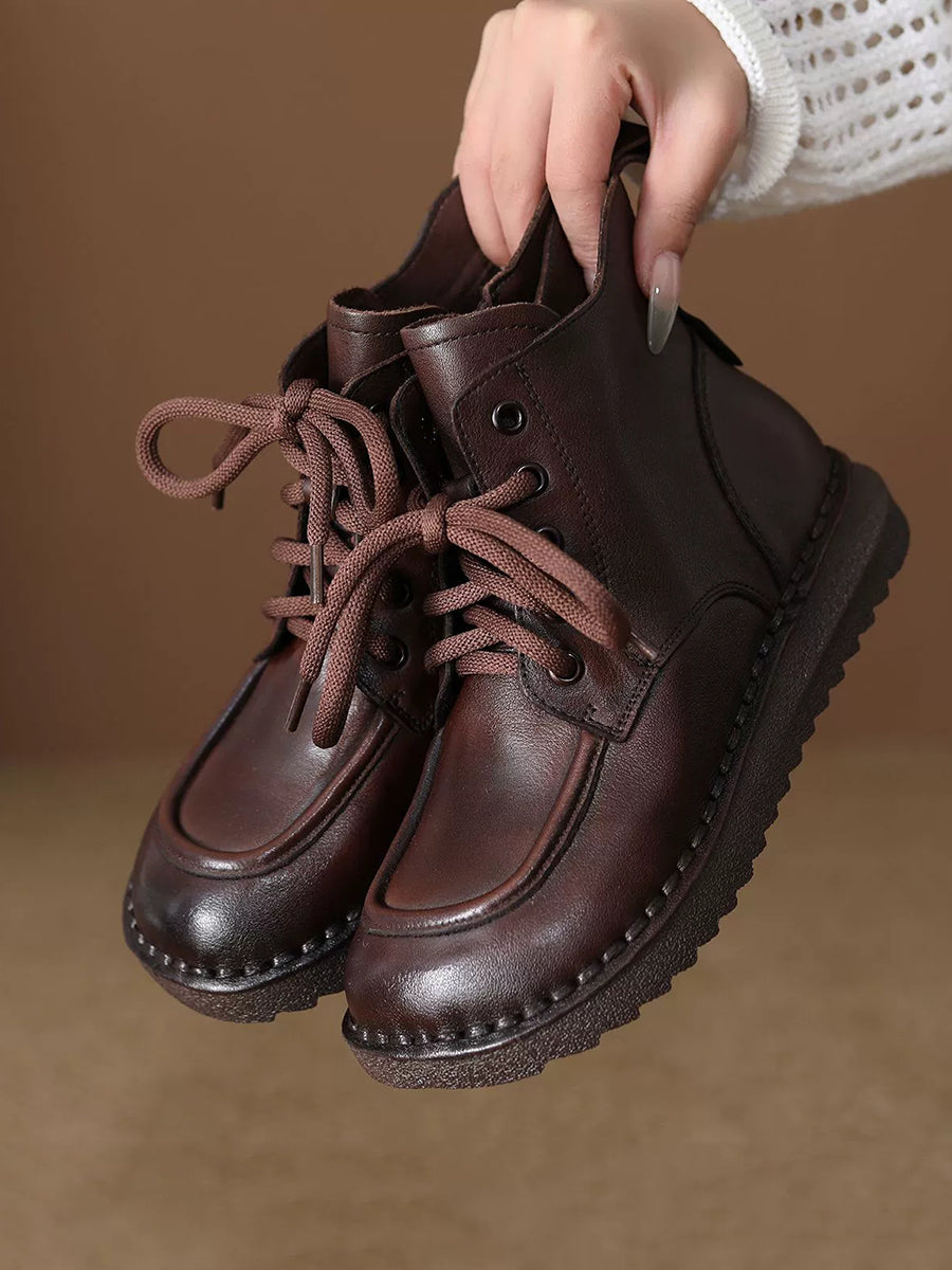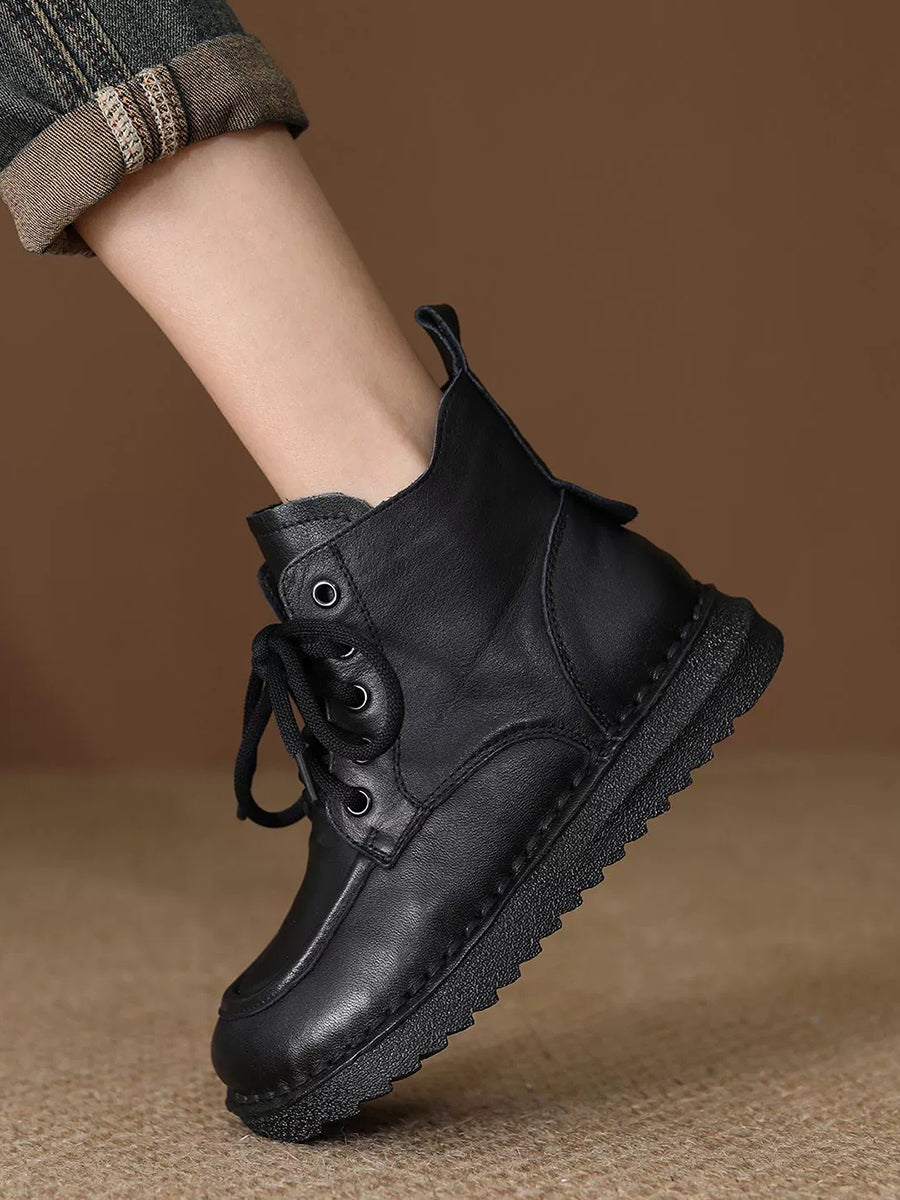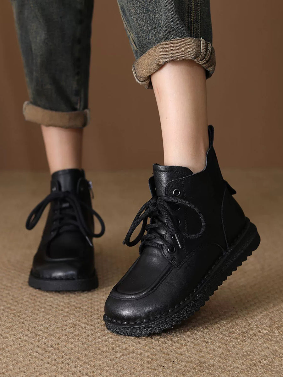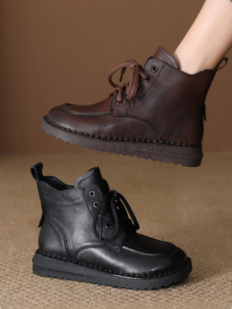 Botas de tornozelo femininas de inverno em couro genuíno
