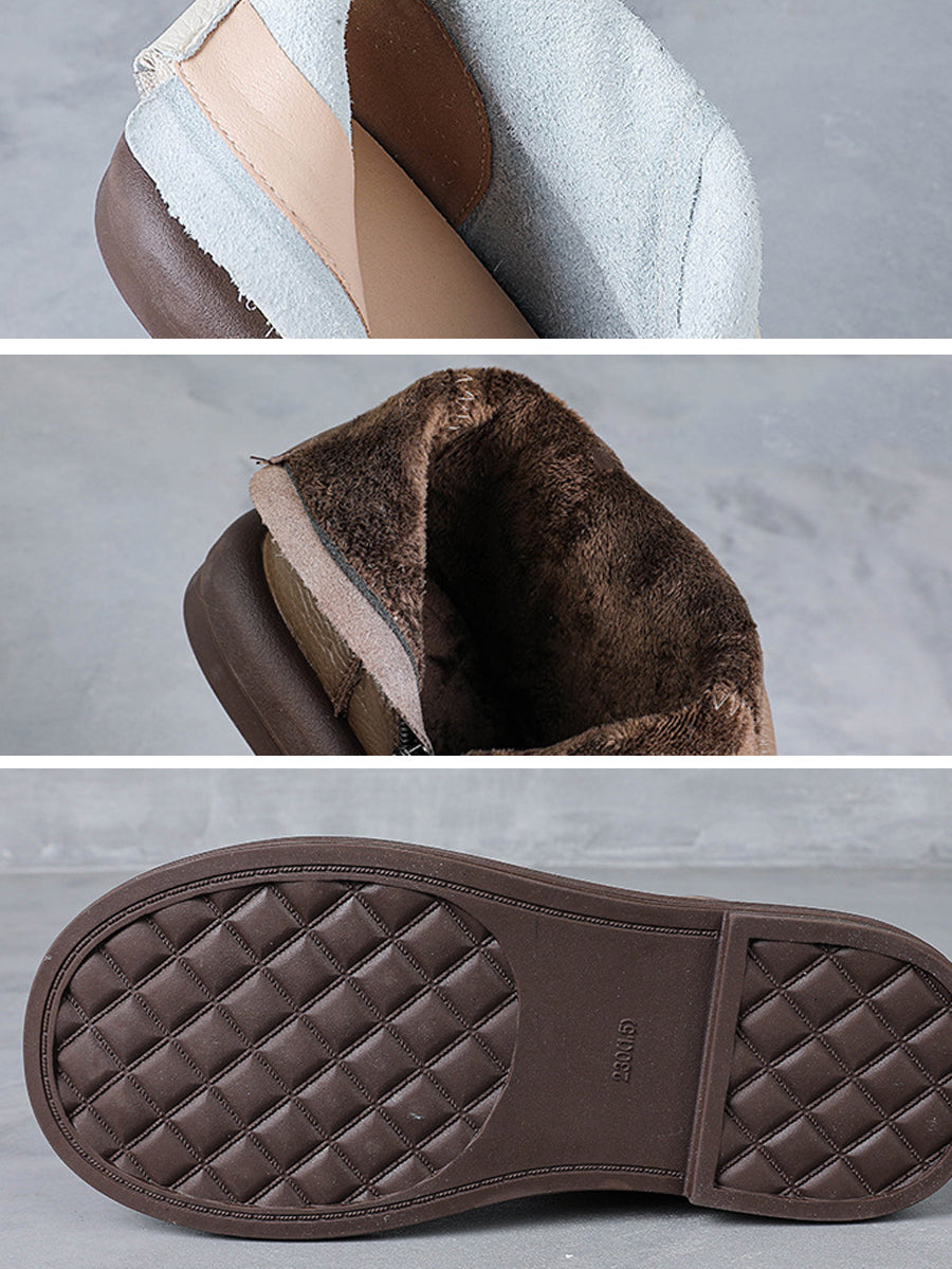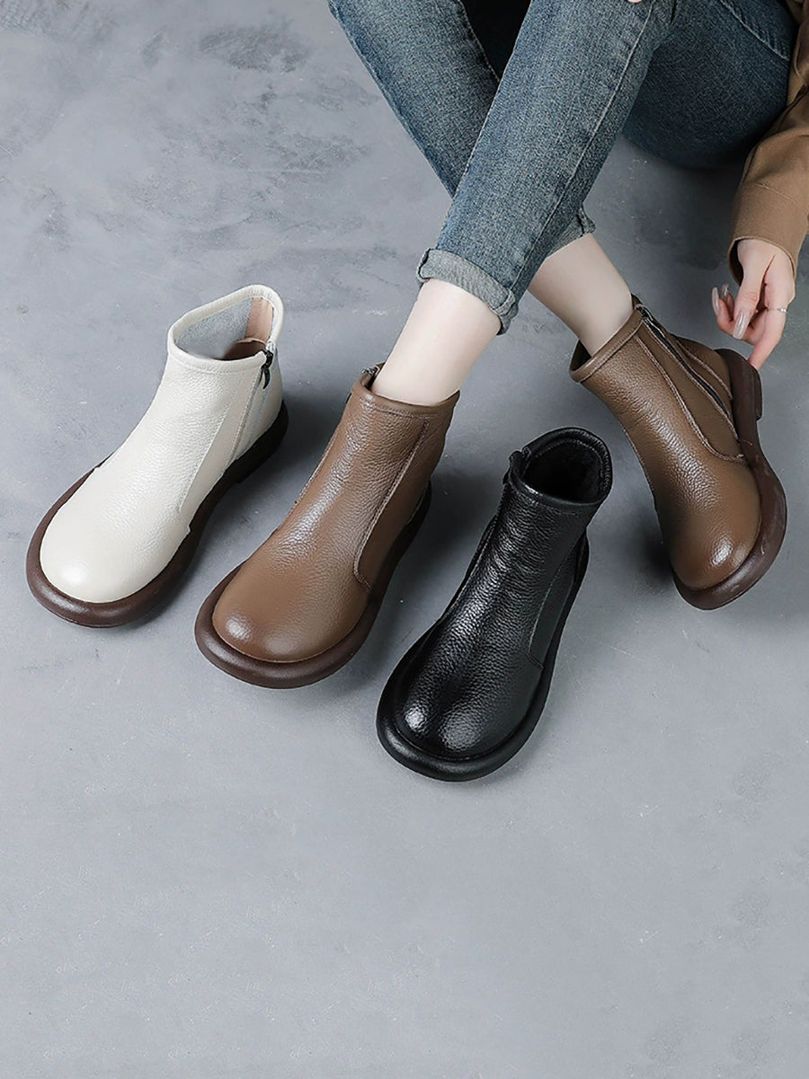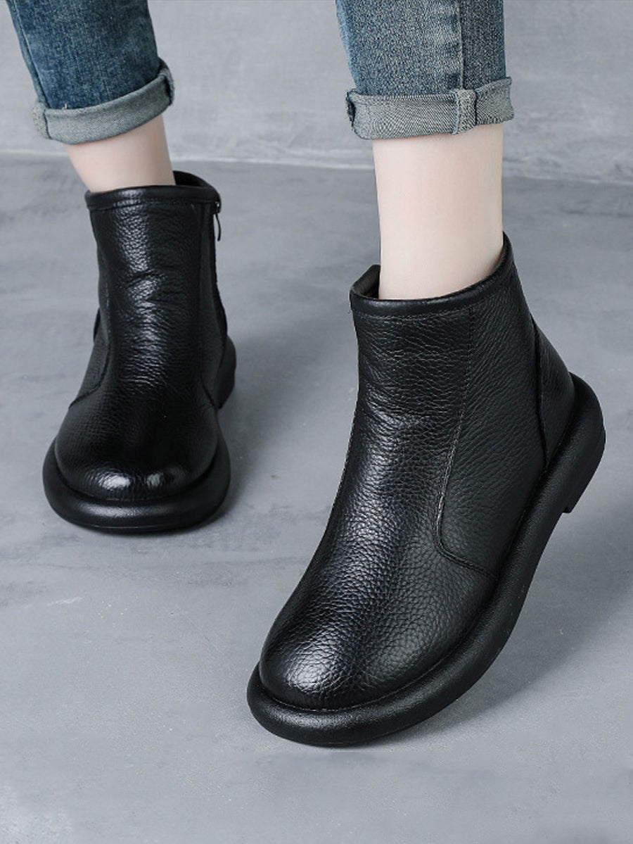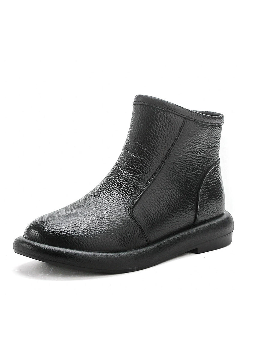 Botas de cano curto femininas de inverno em couro legítimo com forro de lã