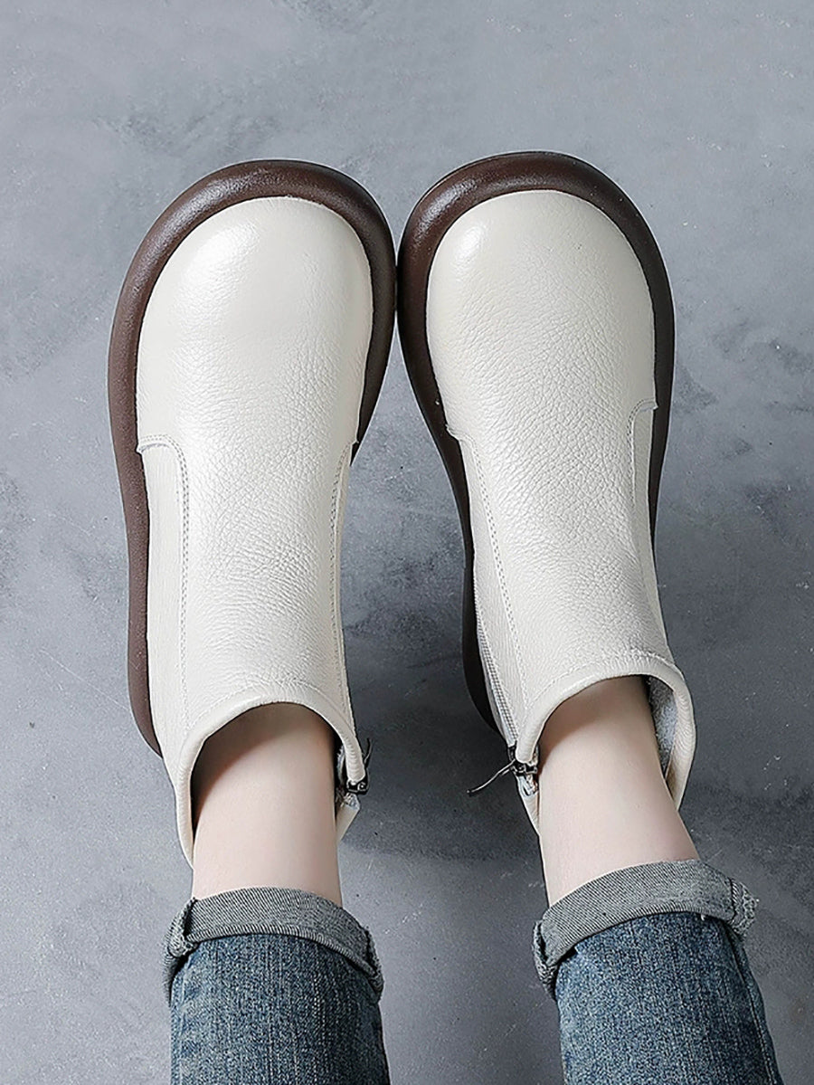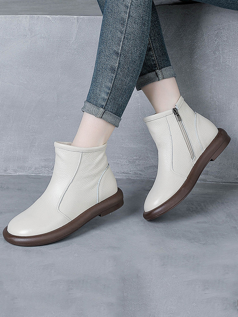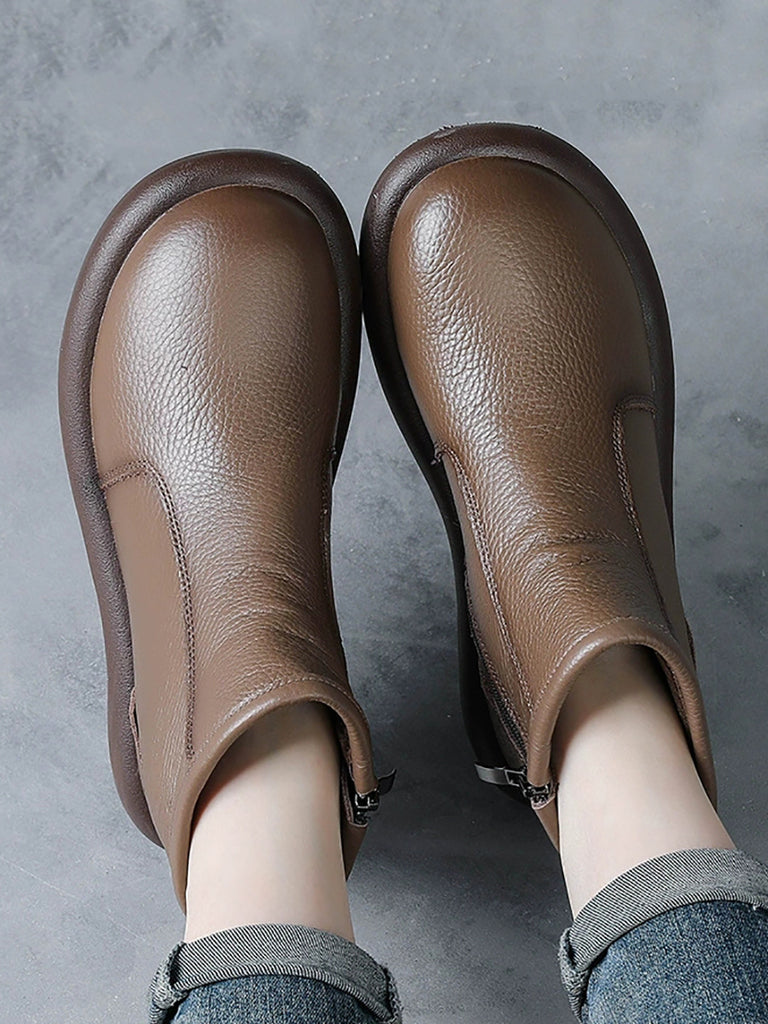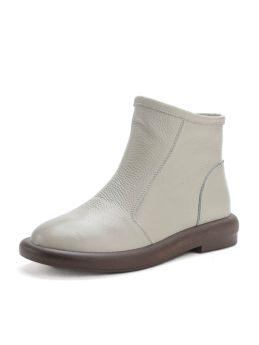 Botas de cano curto femininas de inverno em couro legítimo com forro de lã