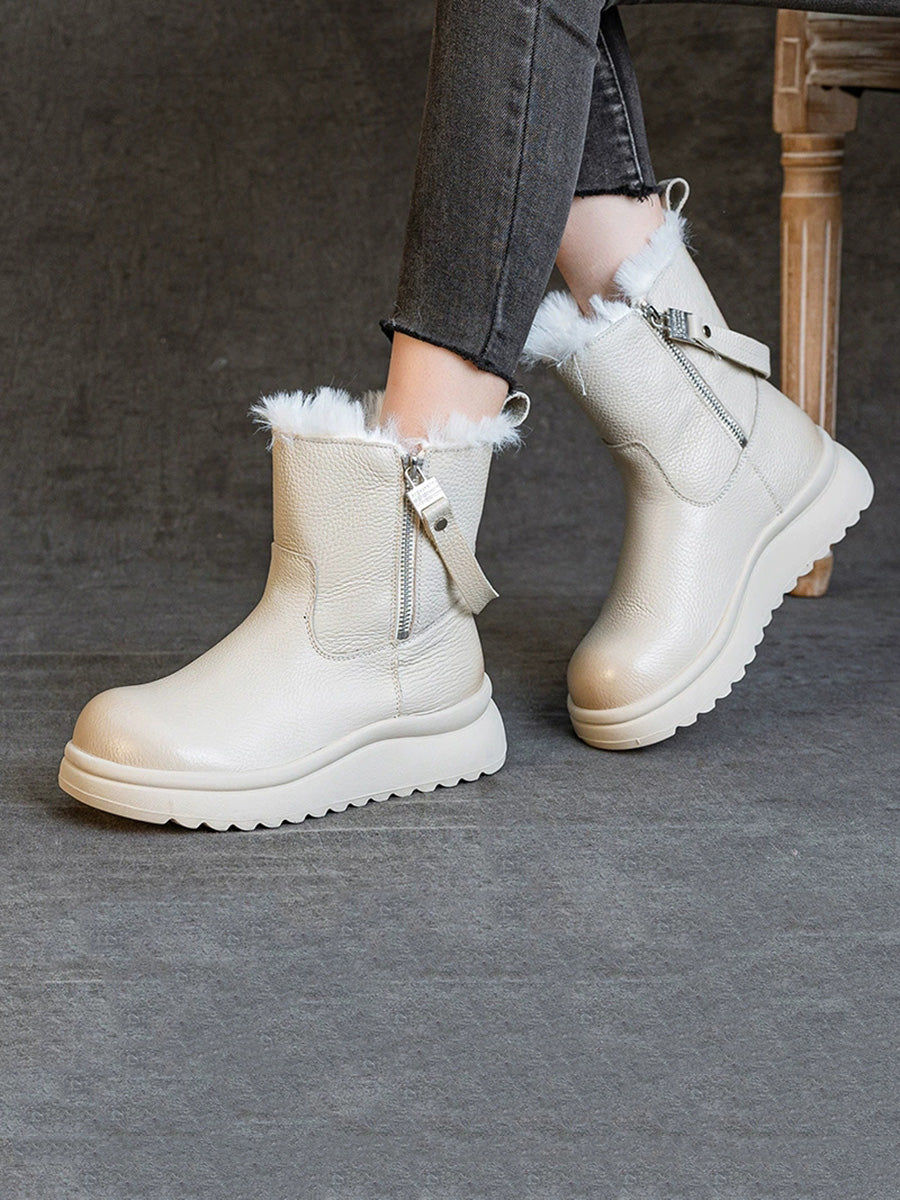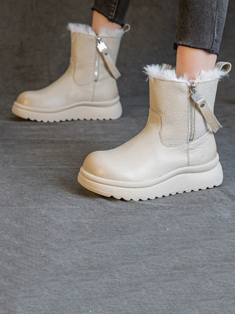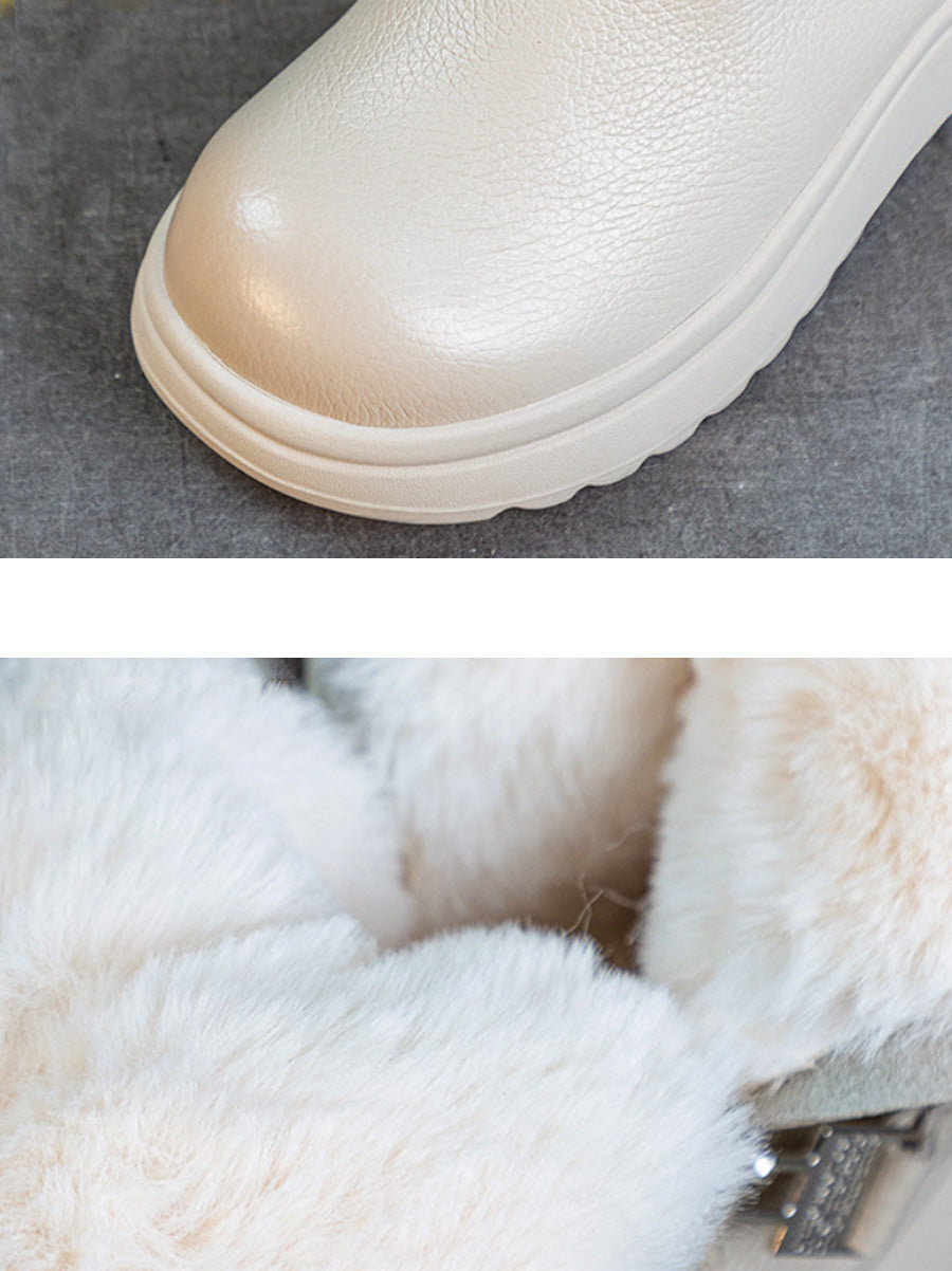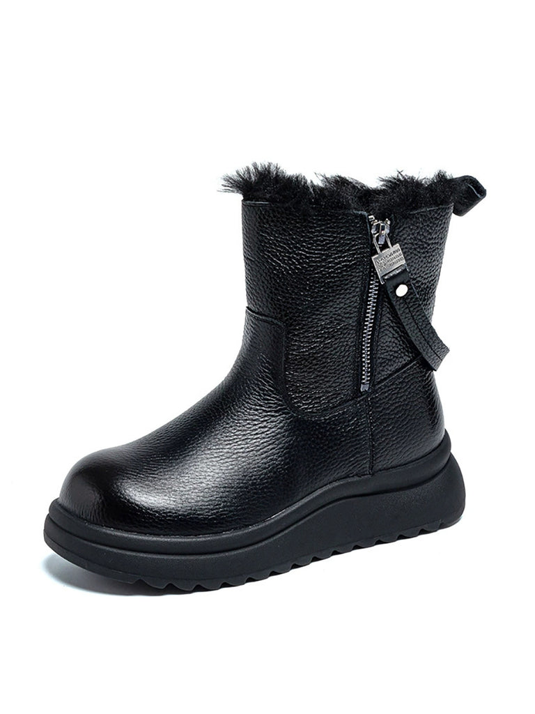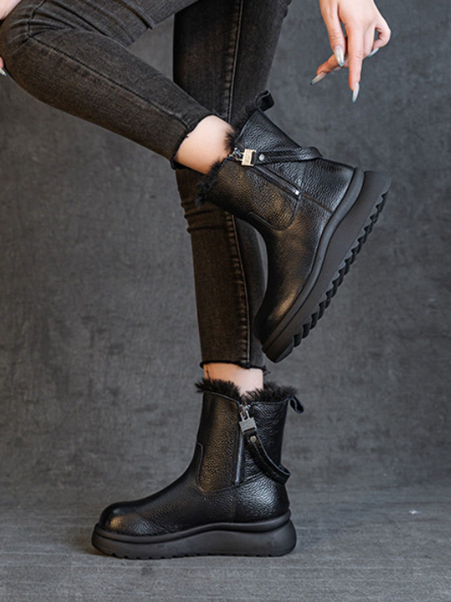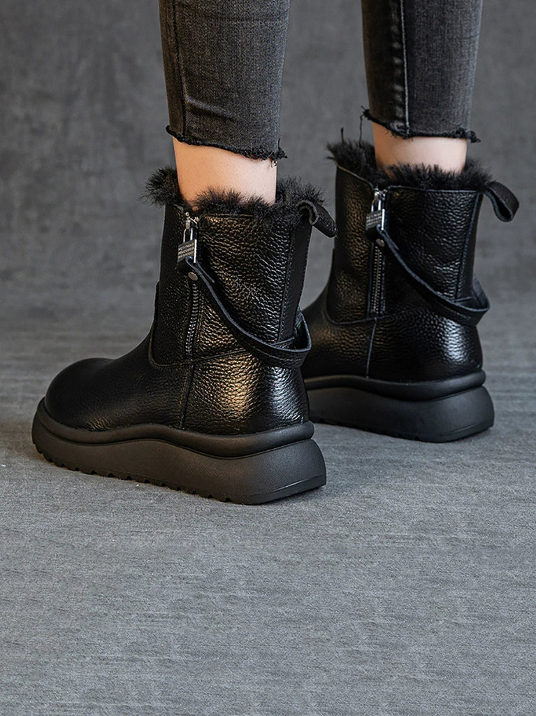 Botas femininas de inverno em couro legítimo com forro de lã