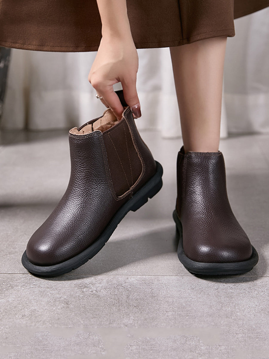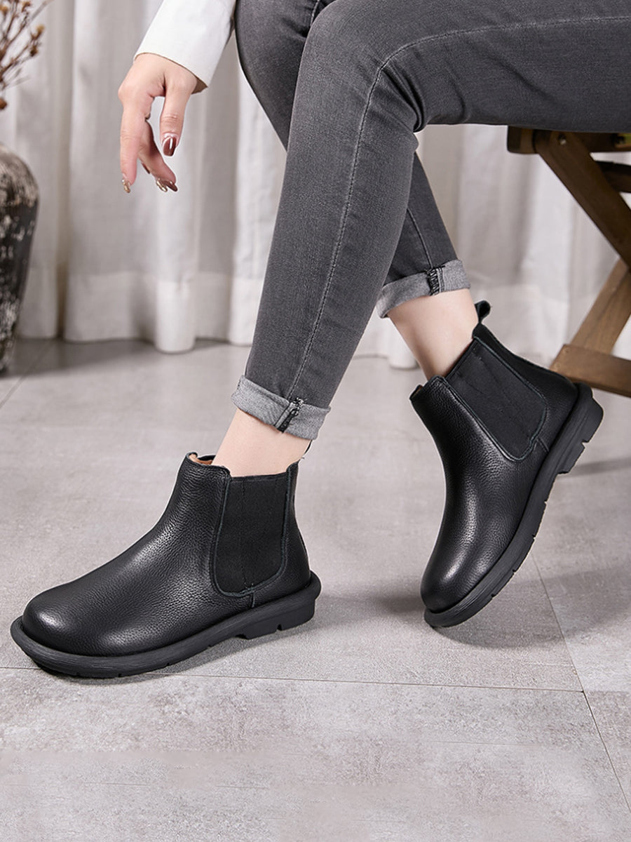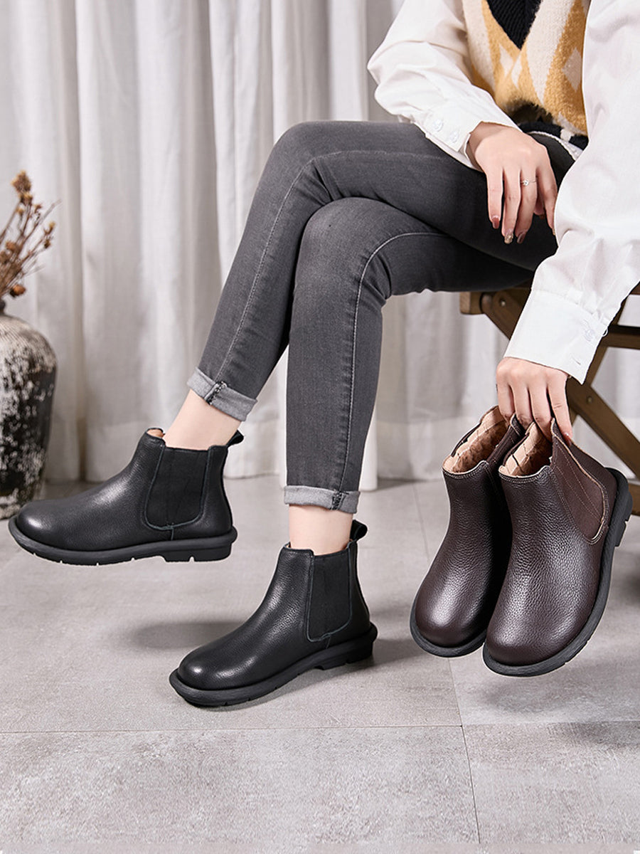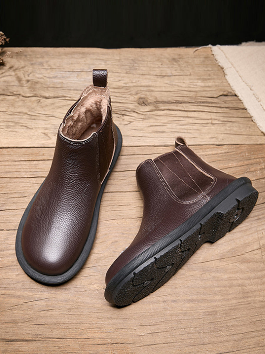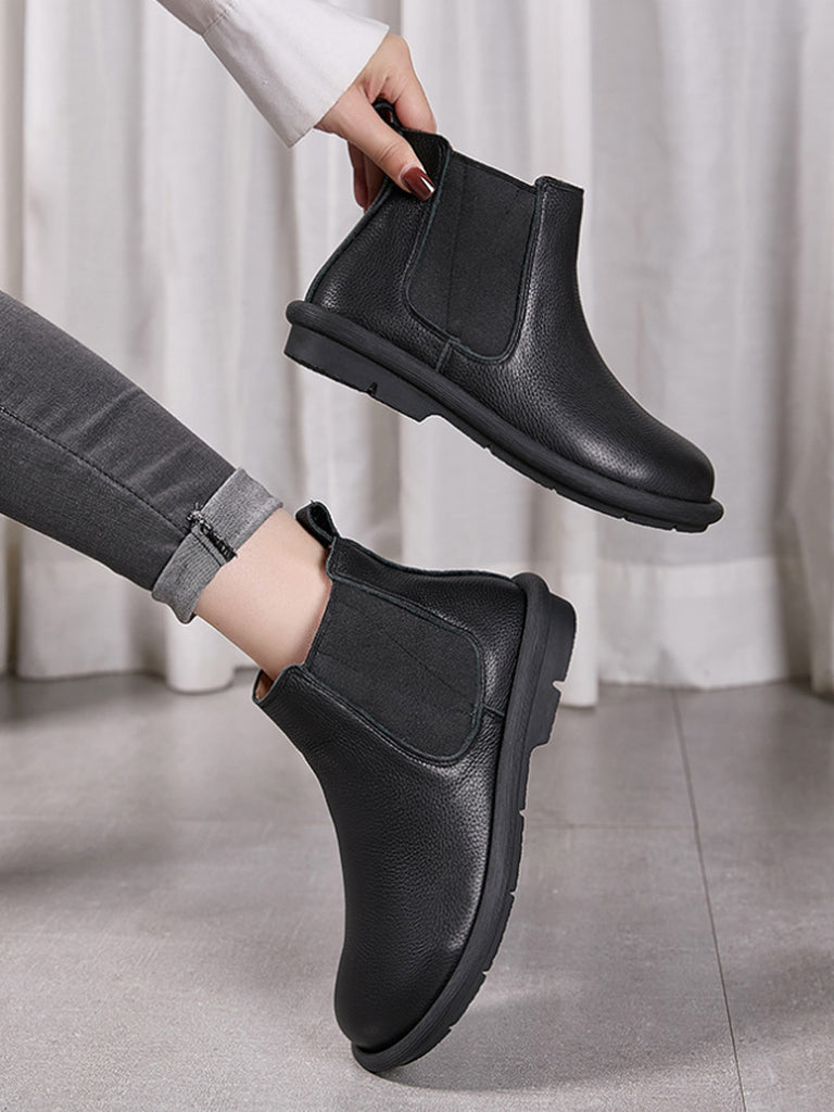 Botas Chelsea femininas de inverno em couro legítimo com forro de lã