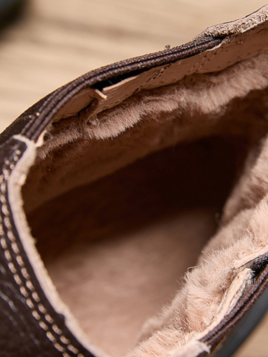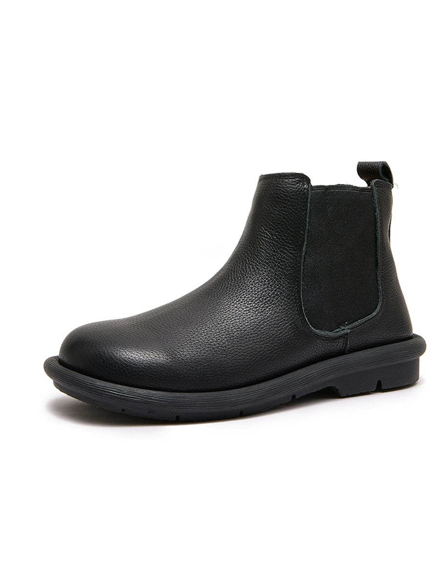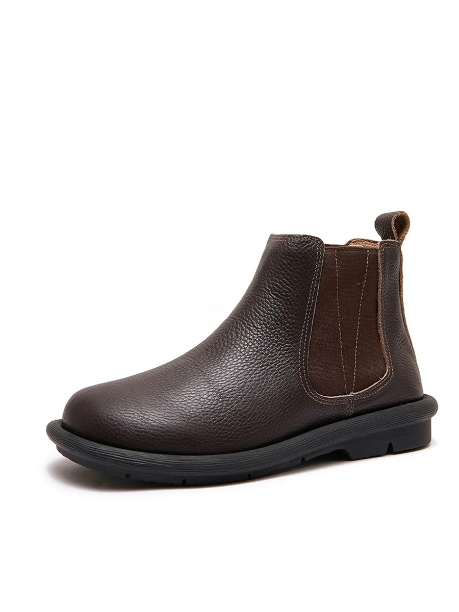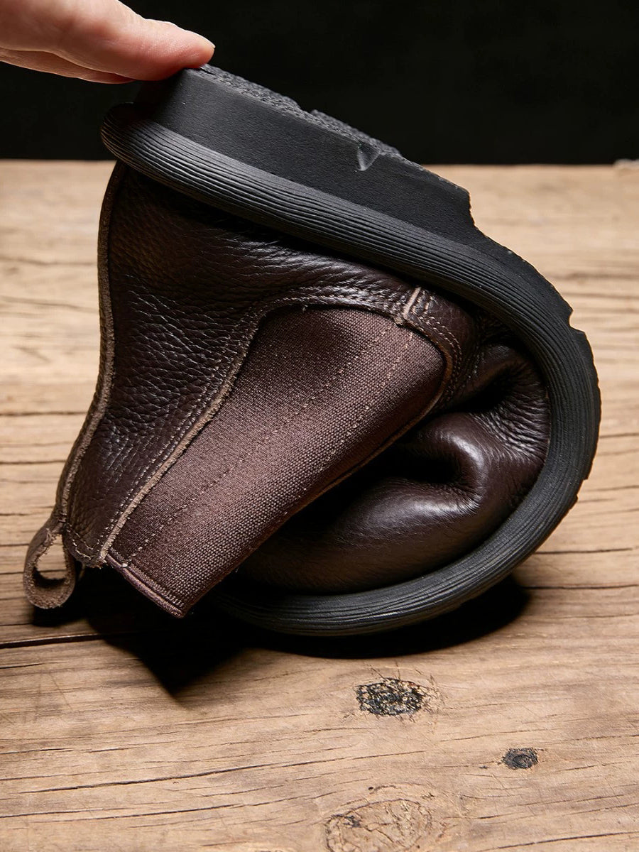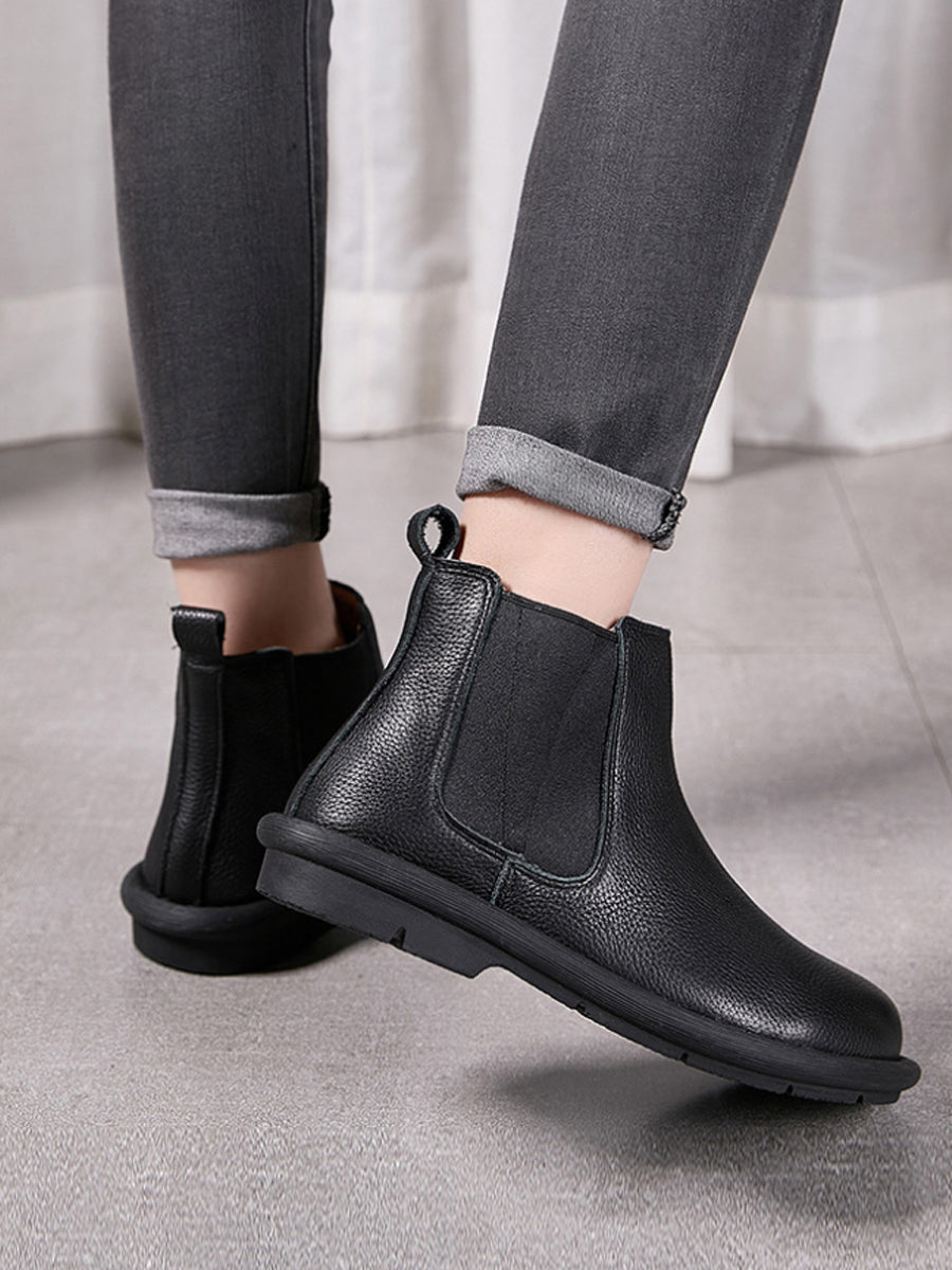 Botas Chelsea femininas de inverno em couro legítimo com forro de lã